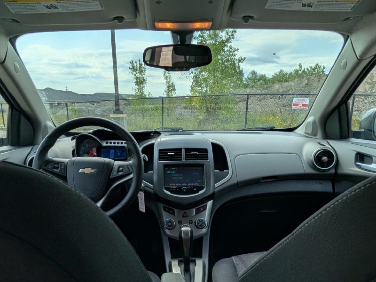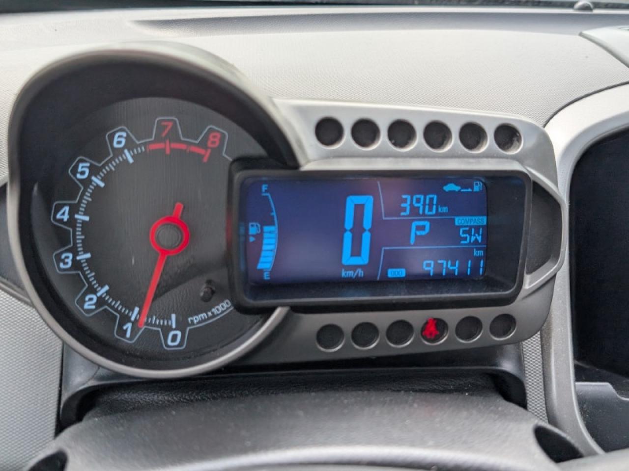When it comes to safety, the Chevrolet Sonic has quite the track record. The 2016 Sonic received a 5-Star Overall Vehicle Score for Safety from the U.S. National Highway Traffic Safety Administration (NHTSA), and the 2015 Sonic was named a 2015 Top Safety Pick by the Insurance Institute of Highway Safety (IIHS). Plus it is also the first and only car in its class to offer 10 standard airbags.This sedan has 97,514 kms. It's grey in colour . It has an automatic transmission and is powered by a 138HP 1.4L 4 Cylinder Engine.