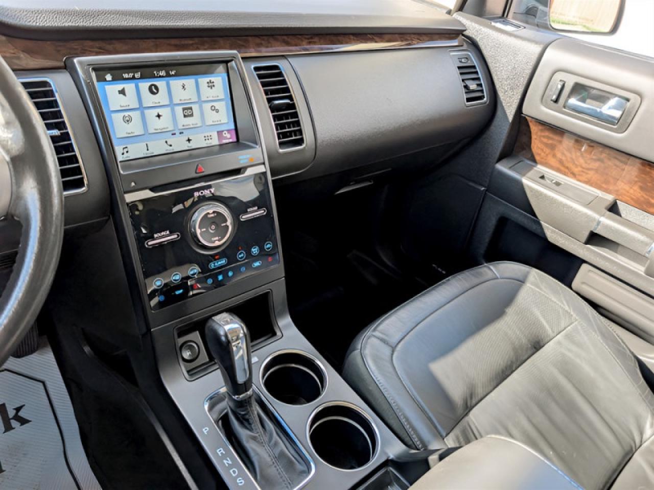 Our Flex's trim level is Limited. You might think of expensive European cars when you think of a luxury wagon but think again. This Ford Flex Limited is full of luxurious features to accompany its bold look. It comes with a gorgeous interior with Yoho maple wood grain trim. All-wheel drive adds even more versatility letting you get through just about any road condition. The SYNC 3 infotainment system with Bluetooth SiriusXM satellite radio, Sony premium audio, and an audio input jack keeps everybody entertained and automatic climate control with rear auxiliary keeps everybody comfortable. Creature comforts and safety features include heated leather seats, a leather-wrapped steering wheel with audio and cruise control, push-button start, remote start, reverse sensing system, anti-lock brakes, blind spot information system with cross-traffic alert, a backup camera, and much more.