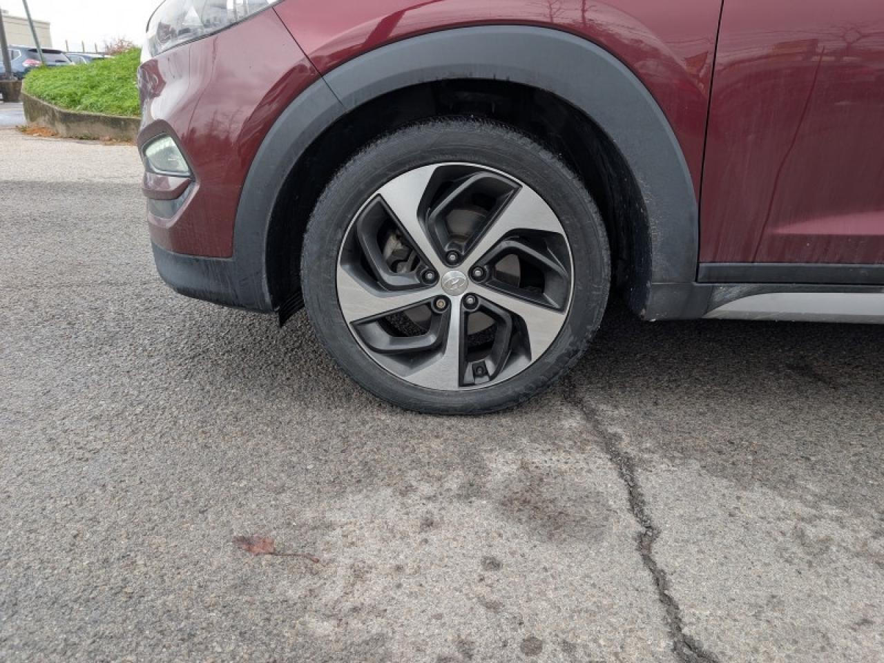 Our Tucson's trim level is Limited. Get luxury and versatility at a good value in this Tucson Limited. It comes with leather seats which are heated in front, an eight-inch touchscreen navigation system, Bluetooth, SiriusXM, Infinity 8-speaker premium audio, dual-zone automatic climate control, a rear view camera, blind spot detection, lane change assist, a hands-free power tailgate, and more.