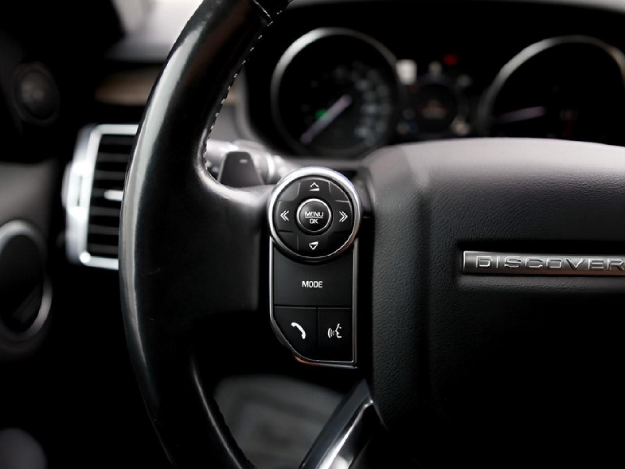 Our Discovery's trim level is HSE. This Discovery HSE adds some extra features making this SUV even more luxurious. It comes with a power sunroof, a 10-inch color touchscreen display with Bluetooth, SiriusXM, and Meridian 11-speaker premium audio, tri-zone climate control, leather seats, memory drivers seat, mirrors, and steering wheel, wood interior trim, a rearview camera, front and rear parking sensors, forward collision warning, and more.