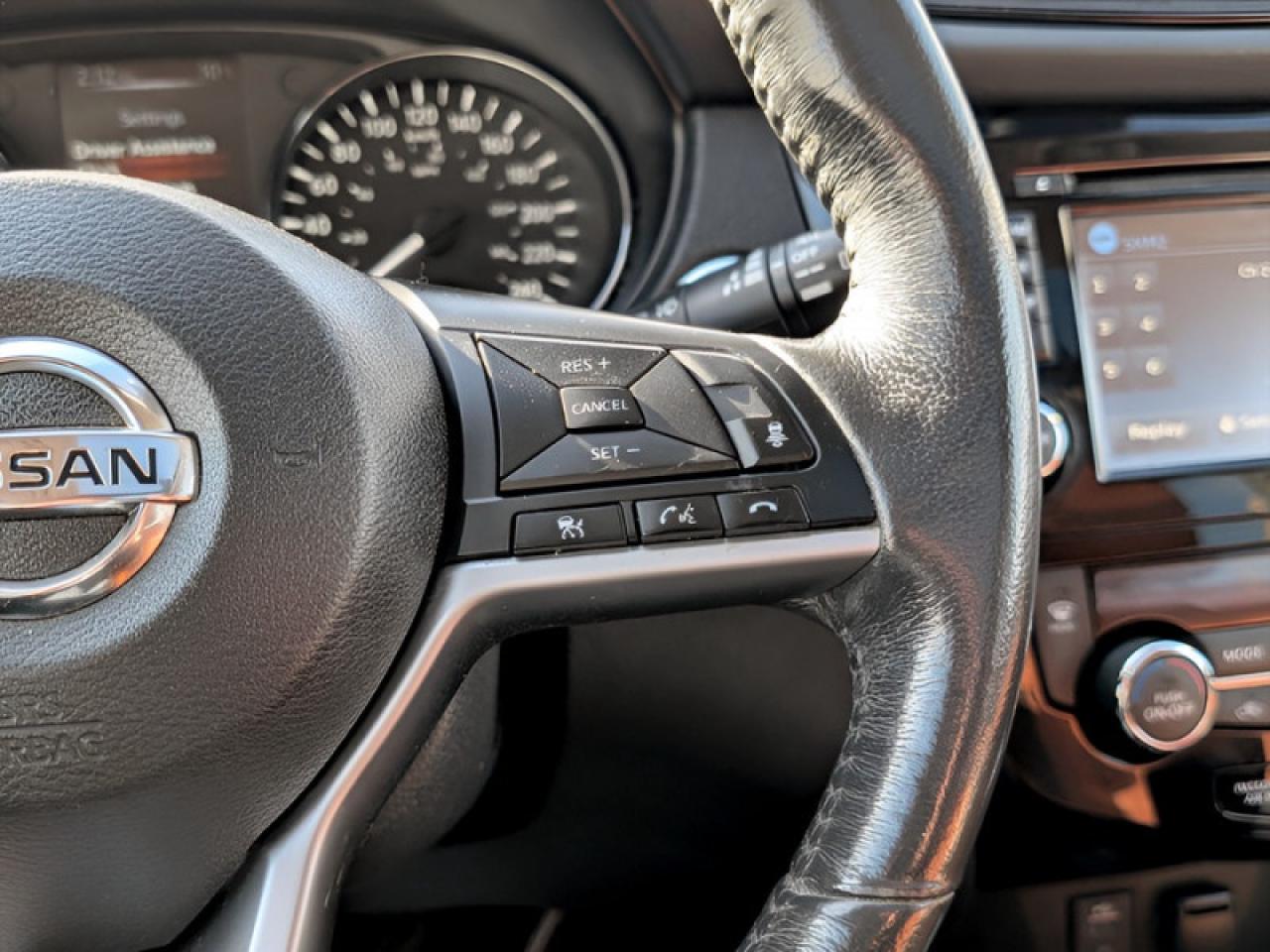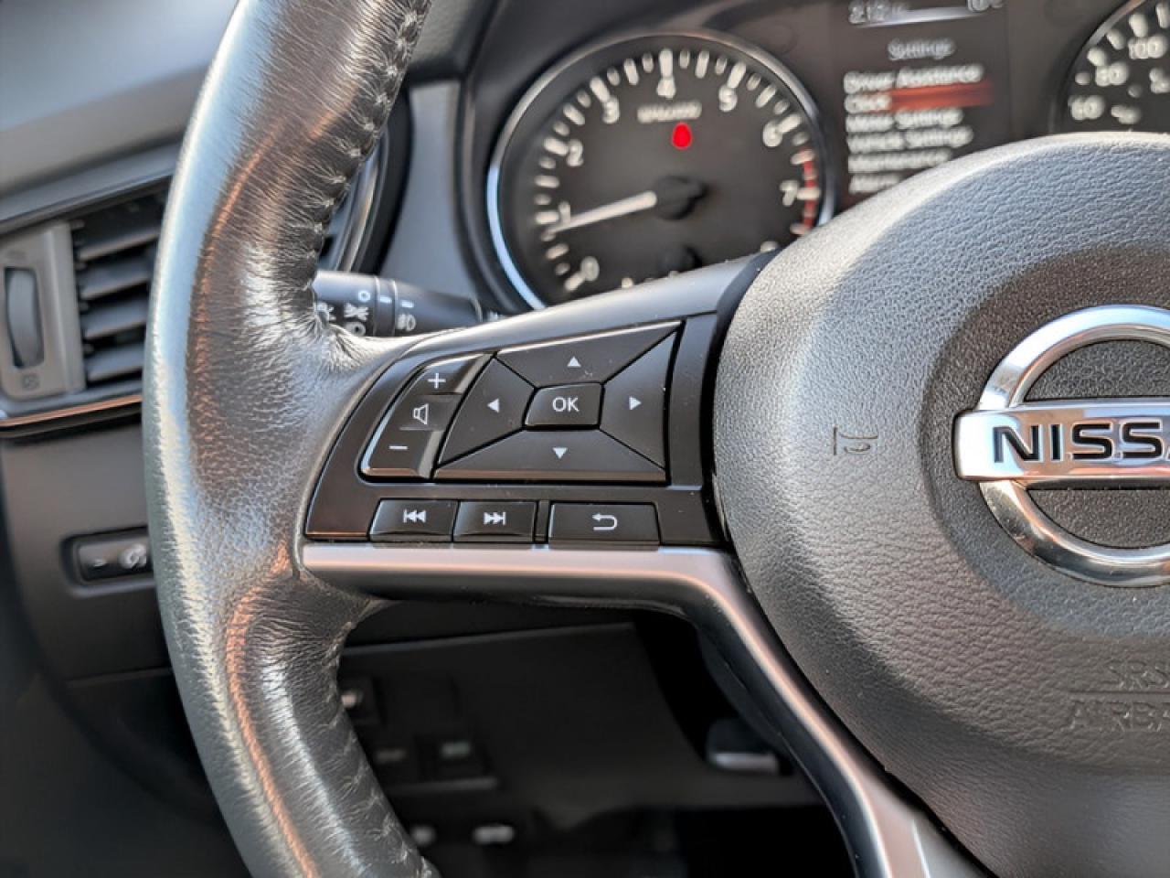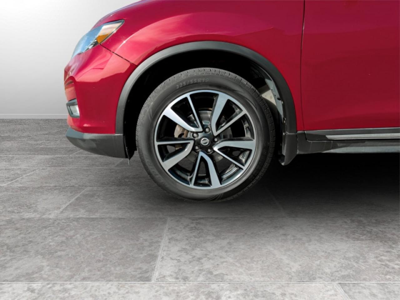 Our Rogue's trim level is SL Platinum. Upgrade to a new level of comfort and technology with this Rogue SL Platinum. It comes with all-wheel drive, a power manoramic moonroof, navigation, Bluetooth, SiriusXM, Bose nine-speaker premium audio, leather seats which are heated in front, a heated steering wheel, an around view monitor, remote start, intelligent cruise control, blind spot warning, forward emergency braking with pedestrian detection, and much more.