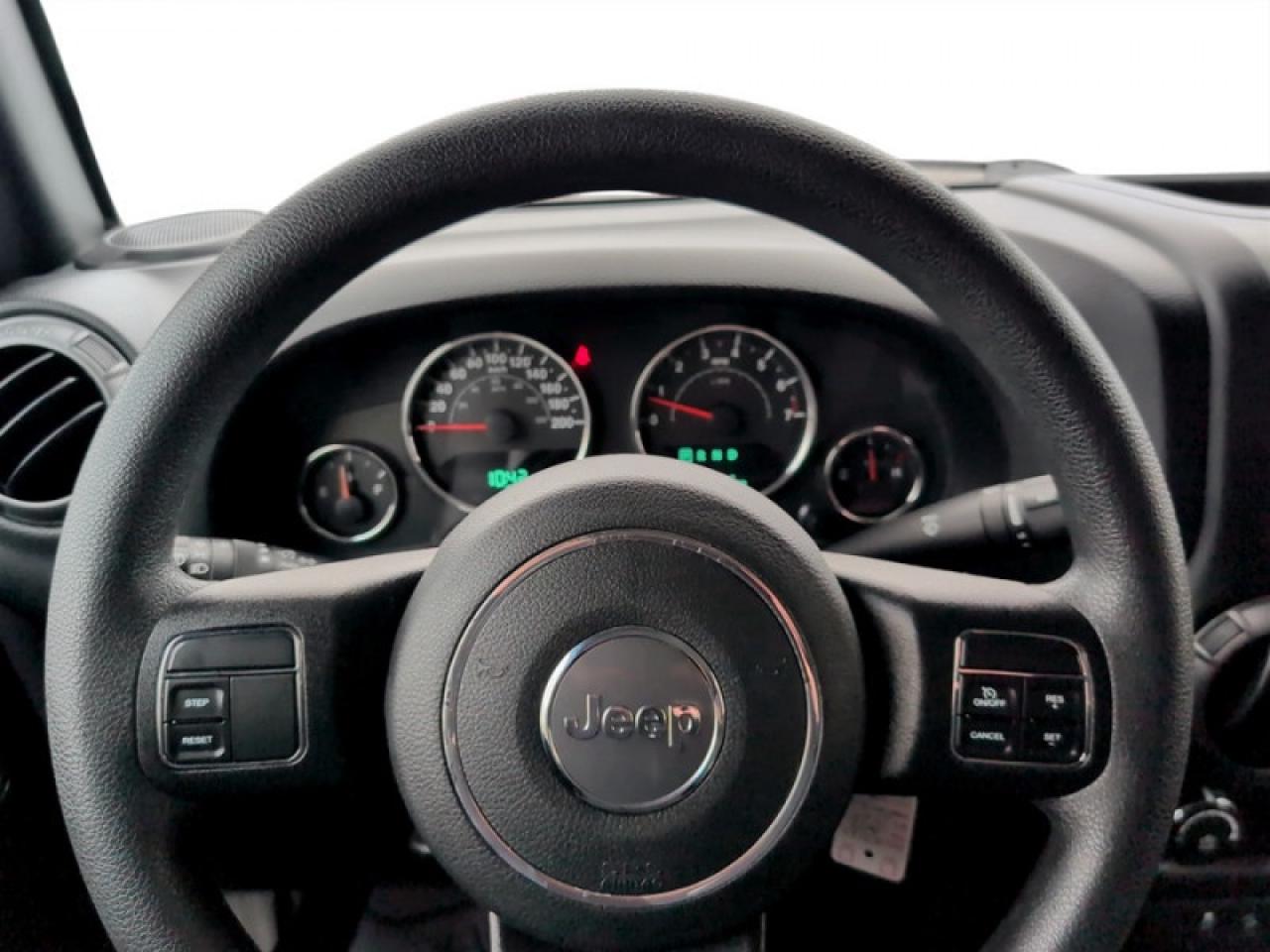 Our Wrangler JK's trim level is Sport. Classic style defines this 2018 Wrangler Sport with its iconic seven slot front grille, removable top, and square design. A focus on function enhances the interior thanks to cruise control, an eight-speaker audio system, steering wheel audio controls and an audio aux jack.