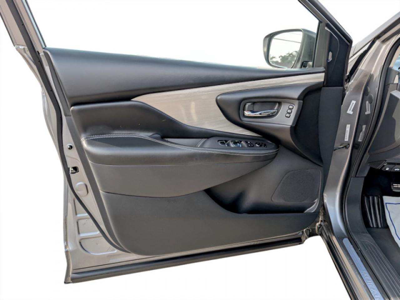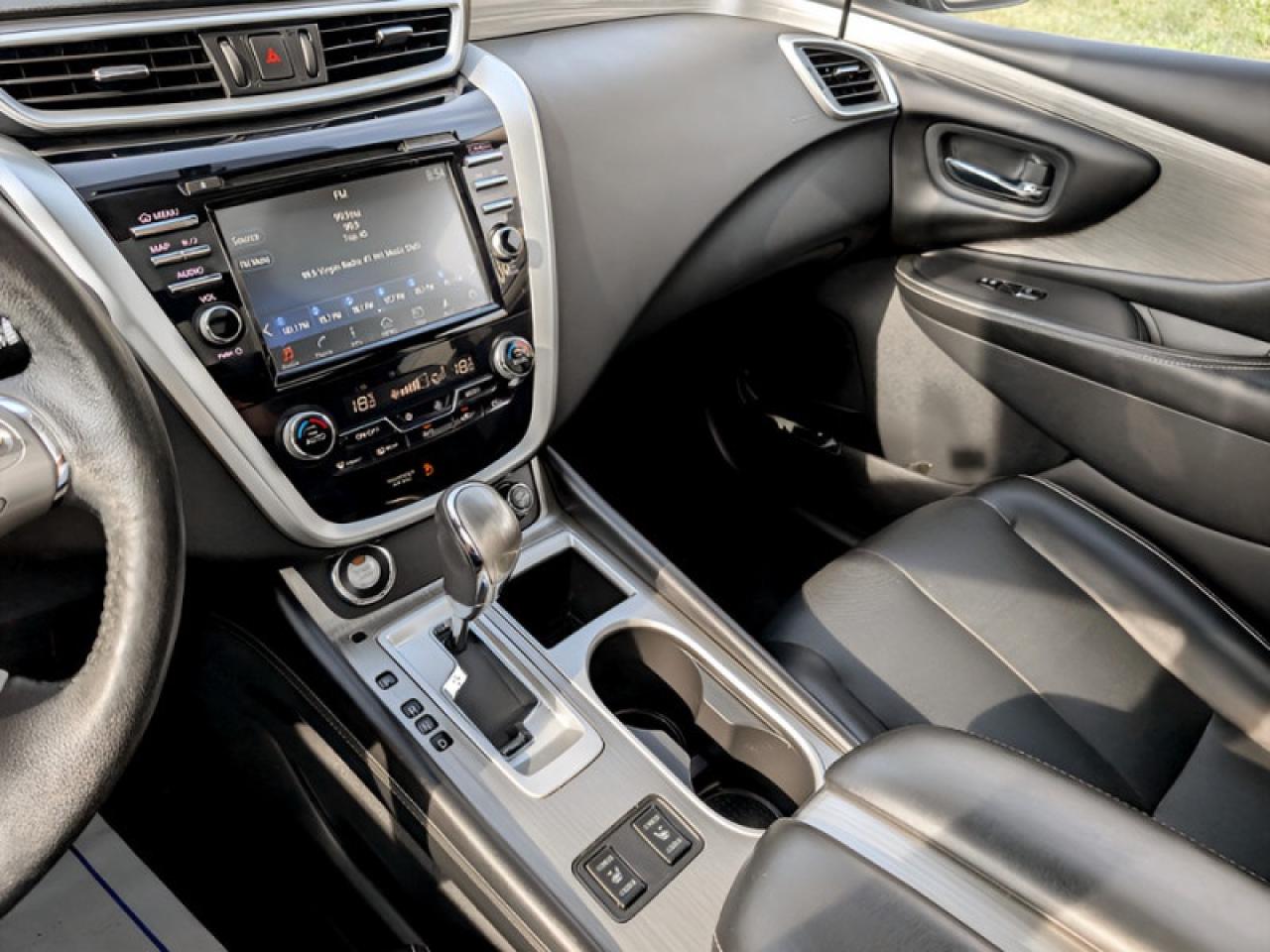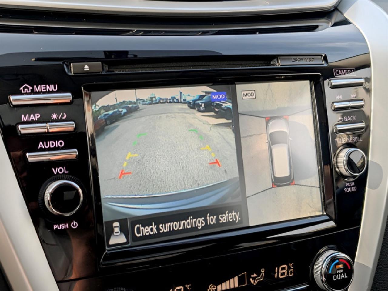 Our Murano's trim level is AWD SL. This Murano SL is a statement of beauty. It comes with all-wheel drive, a power panoramic moonroof, remote start, navigation, Bluetooth, SiriusXM, a power liftgate, a heated, leather-wrapped steering wheel, leather seats which are heated in front, an around view monitor, Bose 11-speaker premium audio, blind spot warning, moving object detection, and more.