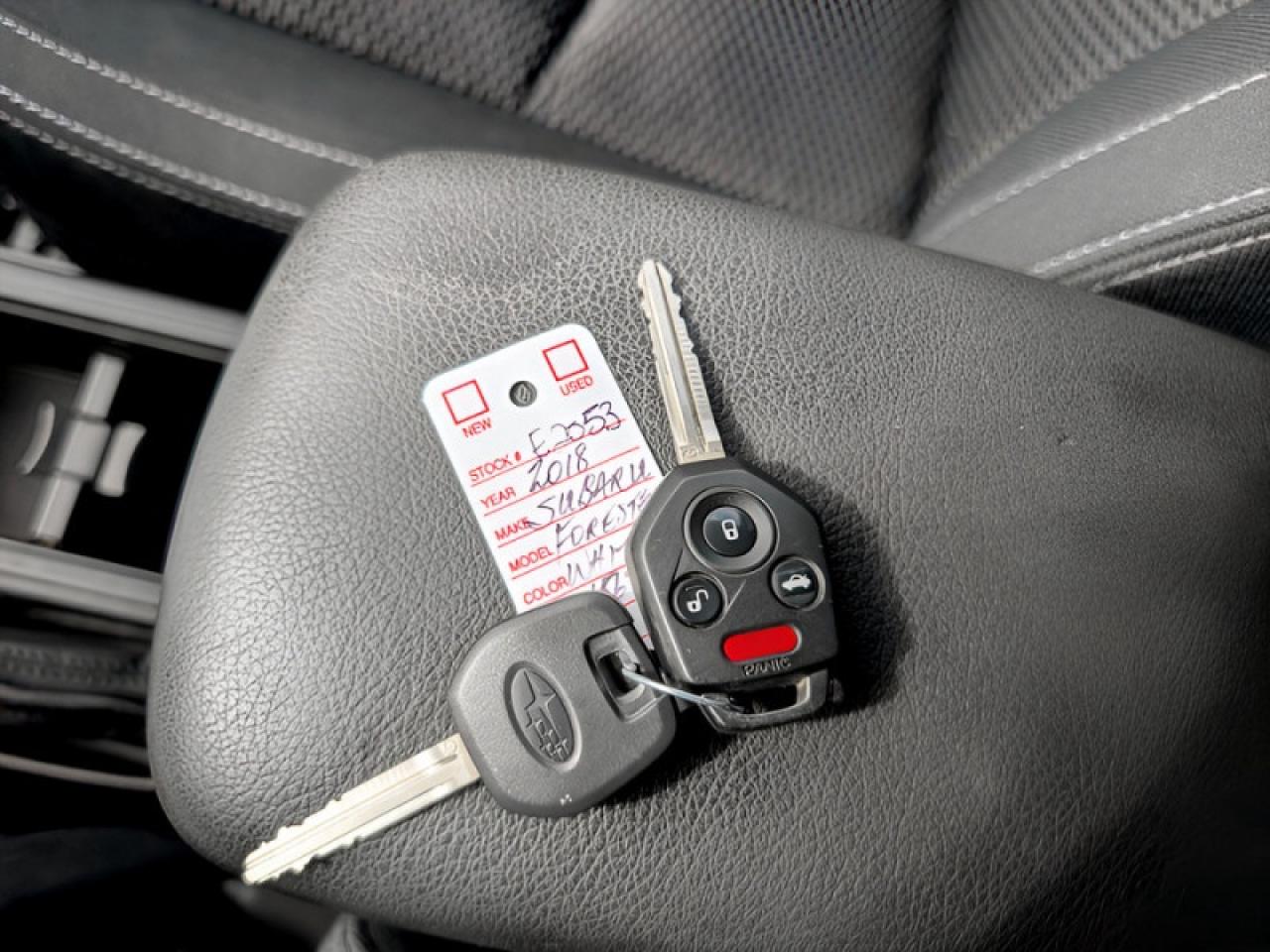 This Subaru Forester is well-prepared to keep up with your life, from planned vacations to spontaneous hiking trips. The wide cargo area can accommodate four large suitcases and even the bulkiest of adventure gear. This Subaru Forester boasts an unbeatable combination of all-road and all-weather capability, superior reliability, advanced safety features, exceptional value and sheer driving enjoyment. This low mileage SUV has just 68,348 kms. It's White in colour. It has an Automatic transmission and is powered by a 170HP 2.5L 4 Cylinder Engine.