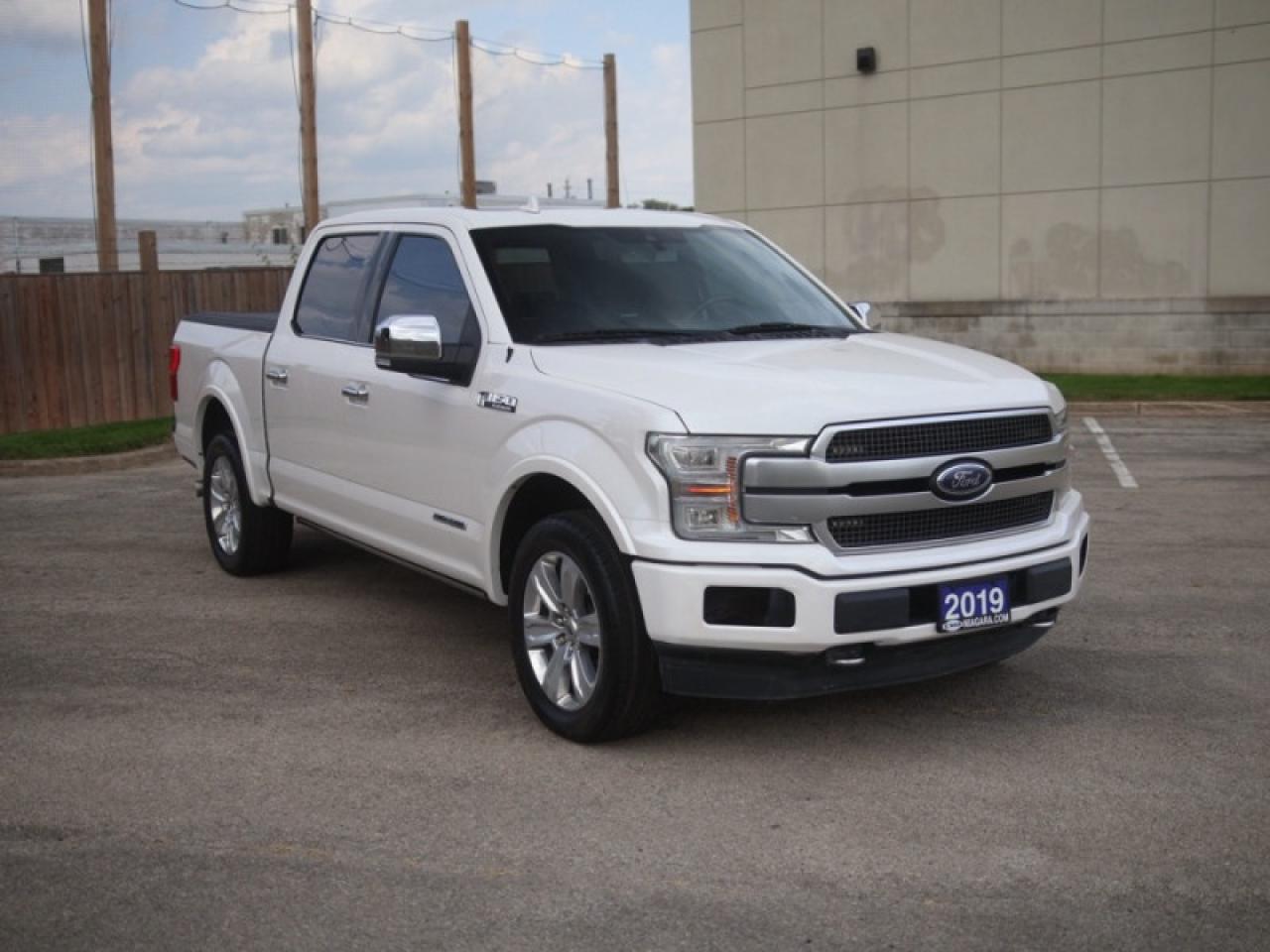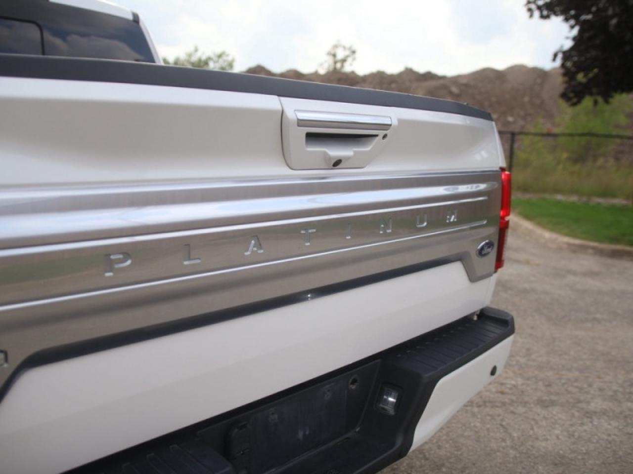 Our F-150's trim level is Platinum. Upgrading to this ultra premium Ford F-150 Platinum is a great choice as it comes fully loaded with premium features such as leather heated and cooled seats, satin chrome exterior accents, a proximity key with push button start, pro trailer backup assist and Ford Co-Pilot360 that features blind spot detection, pre-collision assist, automatic emergency braking and rear parking sensors. Additional features also includes exclusive aluminum wheels, SYNC 3 with enhanced voice recognition featuring navigation, Apple CarPlay and Android Auto, FordPass Connect 4G LTE, power adjustable pedals and running boards, a premium Bang and Oulfsen sound system with SiriusXM radio, cargo box lights, a smart device remote engine start, a heated leather steering wheel and a useful rear view camera to help when backing out of tight spaces.