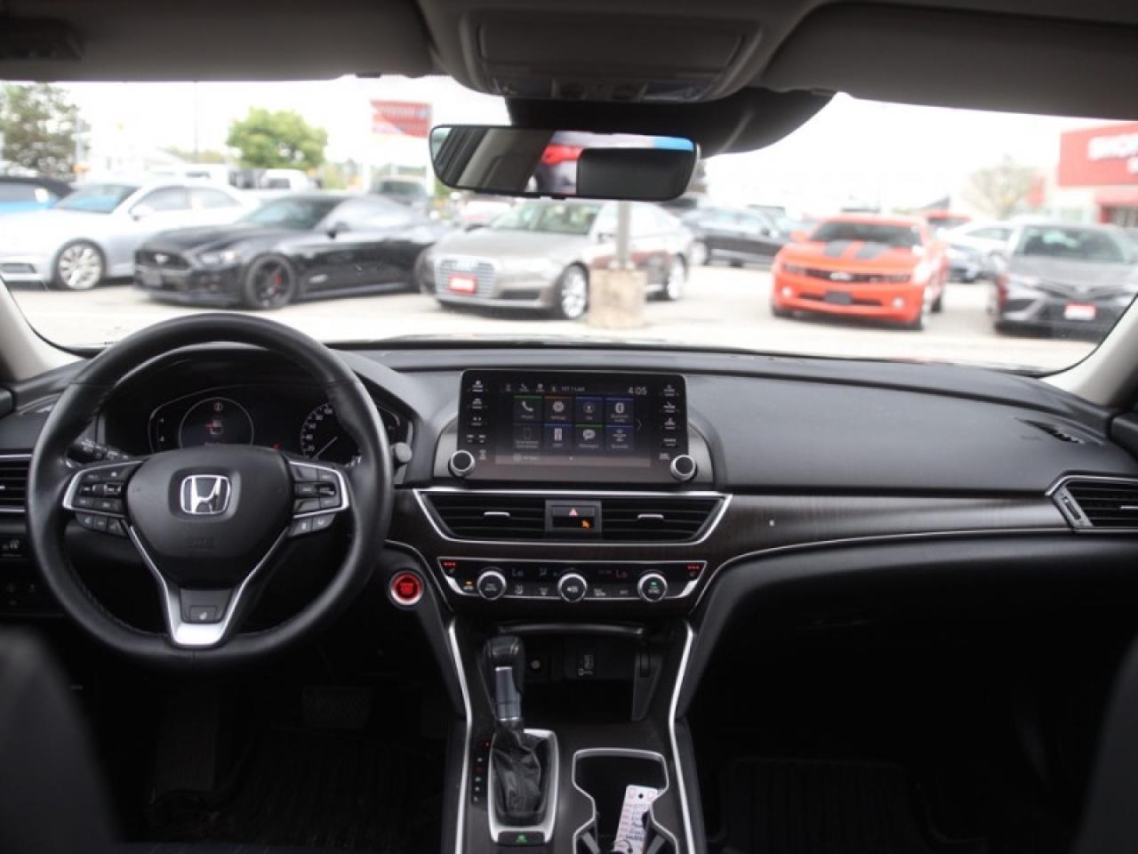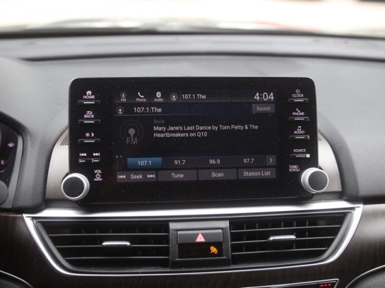Our Accord Sedan's trim level is EX-L CVT. This luxury trim comes loaded with aluminum wheels, heated power mirrors with reverse tilt down and integrated turn signals, automatic dimming rear view mirror, full LED lighting with automatic on/off, automatic high beams, fog lights, adaptive cruise control, brake assistance, lane keep assistance, blind spot monitoring, and traffic sign recognition. It also has HondaLink touchscreen display infotainment complete with Hands Free Link bluetooth, rear view camera, Apple CarPlay, Android Auto, SiriusXM, and steering wheel audio controls. The interior luxury continues with heated front seats with leather trim, a heated leather steering wheel, a moonroof, and remote keyless entry and starting.