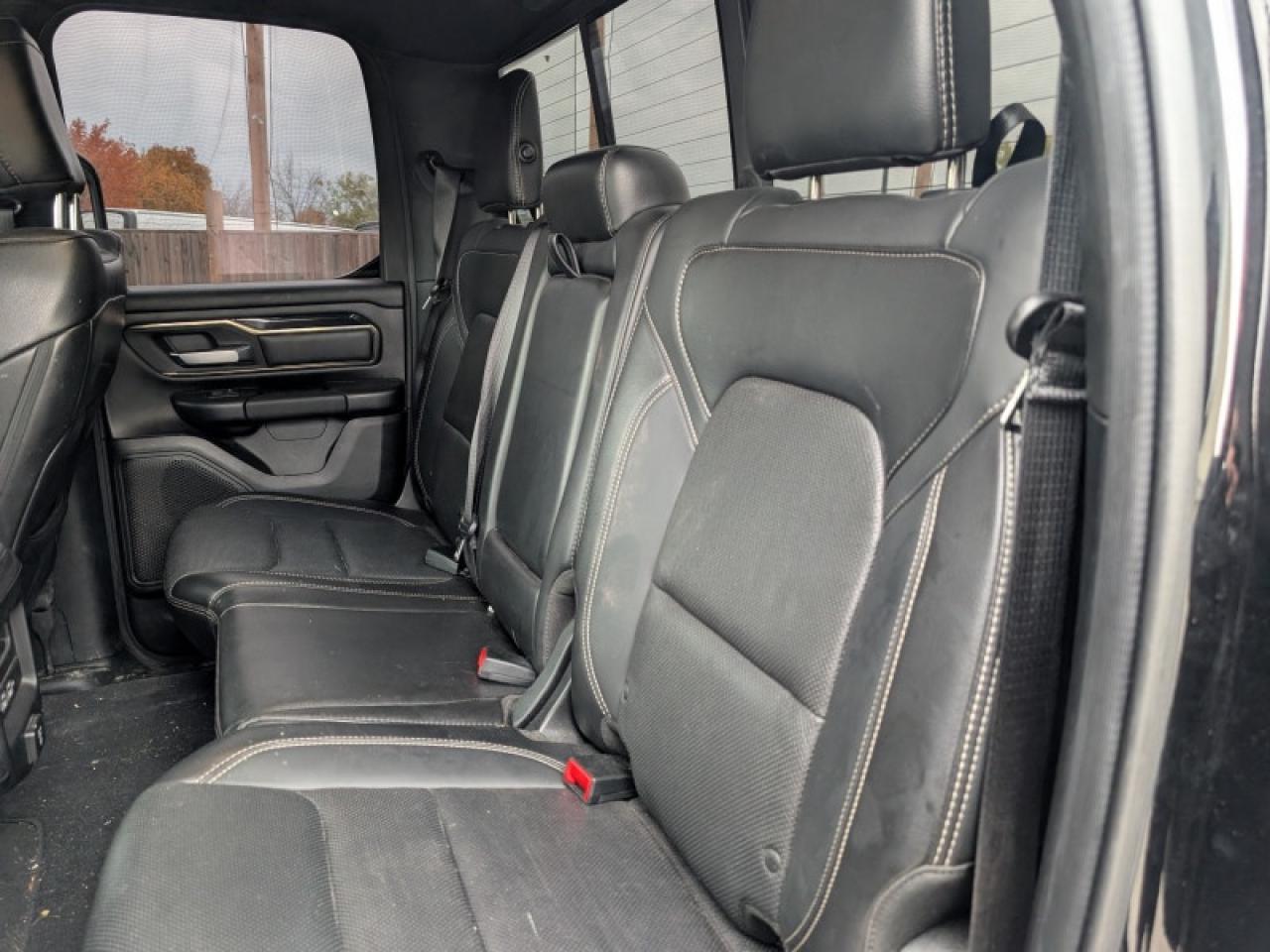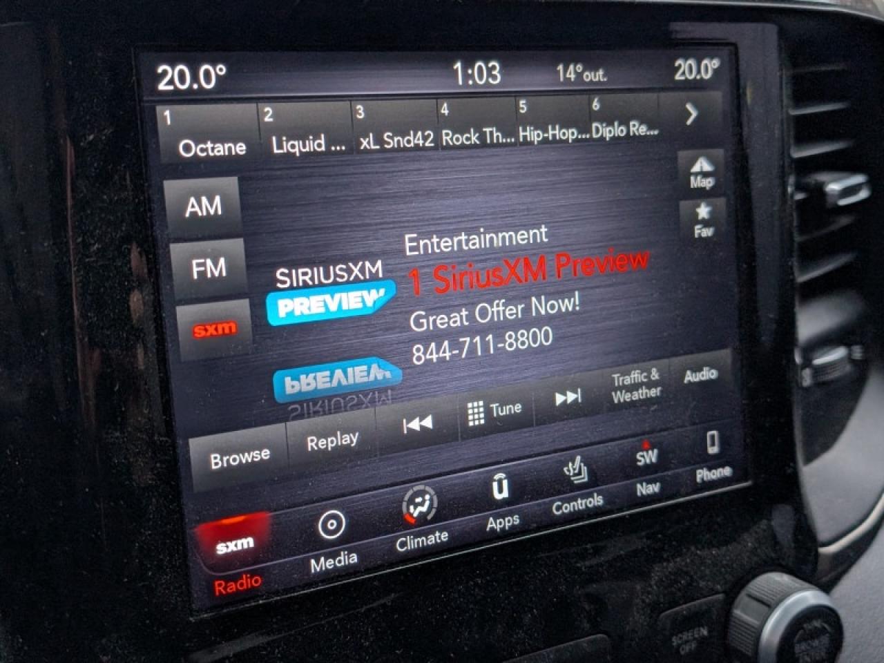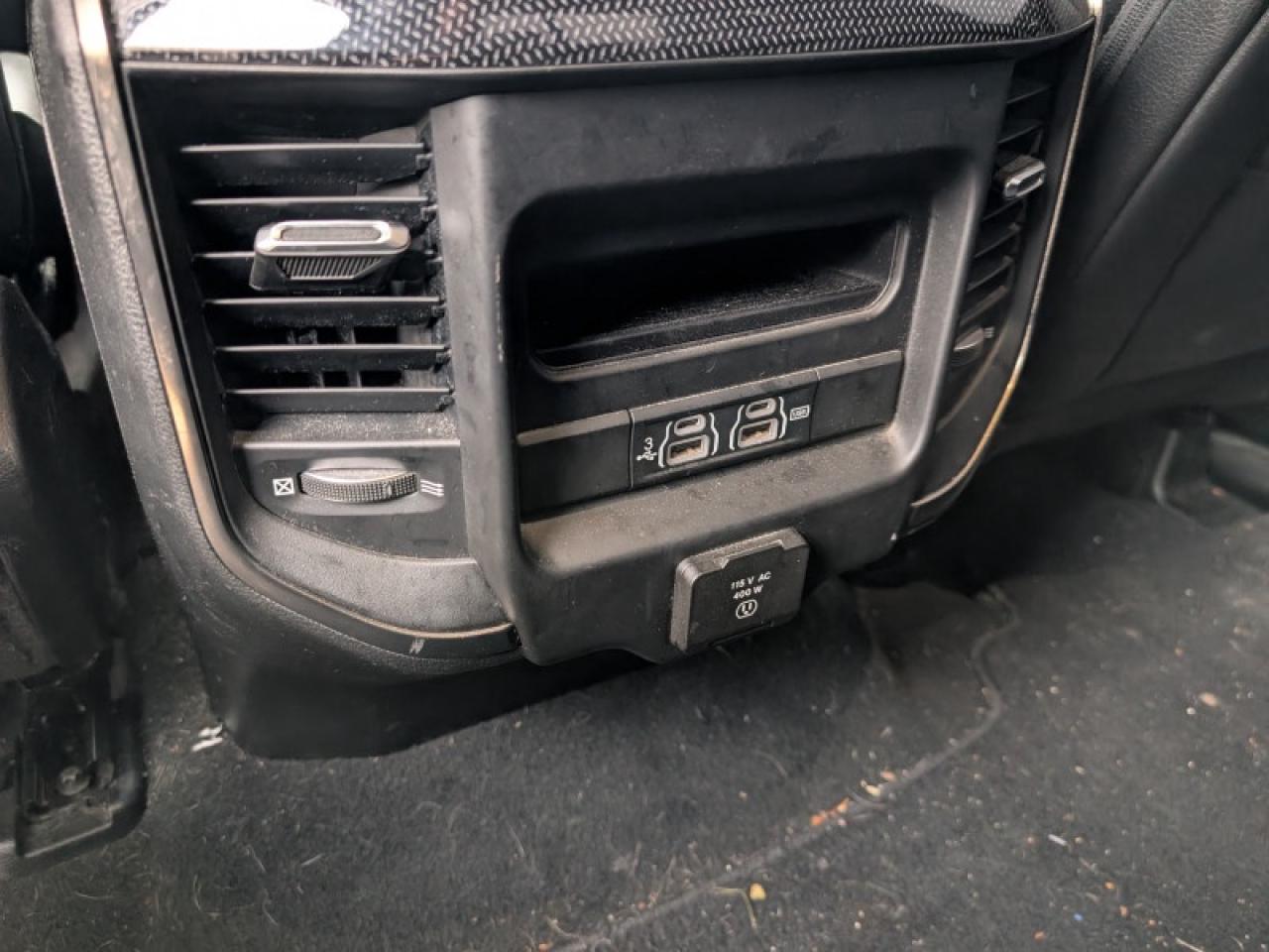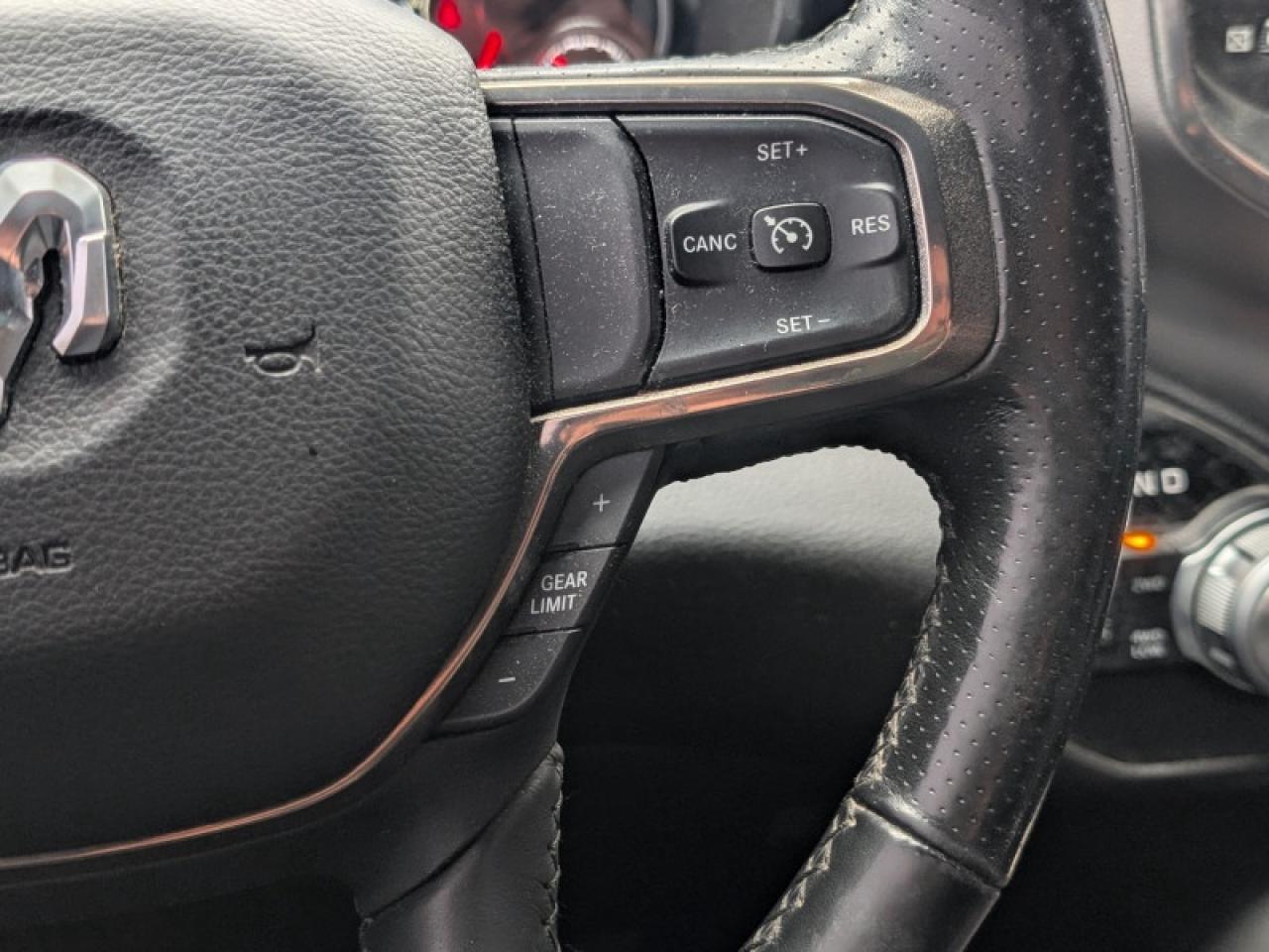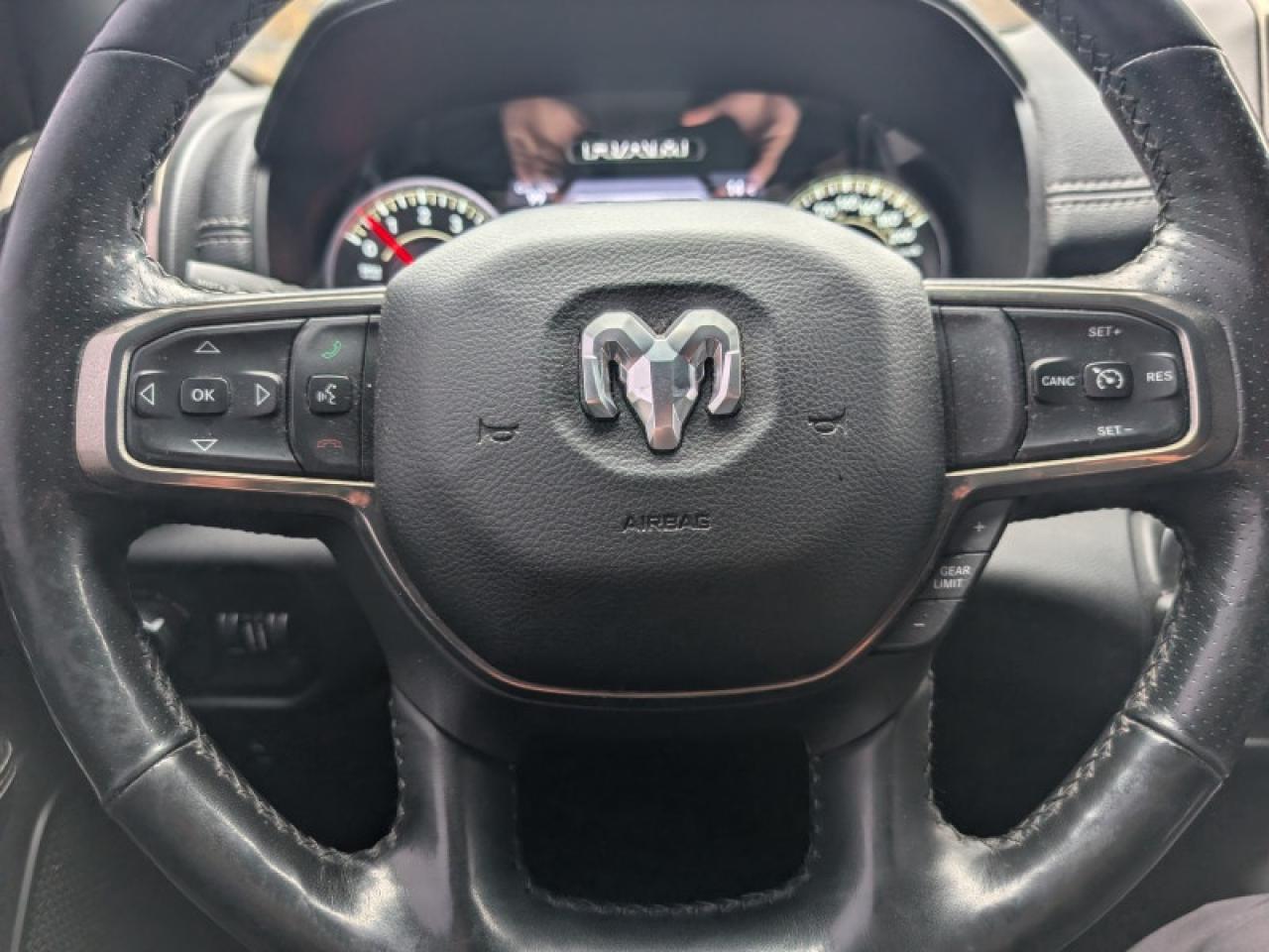 Our 1500's trim level is Sport. This Ram 1500 Sport comes very well equipped with performance styling, unique aluminum wheels, a heated leather steering wheel, heated front seats, Uconnect with a larger touchscreen, wireless streaming audio, USB input jacks, and a useful rear view camera. This sleek pickup truck also comes with body-colored bumpers with rear step, a power rear window and power heated side mirrors, proximity keyless entry, cruise control, LED Lights, an HD suspension, towing equipment, a Parkview rear camera, front fog lights and so much more.