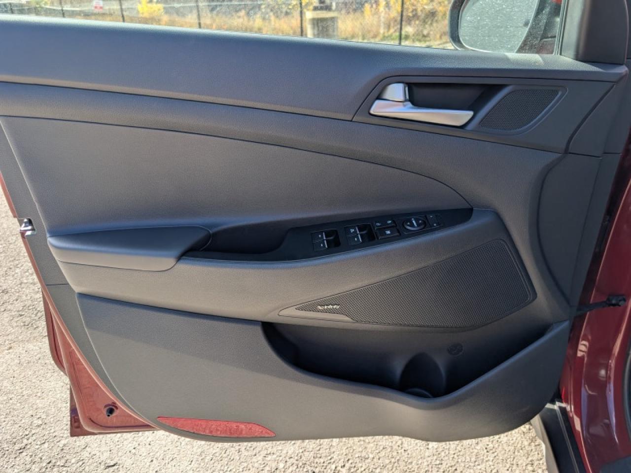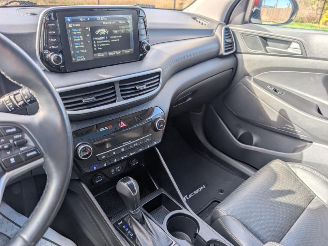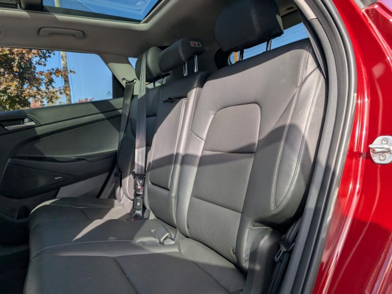 Our Tucson's trim level is Ultimate. This Ultimate trim is the top level and offers everything you need in an SUV. Features include larger aluminum wheels, adaptive cruise control, forward collision warning with pedestrian detection, a larger 8 inch colour touch screen with navigation, high beam assist and ventilated leather seats. The passenger and driver seats are powered for added comfort and it also comes with a premium Infinity audio system, power liftgate, a large panoramic sunroof and so much more.