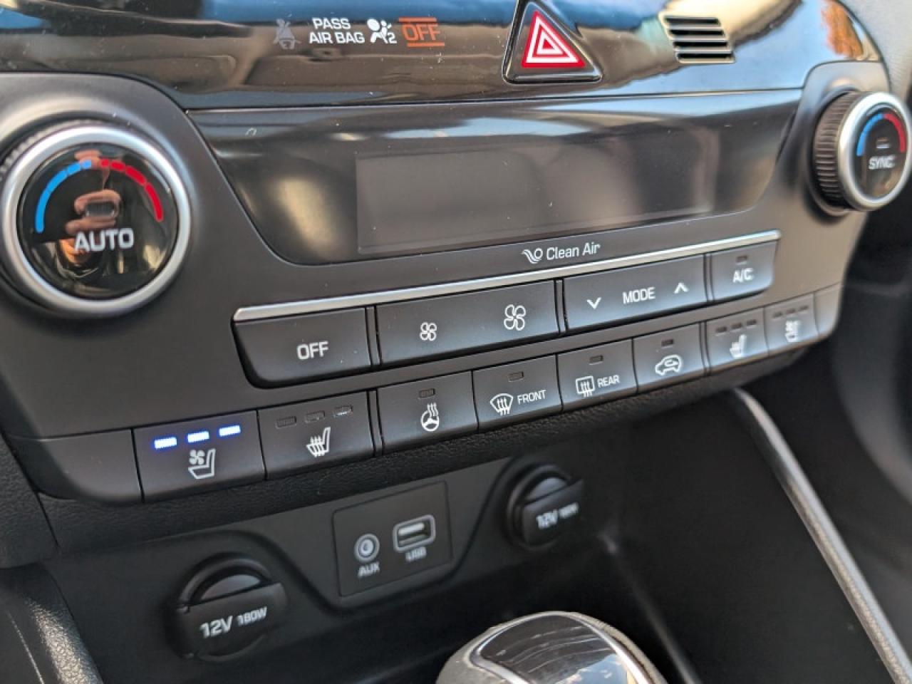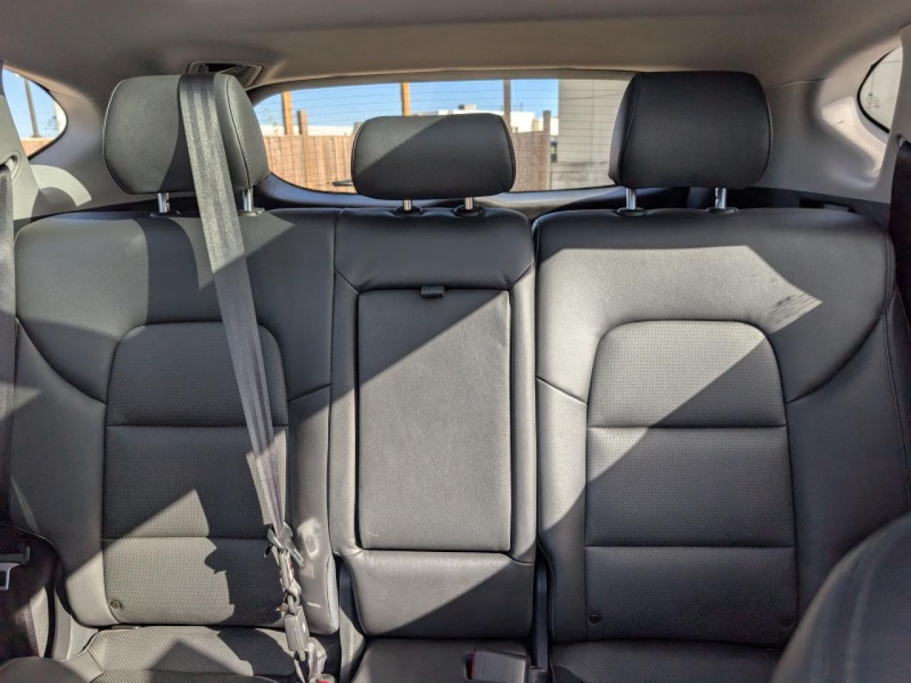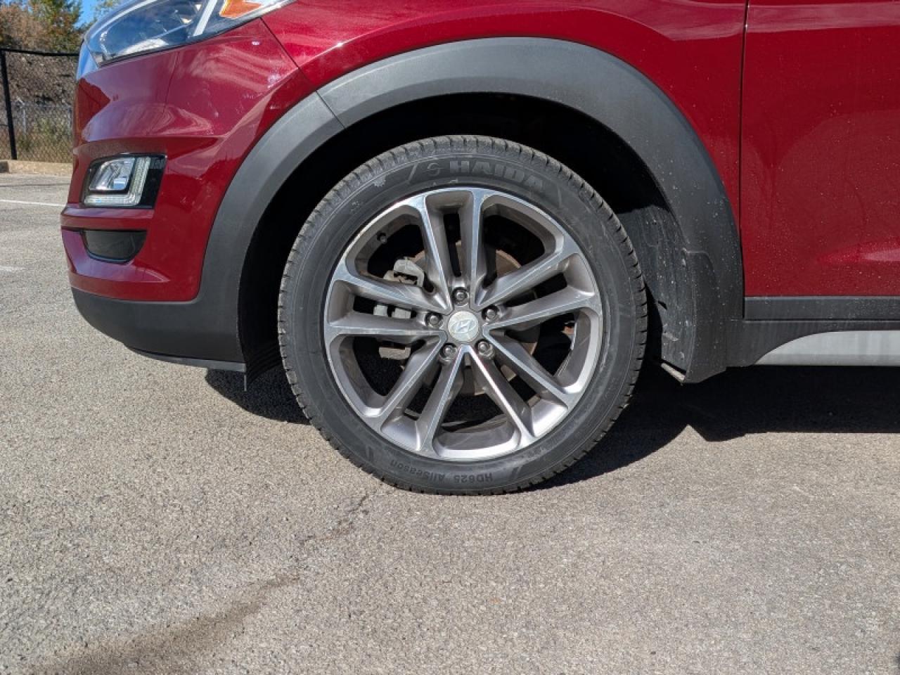 Our Tucson's trim level is Ultimate. This Ultimate trim is the top level and offers everything you need in an SUV. Features include larger aluminum wheels, adaptive cruise control, forward collision warning with pedestrian detection, a larger 8 inch colour touch screen with navigation, high beam assist and ventilated leather seats. The passenger and driver seats are powered for added comfort and it also comes with a premium Infinity audio system, power liftgate, a large panoramic sunroof and so much more.