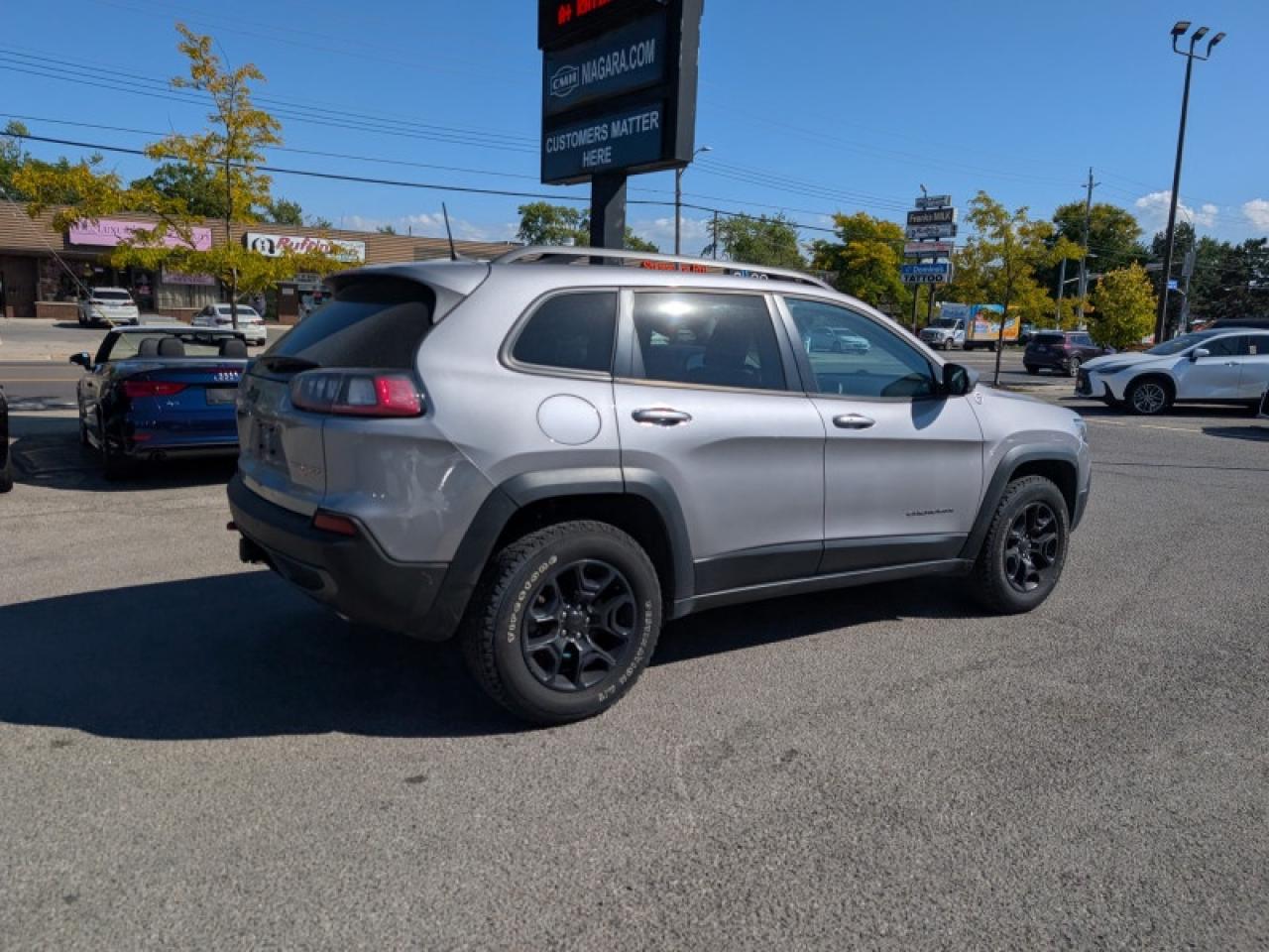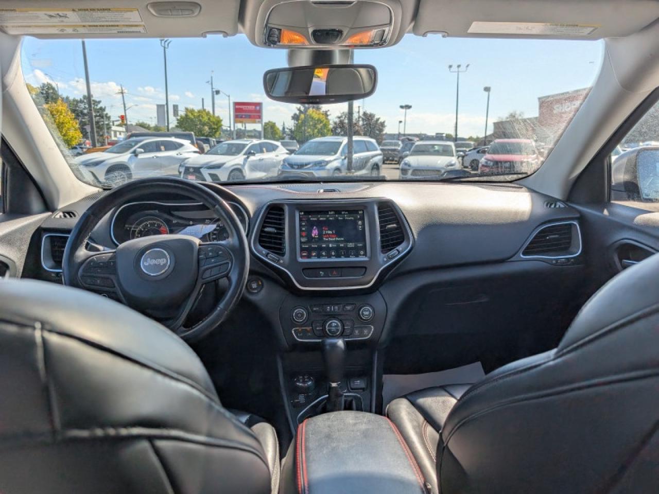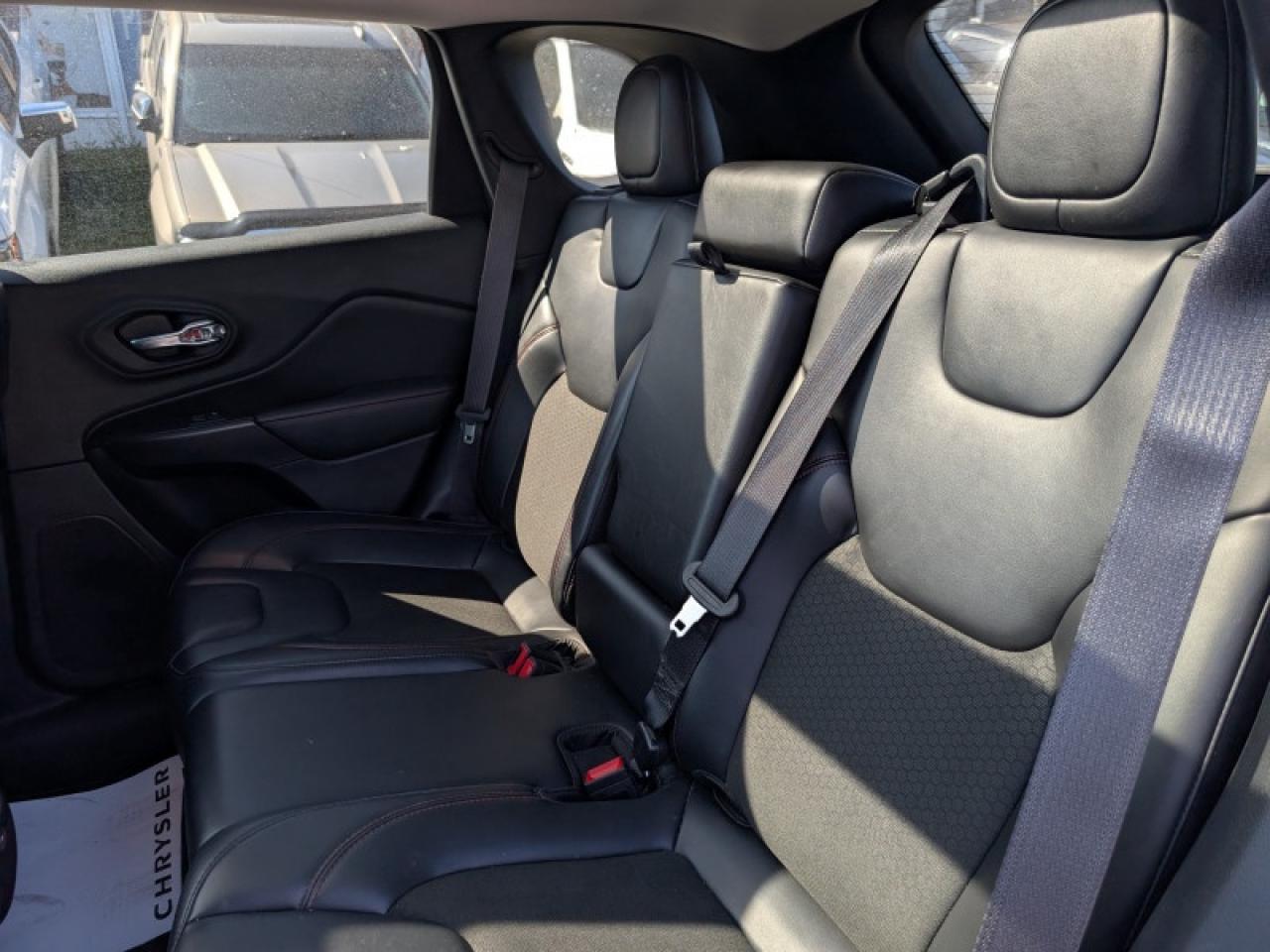 Our Cherokee's trim level is Trailhawk. This Cherokee Trailhawk has some off-road attitude with unique exterior accents, LED lighting with automatic headlamps and also comes with front fog lights. Additional features include unique aluminum wheels and an upgraded Uconnect 4 infotainment system with a 8.4 inch touch screen, Android Auto, Apple CarPlay, Selec-Terrain with Rock mode and driveline traction control, ParkView back-up camera, gloss black roof rails and remote keyless entry. You will also get a 12 way power driver seat and a 60-40 split bench rear seat, making this mighty SUV the ultimate weekend warrior!