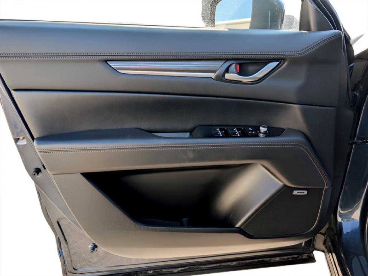 Our CX-5's trim level is GT Turbo. This GT CX-5 has just about everything you could imagine with a power moonroof, navigation, head-up display, air cooled leather seats, wood and metal trim, premium Bose sound, driver seat memory settings, proximity entry, SiriusXM, adaptive front lighting, HomeLink remote system, automatic climate control, and LED lighting with fog lights. This trim also adds traffic sign recognition to the driver assistance features like stop and go adaptive cruise, full range active braking assist, pedestrian detection, forward obstruction warning, lane keep assist with departure warning, and high beam control help make every drive more safe and less fatiguing. For even more comfort, you get heated seats, heated steering wheel, power liftgate, advanced blind spot monitoring, 7 inch Mazda Connect enabled touchscreen, Apple CarPlay and Android Auto.