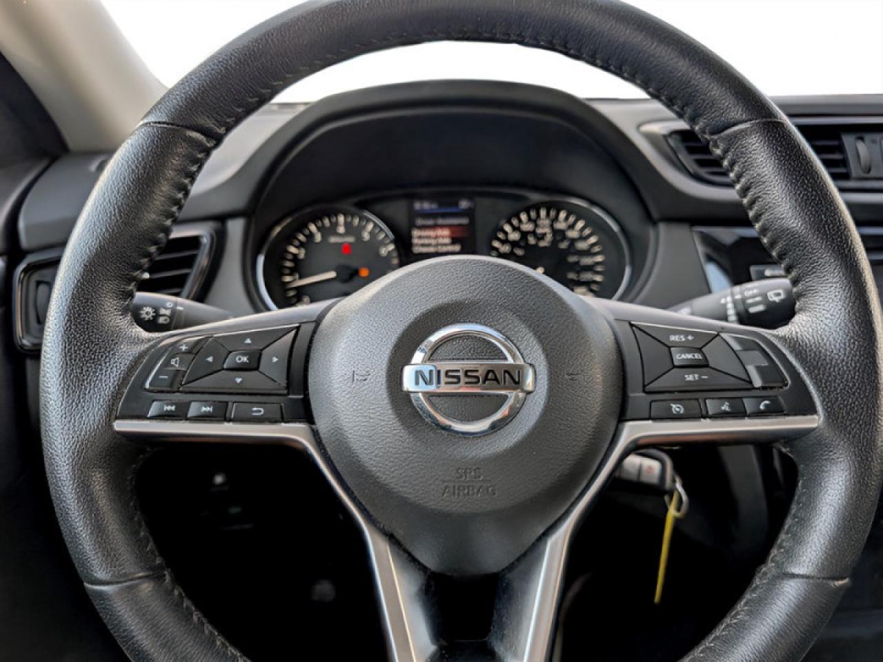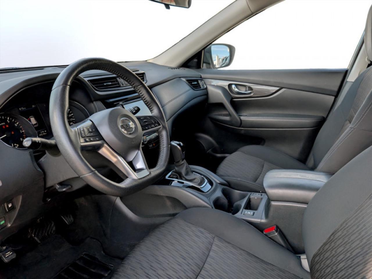 Our Rogue's trim level is S Special Edition. This Rogue Special Edition builds off the S features like heated power side mirrors with turn signals, sport mode with manual shifter, Advanced Drive-Assist, mood lighting, heated front seats, a 7 inch display with NissanConnect, Apple CarPlay, Android Auto, SiriusXM, Bluetooth, MP3/WMA/CD playback, aux and USB inputs for interior comfort. This Rogue also has some great safety features like intelligent trace control that applies braking to turning side for added control, active ride control adjusts suspension damping for different applications, and intelligent engine braking that uses the motor to reduce brake wear, forward collision warning with automatic emergency braking, and blind spot warning with rear cross traffic alert. This Special Edition package adds aluminum wheels, roof rails, Special Edition badge, chrome door handles, dual zone automatic climate control, and a heated leather steering wheel.