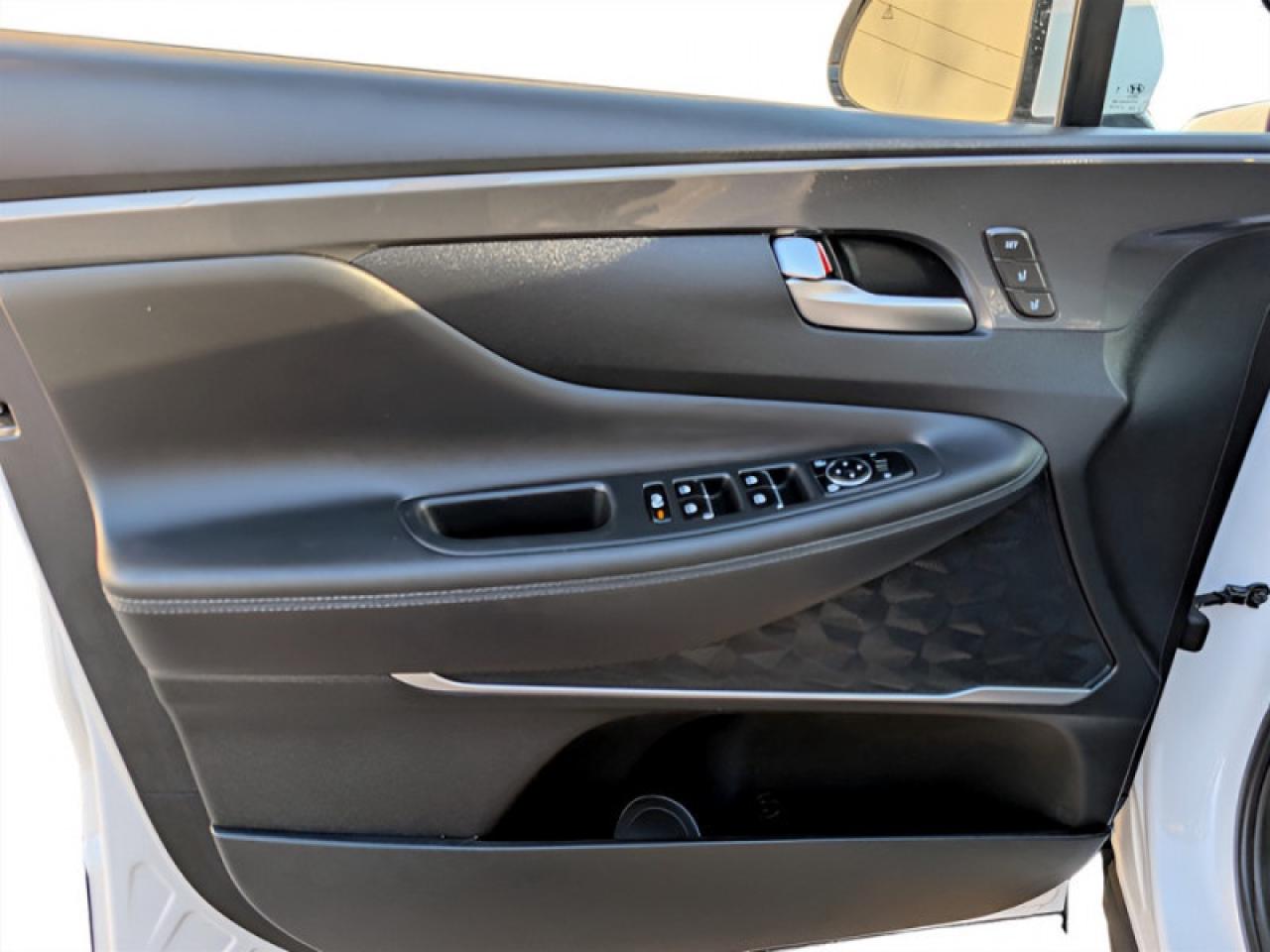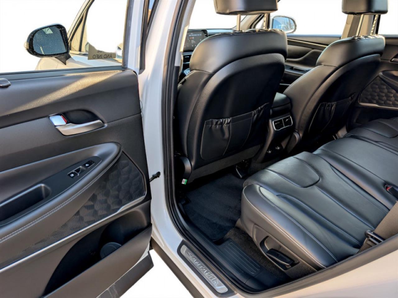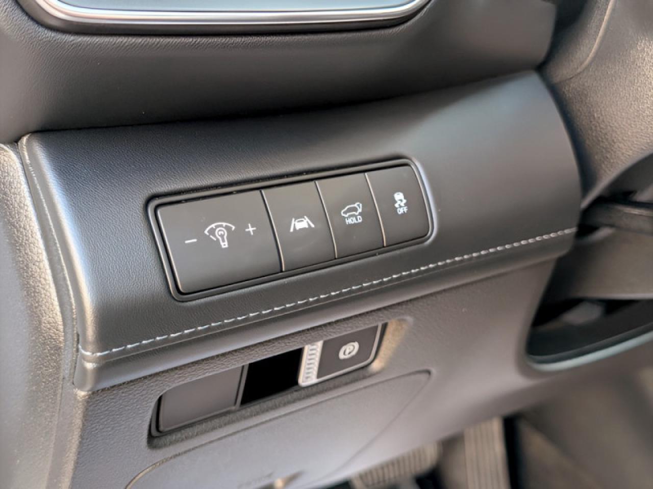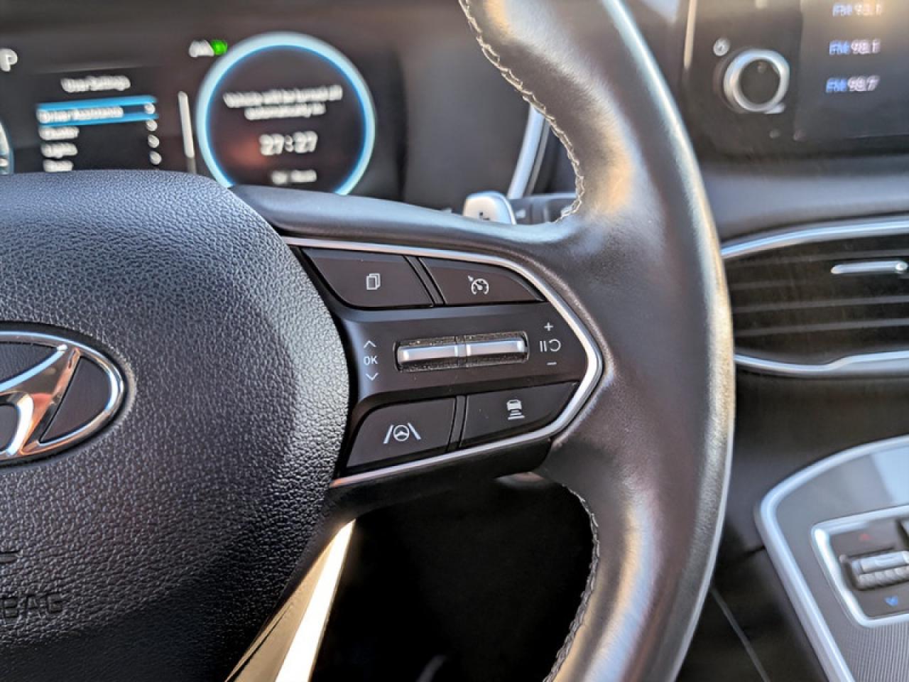 Our Santa Fe Hybrid's trim level is Luxury AWD. This Santa Fe Luxury has all the driver assistance and safety features you could need with active blind spot and rear cross traffic assistance, parking distance assist, dual zone automatic climate control, proximity key entry. Other features include forward collision mitigation with pedestrian detection, adaptive cruise control with stop and go, lane keep assist, automatic high beams, a touchscreen, Android Auto, Apple CarPlay, heated seats and steering wheel, Bluetooth, automatic headlamps, LED accent lighting, drive mode select, leather upholstery, and remote start. This trim also adds the cutting edge of comfort tech with sunroof, rain sensing wipers, power liftgate, wireless charging, cooled seats, memory settings, and a 360 degree parking camera.