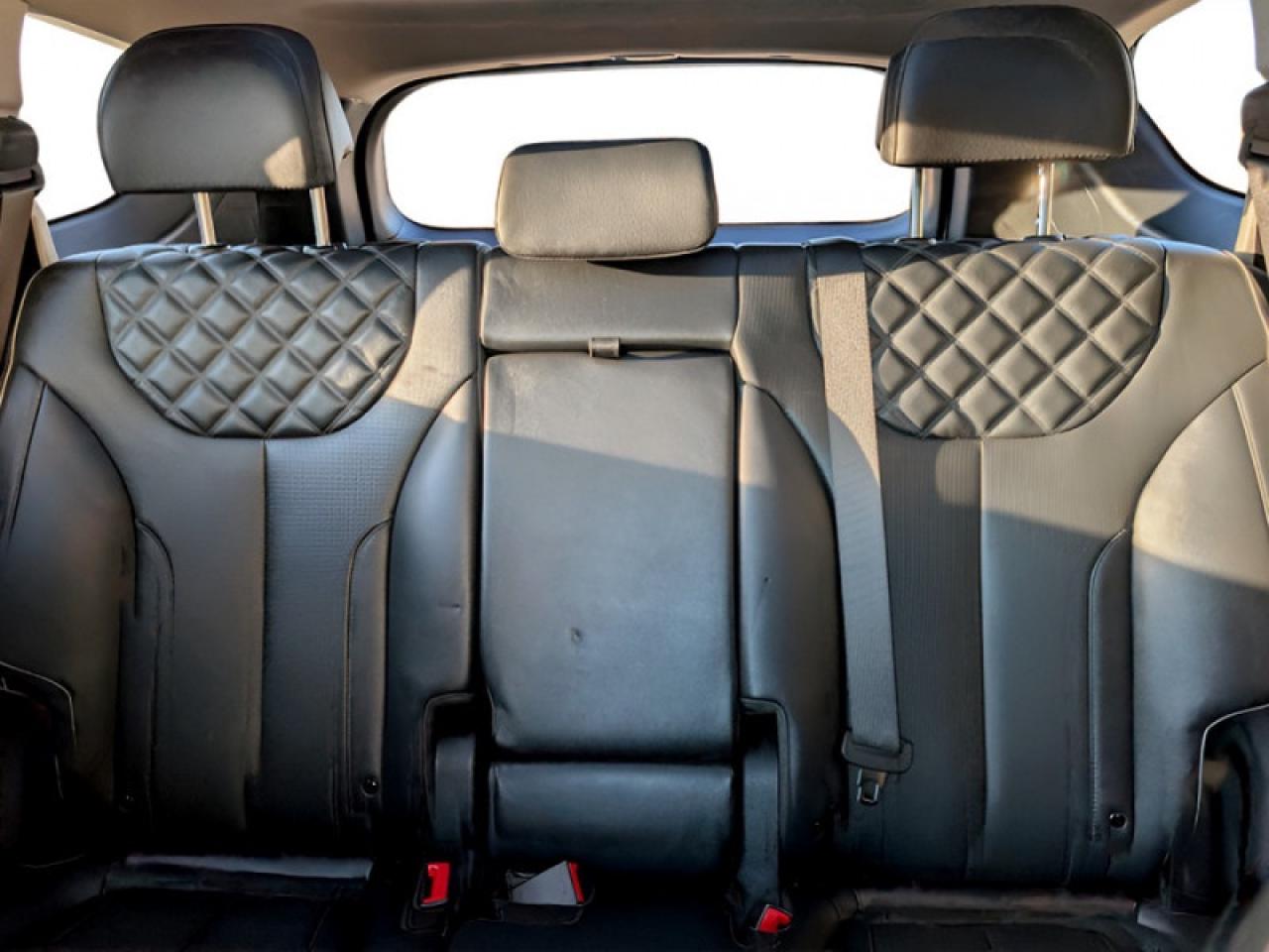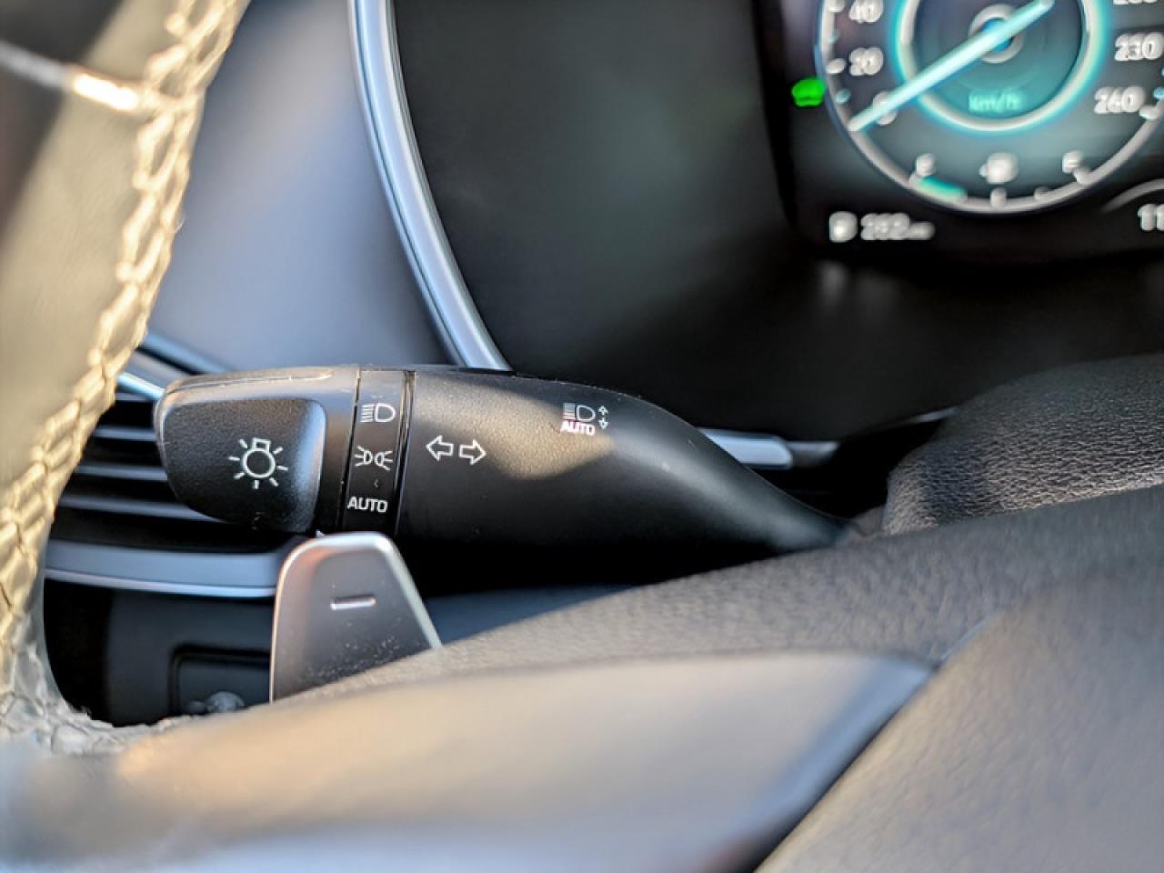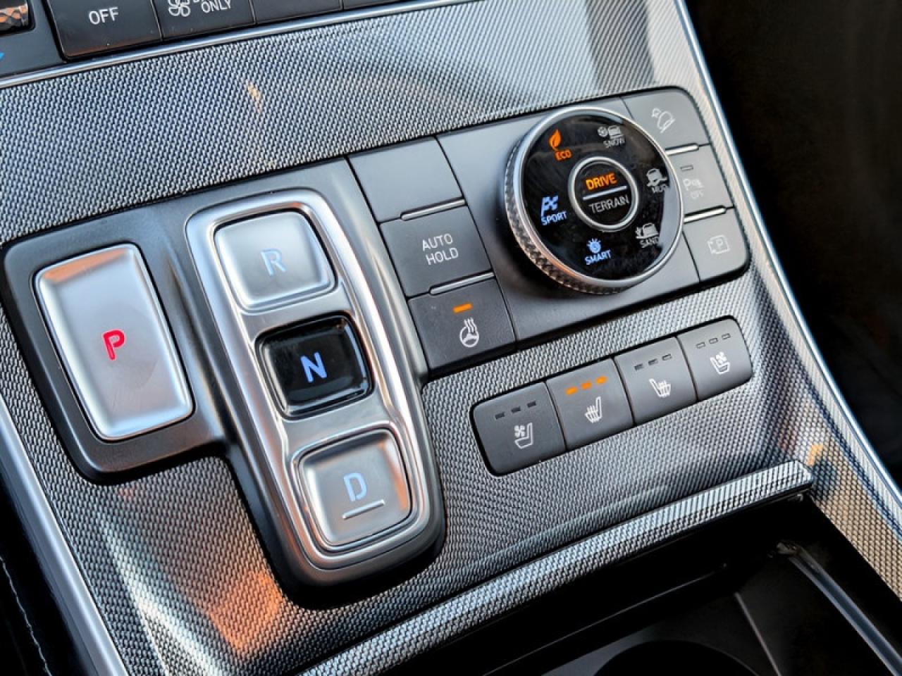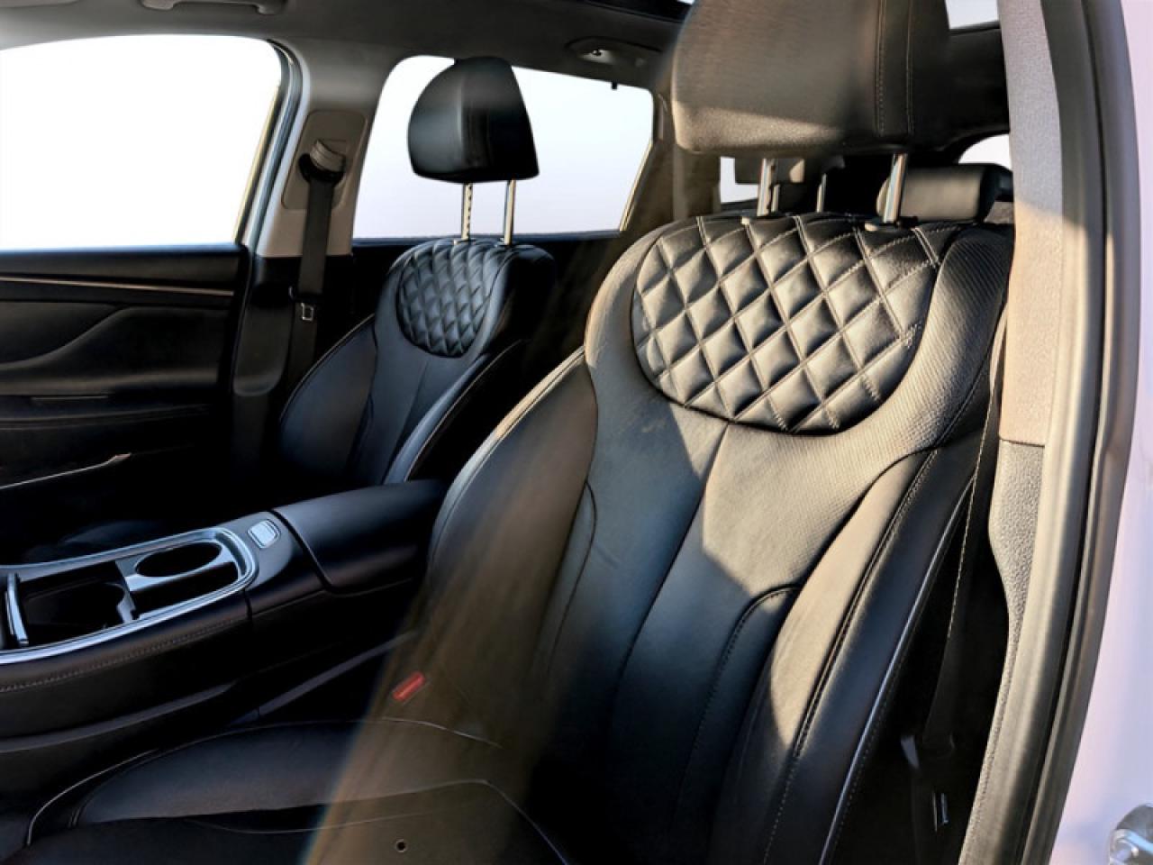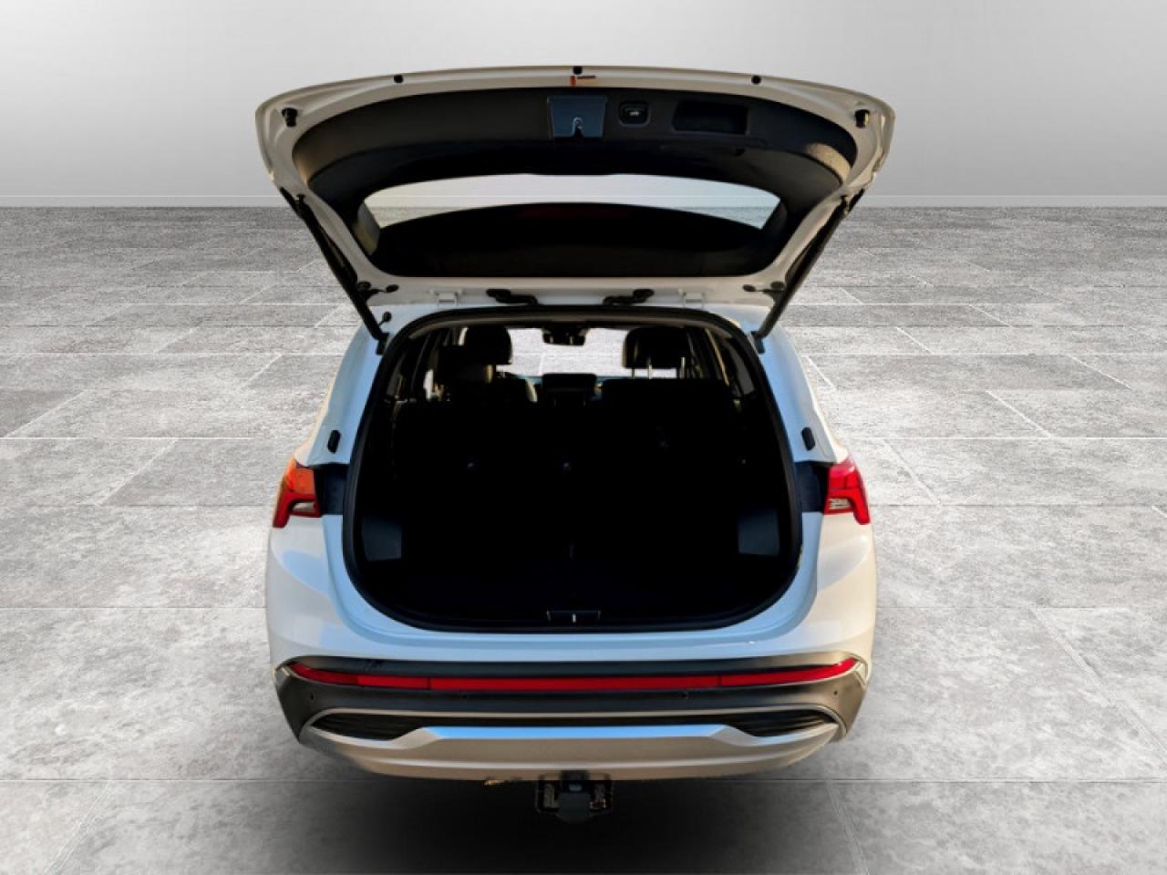 Our Santa Fe Hybrid's trim level is Luxury AWD. This Santa Fe Luxury has all the driver assistance and safety features you could need with active blind spot and rear cross traffic assistance, parking distance assist, dual zone automatic climate control, proximity key entry. Other features include forward collision mitigation with pedestrian detection, adaptive cruise control with stop and go, lane keep assist, automatic high beams, a touchscreen, Android Auto, Apple CarPlay, heated seats and steering wheel, Bluetooth, automatic headlamps, LED accent lighting, drive mode select, leather upholstery, and remote start. This trim also adds the cutting edge of comfort tech with sunroof, rain sensing wipers, power liftgate, wireless charging, cooled seats, memory settings, and a 360 degree parking camera.