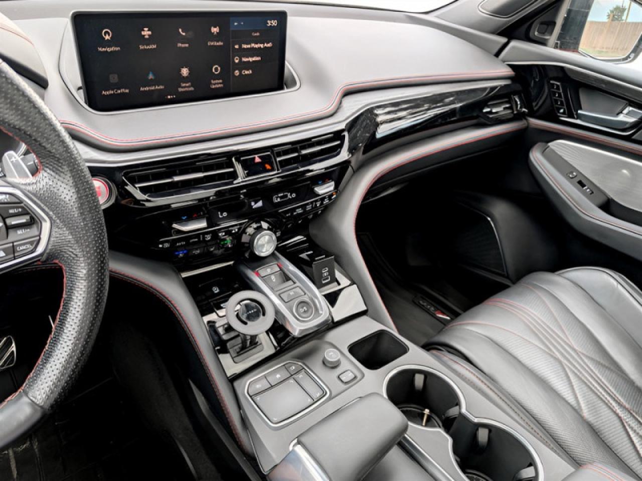 Our MDX's trim level is Type S Ultra. Contrast stitching and piping on your seats along with wood trim makes for serious style in this MDX Ultra Type S. With heated and cooled massaging seats made of Ultrasuede and leather underneath a beautiful sunroof, this MDX S Type is an obvious choice for luxury SUVs. Auto leveling suspension creates a subtle level of refinement matched by the thrilling ride offered by predictive and adaptive suspension with driver controlled ride height. That refinement is also shown in the stylish blacked out exterior trim, remote start, heated steering wheel, and proximity power liftgate with auto latch. Infotainment is cutting edge with navigation, ELS premium audio, Apple CarPlay, Android Auto, and wi-fi. Active assistance comes in the form of lane keep assist, distance pacing cruise with stop and go, blind spot monitor, automatic braking, parking sensors, and a 360 degree camera