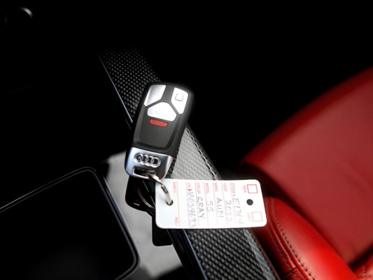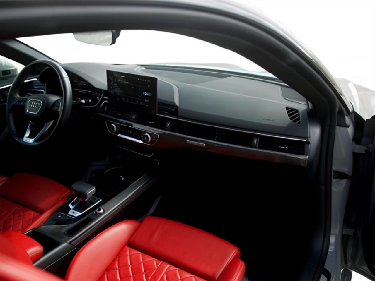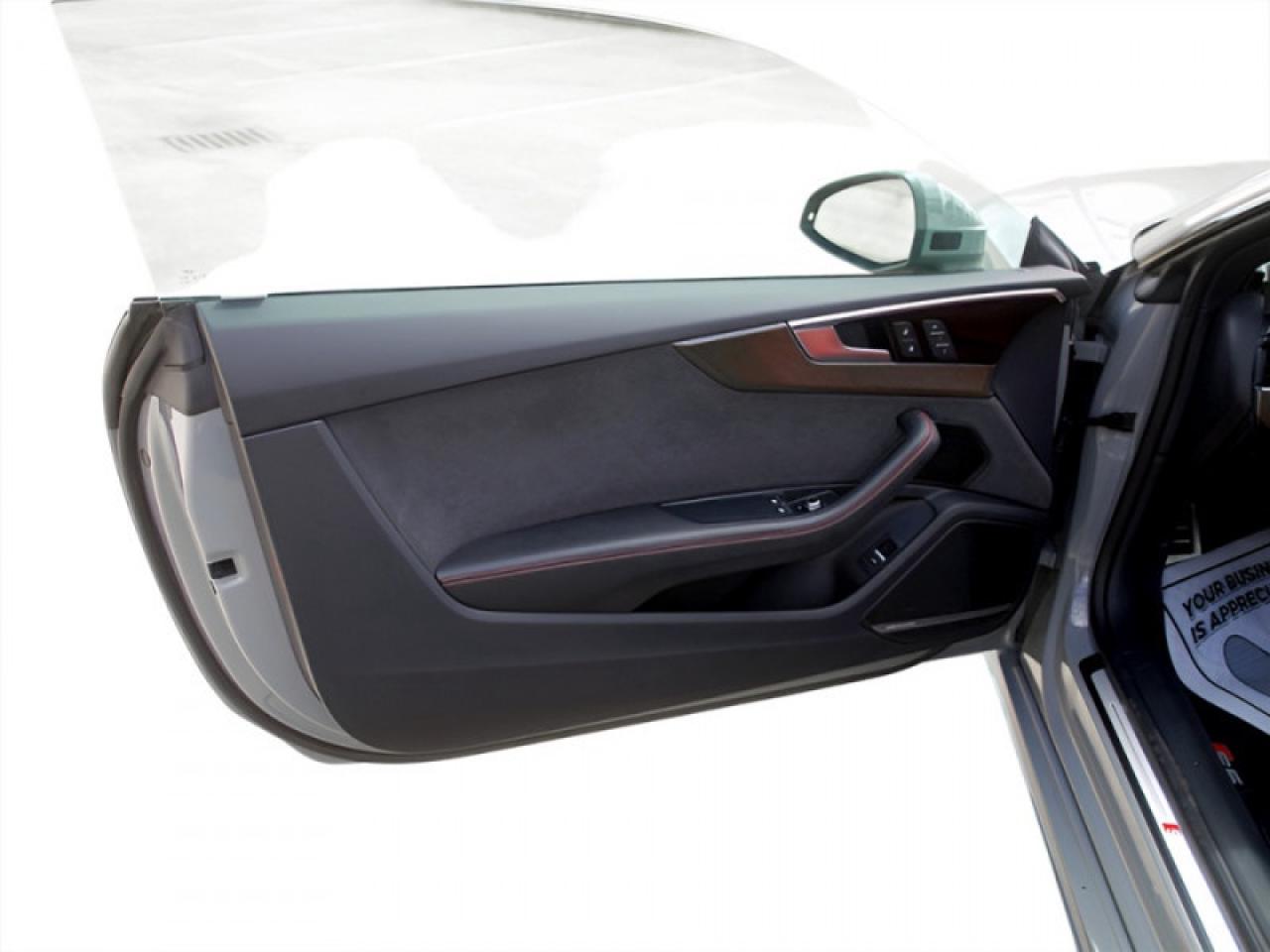 Our S5 Coupe's trim level is Technik 3.0 TFSI quattro. This Technik trim adds a Bang and Olufsen 3D sound system with 19 speakers, distance pacing cruise with stop and go, and an aerial view 360 camera. Cozy heated Nappa leather seats with a massage function or a wind in your hair, sunroof open experience make for a luxurious drive in this S5. Audi Virtual Cockpit Plus comes with navigation, wireless Apple CarPlay, and Amazon Alexa to enhance your drive with connection and information. Proximity keyless entry and cargo access gives way to a luxurious interior complete with memory settings, a heated steering wheel, and a ton of subtle comfort features. Audi Pre Sense City helps you stay safe with blind spot assist, parking sensors, and collision avoidance assist.