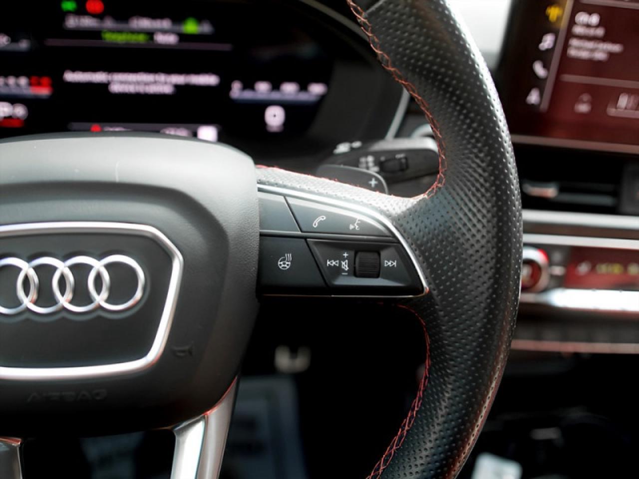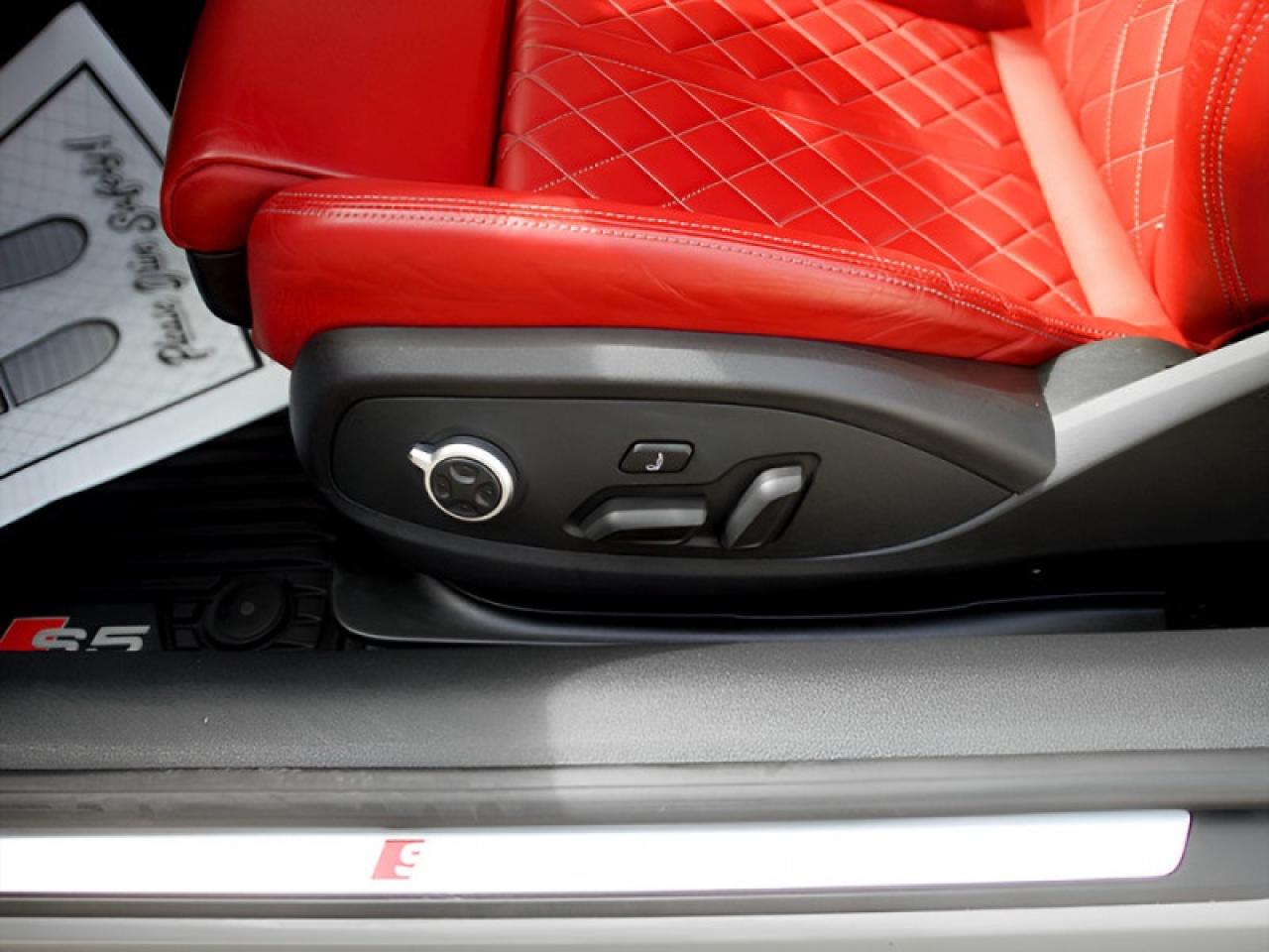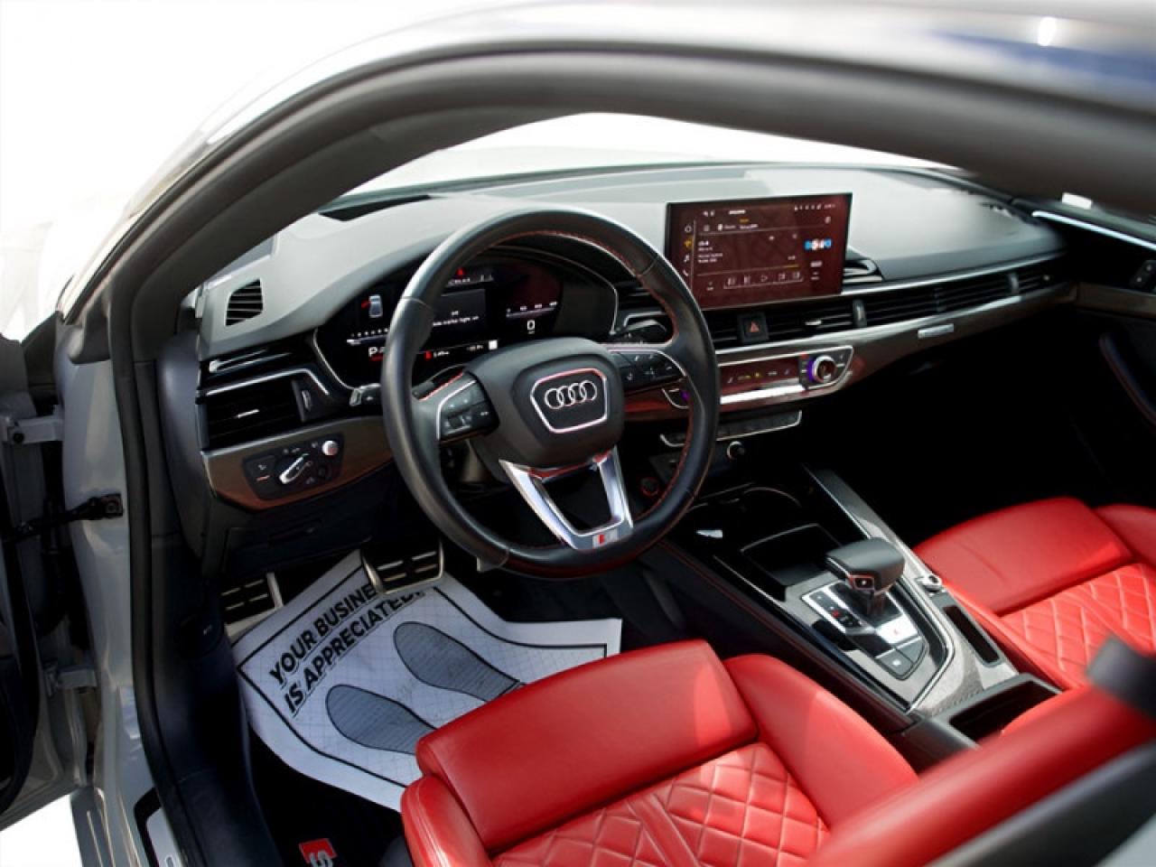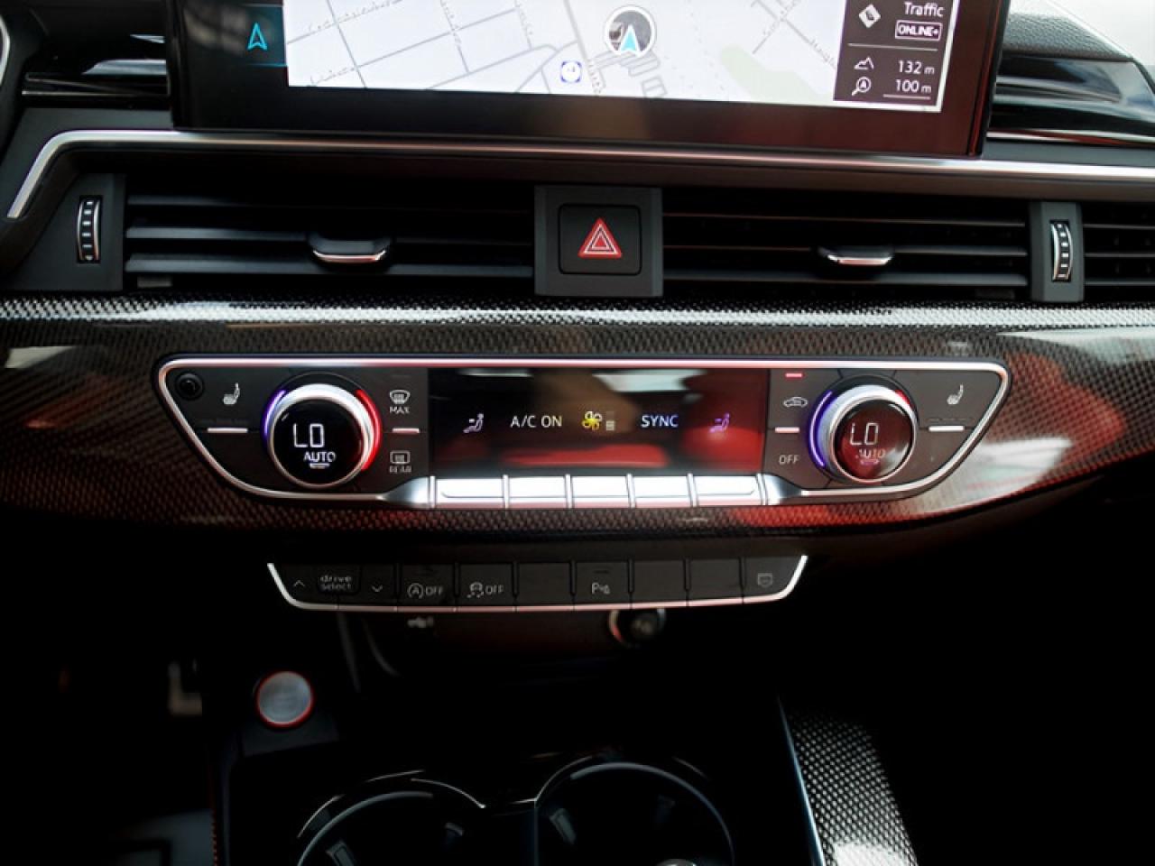 Our S5 Coupe's trim level is Technik 3.0 TFSI quattro. This Technik trim adds a Bang and Olufsen 3D sound system with 19 speakers, distance pacing cruise with stop and go, and an aerial view 360 camera. Cozy heated Nappa leather seats with a massage function or a wind in your hair, sunroof open experience make for a luxurious drive in this S5. Audi Virtual Cockpit Plus comes with navigation, wireless Apple CarPlay, and Amazon Alexa to enhance your drive with connection and information. Proximity keyless entry and cargo access gives way to a luxurious interior complete with memory settings, a heated steering wheel, and a ton of subtle comfort features. Audi Pre Sense City helps you stay safe with blind spot assist, parking sensors, and collision avoidance assist.