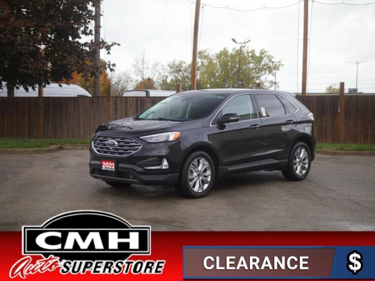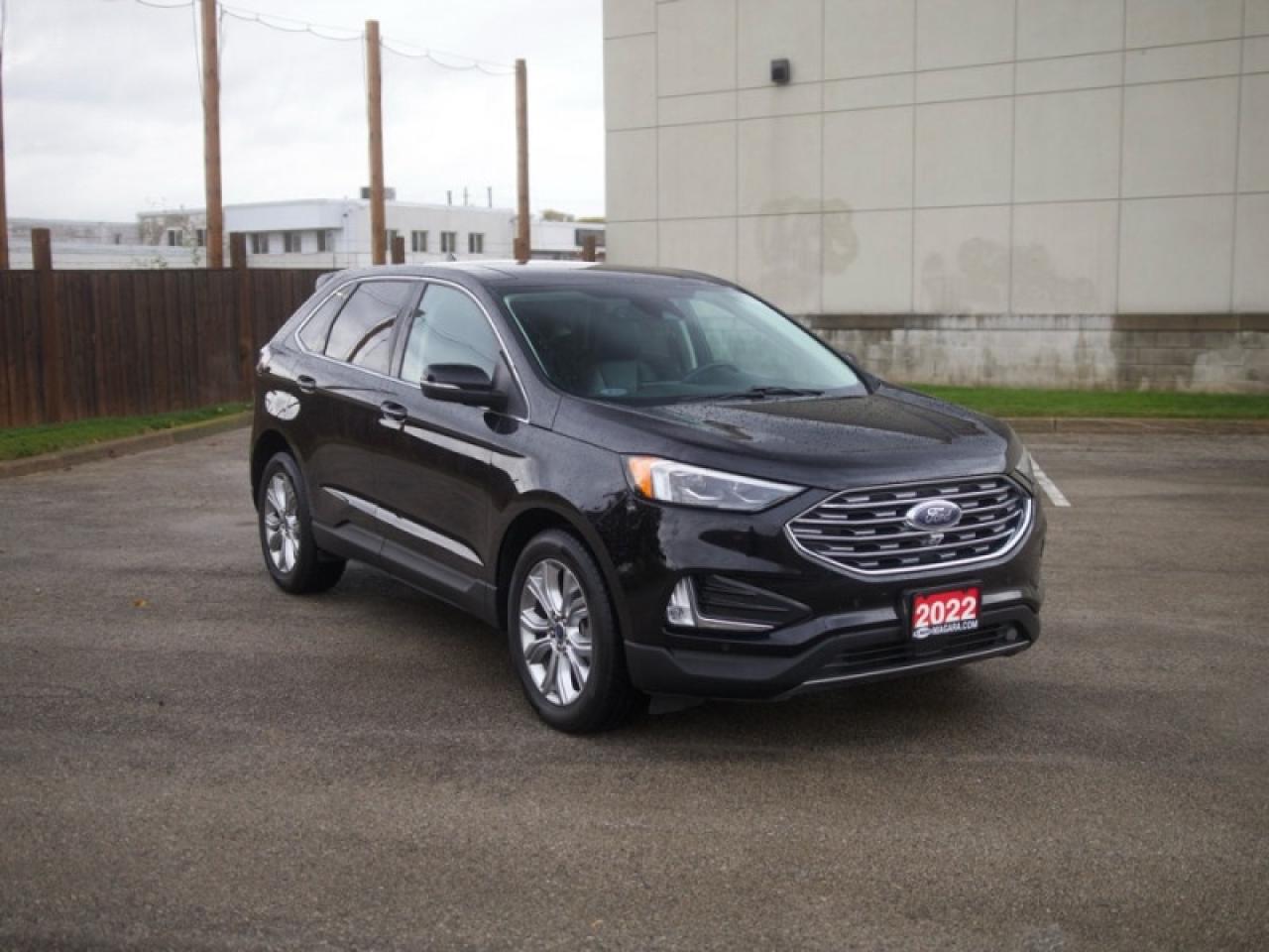 Our Edge's trim level is Titanium. Upgrading to this Edge Titanium is a great choice as it comes loaded with an impressive list of features including unique aluminum wheels and exterior chrome trim, a premium 12 speaker Bang & Olufsen sound system, a power rear liftgate, power and heated leather seats, FordPass Connect with a 4G LTE hotspot, a 12 inch touchscreen featuring SYNC 4, wireless Apple CarPlay and Android Auto, a leather wrapped steering wheel and dual zone automatic climate control. For added safety and convenience, you will also get Ford Co-Pilot360 with blind spot assist, lane keep assist, automatic emergency braking, lane departure warning, a proximity key for push button start, rear parking sensors, front fog lights, a remote engine start plus so much more.