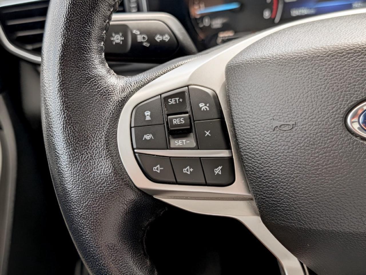 Our Explorer's trim level is XLT. This well equipped Ford Explorer XLT comes with a large color touchscreen featuring Apple CarPlay, Android Auto, SYNC 3, SiriusXM radio, and streaming audio. It also includes stylish aluminum wheels, voice activated dual-zone climate control, power front seats, split folding rear seats, a rearview camera with a reverse sensing system, power liftgate and Ford Co-Pilot360 featuring blind spot detection, cross traffic alert, lane keep assist and automatic emergency braking, a proximity key and a remote engine start, FordPass Connect 4G LTE WiFi plus so much more.