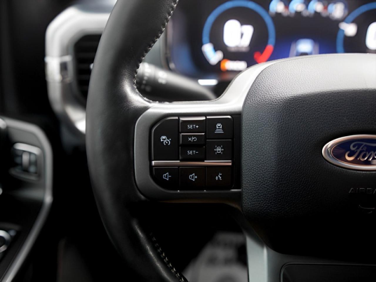 Our F-150's trim level is Lariat. This luxurious Ford F-150 Lariat comes loaded with premium features such as leather heated and cooled seats, body coloured exterior accents, a proximity key with push button start and smart device remote start, pro trailer backup assist and Ford Co-Pilot360 that features lane keep assist, blind spot detection, pre-collision assist with automatic emergency braking and rear parking sensors. Enhanced features also includes unique aluminum wheels, SYNC 4 with enhanced voice recognition featuring connected navigation, Apple CarPlay and Android Auto, FordPass Connect 4G LTE, power adjustable pedals, a powerful Bang & Olufsen audio system with SiriusXM radio, cargo box lights, dual zone climate control and a handy rear view camera to help when backing out of tight spaces.