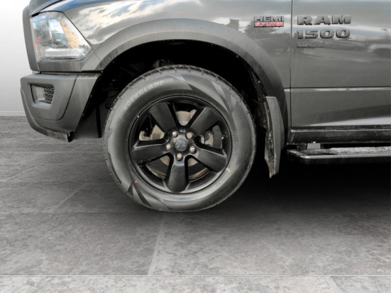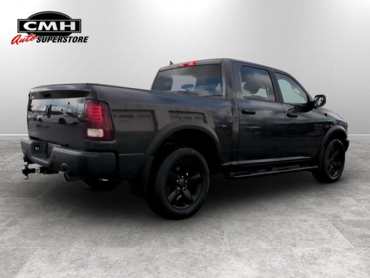 Our 1500 Classic's trim level is Warlock. This gothic looking Ram 1500 Classic Warlock is an awesome truck that comes with black aluminum wheels and dark exterior accents, front fog lamps, powder-coated front and rear bumpers, a touchscreen infotainment system that features wireless streaming audio and SiriusXM radio. This limited-edition truck also comes with a lift kit and heavy-duty shock absorbers, electronic stability plus trailer sway control, remote keyless entry, a ParkView rear back-up camera, cruise control, automatic headlights, and much more.