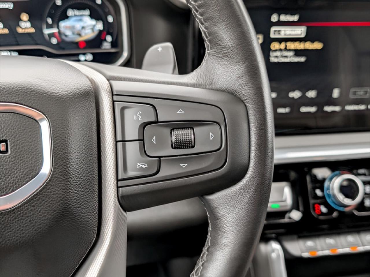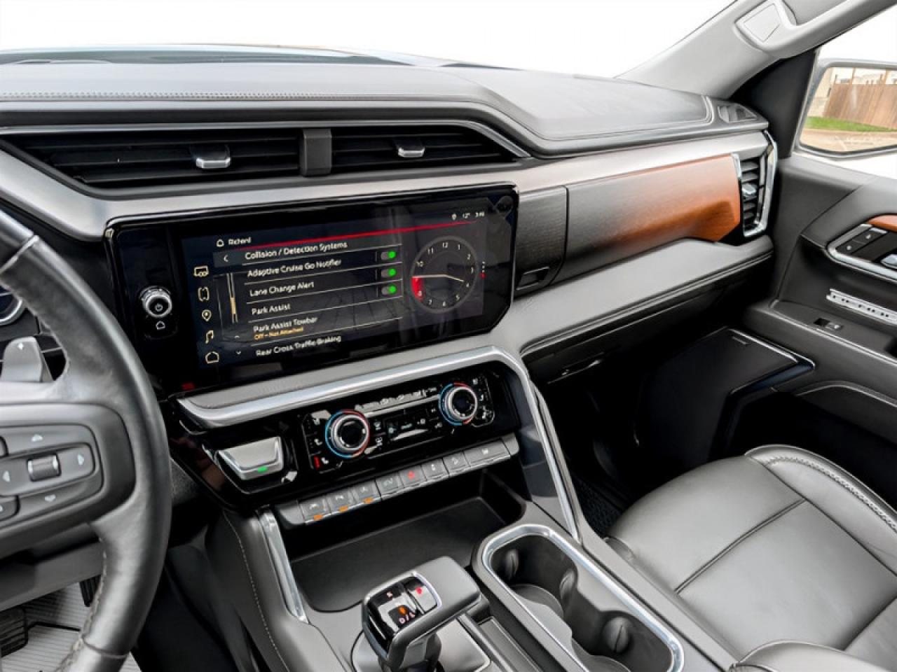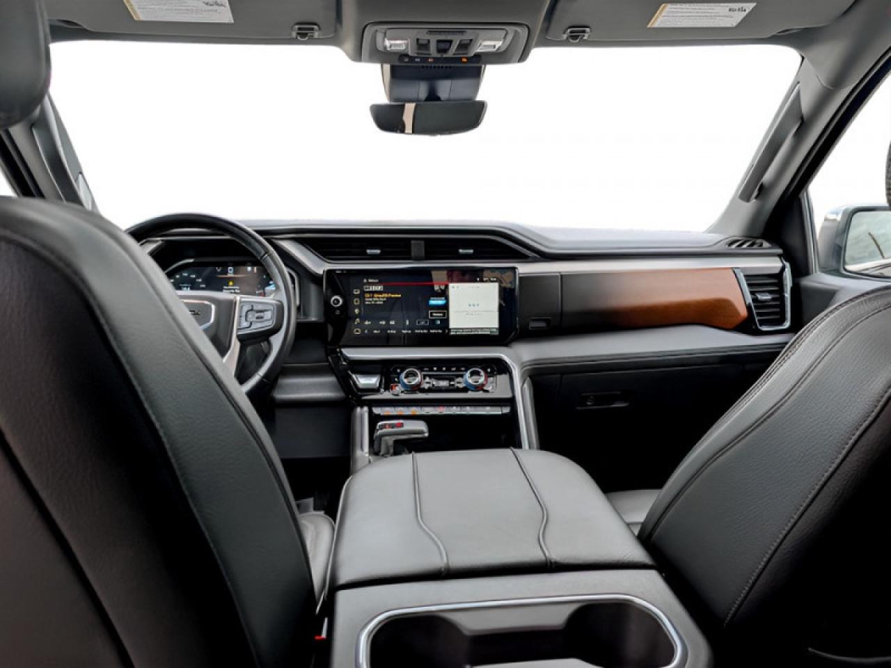 Our Sierra 1500's trim level is Denali Ultimate. This unmistakable GMC Sierra 1500 Denali Ultimate comes fully loaded with luxurious full grain leather seats and authentic open-pore wood trim, a signature Denali Vader chrome grille and exclusive aluminum wheels, plus a massive 13.4 inch touchscreen display that is paired with wireless Apple CarPlay and Android Auto, a premium 12-speaker Bose audio system, SiriusXM, and a 4G LTE hotspot. Additionally, this stunning pickup truck also features heated and cooled front seats and heated second row seats, a spray-in bedliner, wireless device charging, IntelliBeam LED headlights, remote engine start, forward collision warning and lane keep assist, a trailer-tow package with hitch guidance, LED cargo area lighting, ultrasonic parking sensors, an HD surround vision camera, heads up display, trailer blind spot detection plus so much more!