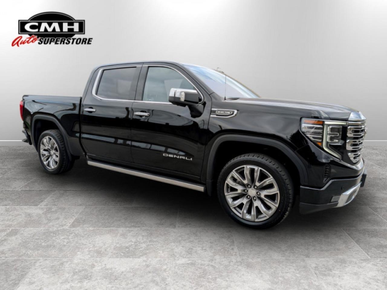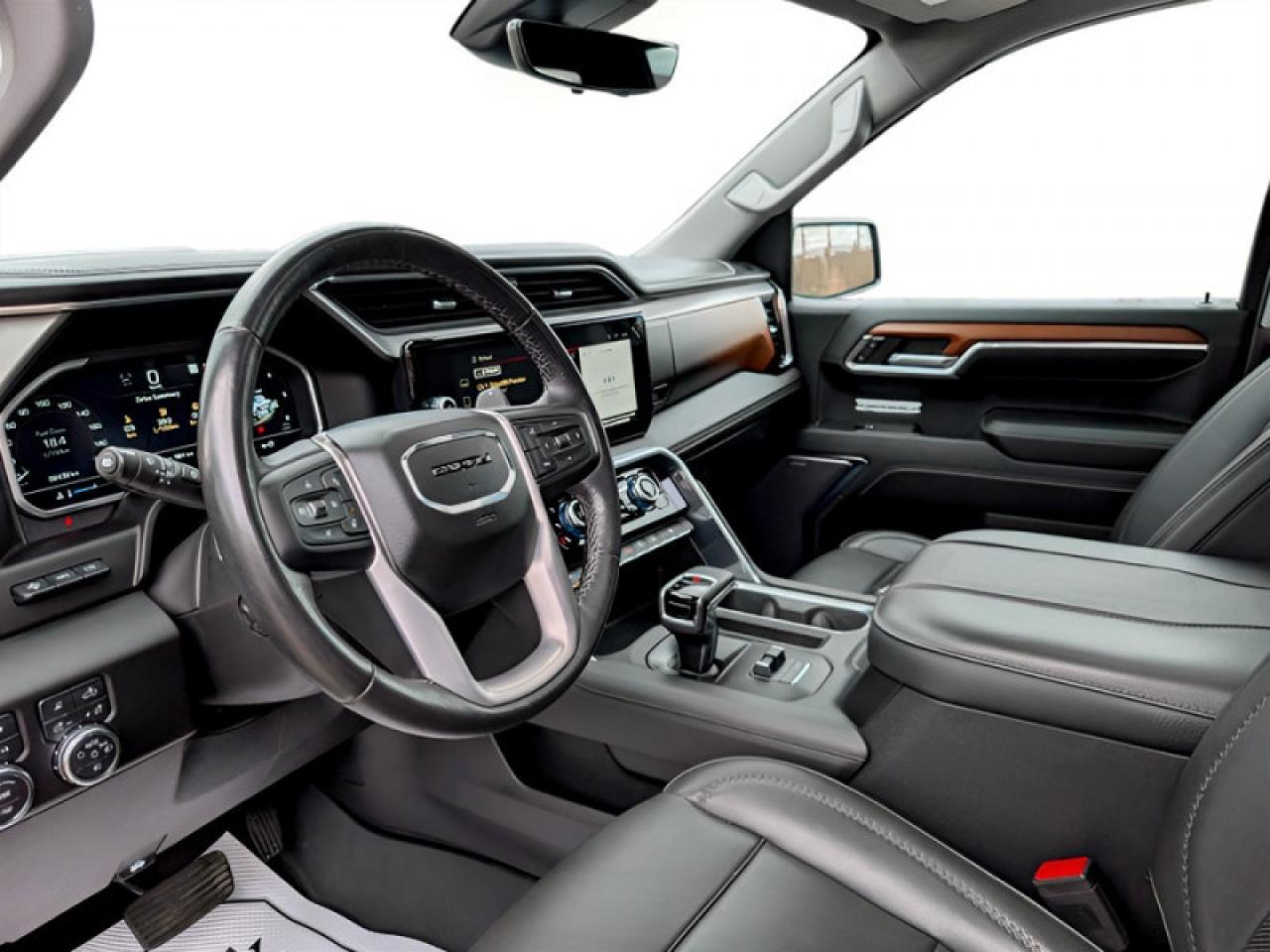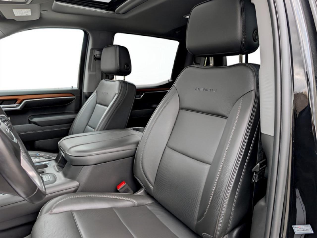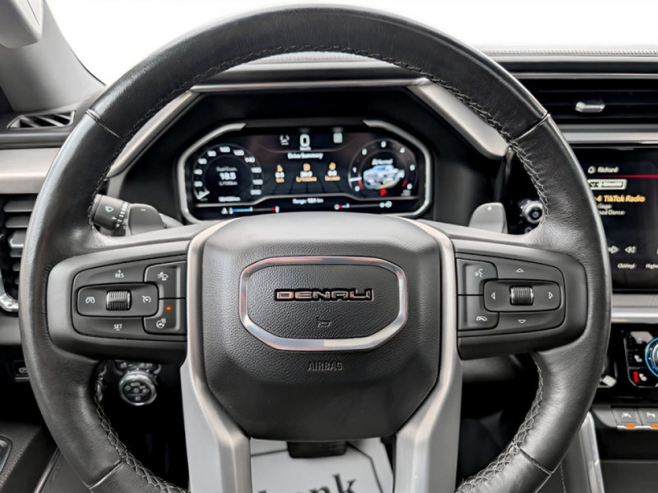 Our Sierra 1500's trim level is Denali Ultimate. This unmistakable GMC Sierra 1500 Denali Ultimate comes fully loaded with luxurious full grain leather seats and authentic open-pore wood trim, a signature Denali Vader chrome grille and exclusive aluminum wheels, plus a massive 13.4 inch touchscreen display that is paired with wireless Apple CarPlay and Android Auto, a premium 12-speaker Bose audio system, SiriusXM, and a 4G LTE hotspot. Additionally, this stunning pickup truck also features heated and cooled front seats and heated second row seats, a spray-in bedliner, wireless device charging, IntelliBeam LED headlights, remote engine start, forward collision warning and lane keep assist, a trailer-tow package with hitch guidance, LED cargo area lighting, ultrasonic parking sensors, an HD surround vision camera, heads up display, trailer blind spot detection plus so much more!
