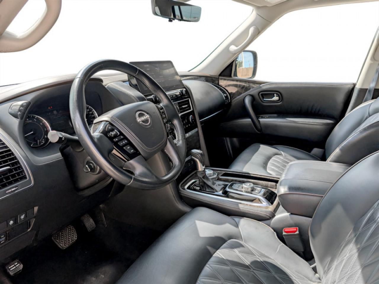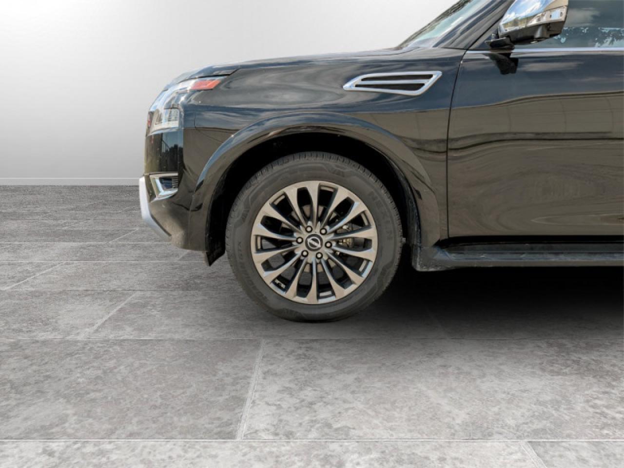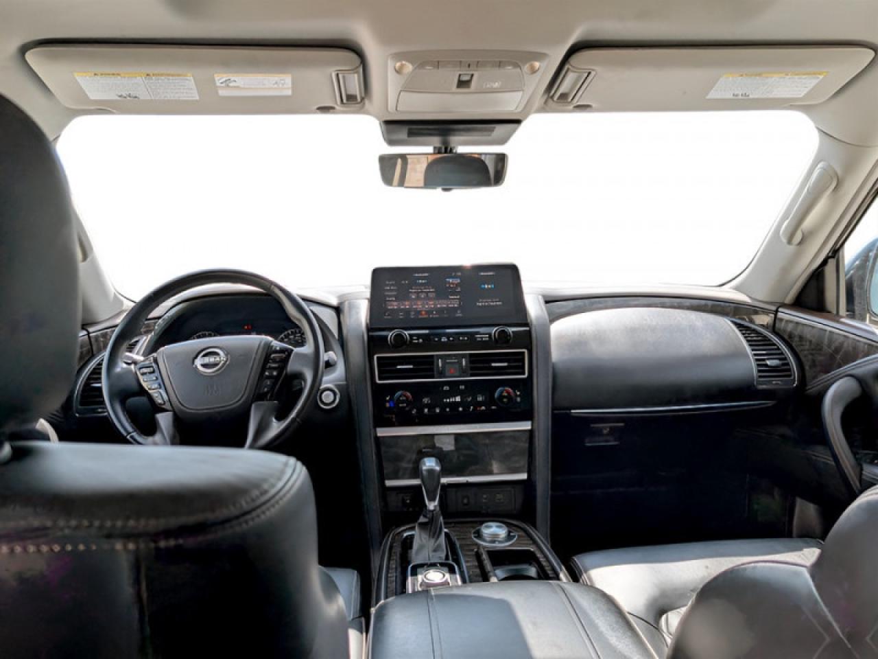 Our Armada's trim level is Platinum. This Armada Platinum provides your family with even more comfort with added heated and cooled quilted leather trimmed seats, expanded leather throughout the interior, a digital media entertainment system with 2 wireless headphones, and rain sensing wipers. Whether in the city or on the highway, stay connected with NissanConnect with touchscreen, navigation, and voice activation, Bose Premium Audio System, touchscreen, wireless Apple CarPlay, Android Auto, wi-fi, and wireless device charging. Other great features include a heated leather steering wheel, driver memory settings, a sunroof, collision mitigation, blind spot intervention, lane keep assist, proximity key, remote cargo access, a skid plate, and perimeter and approach lights.