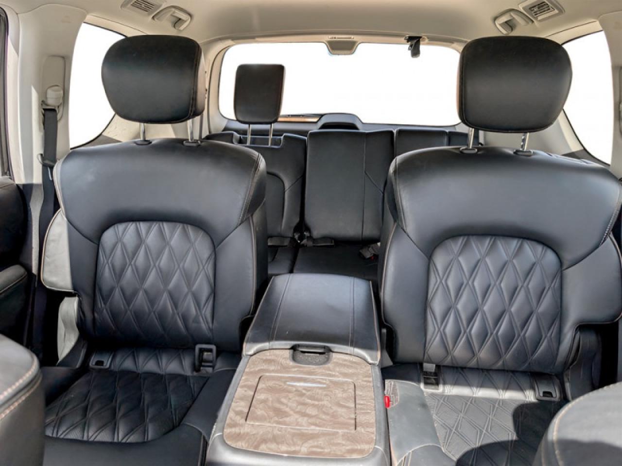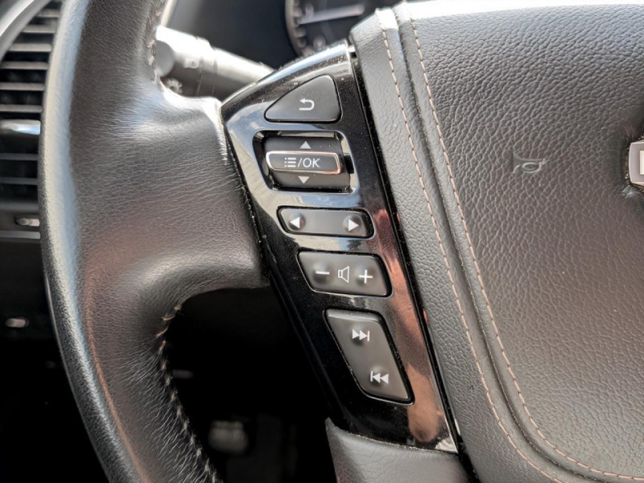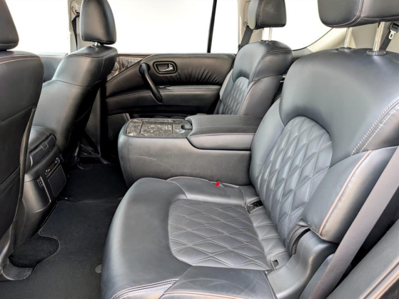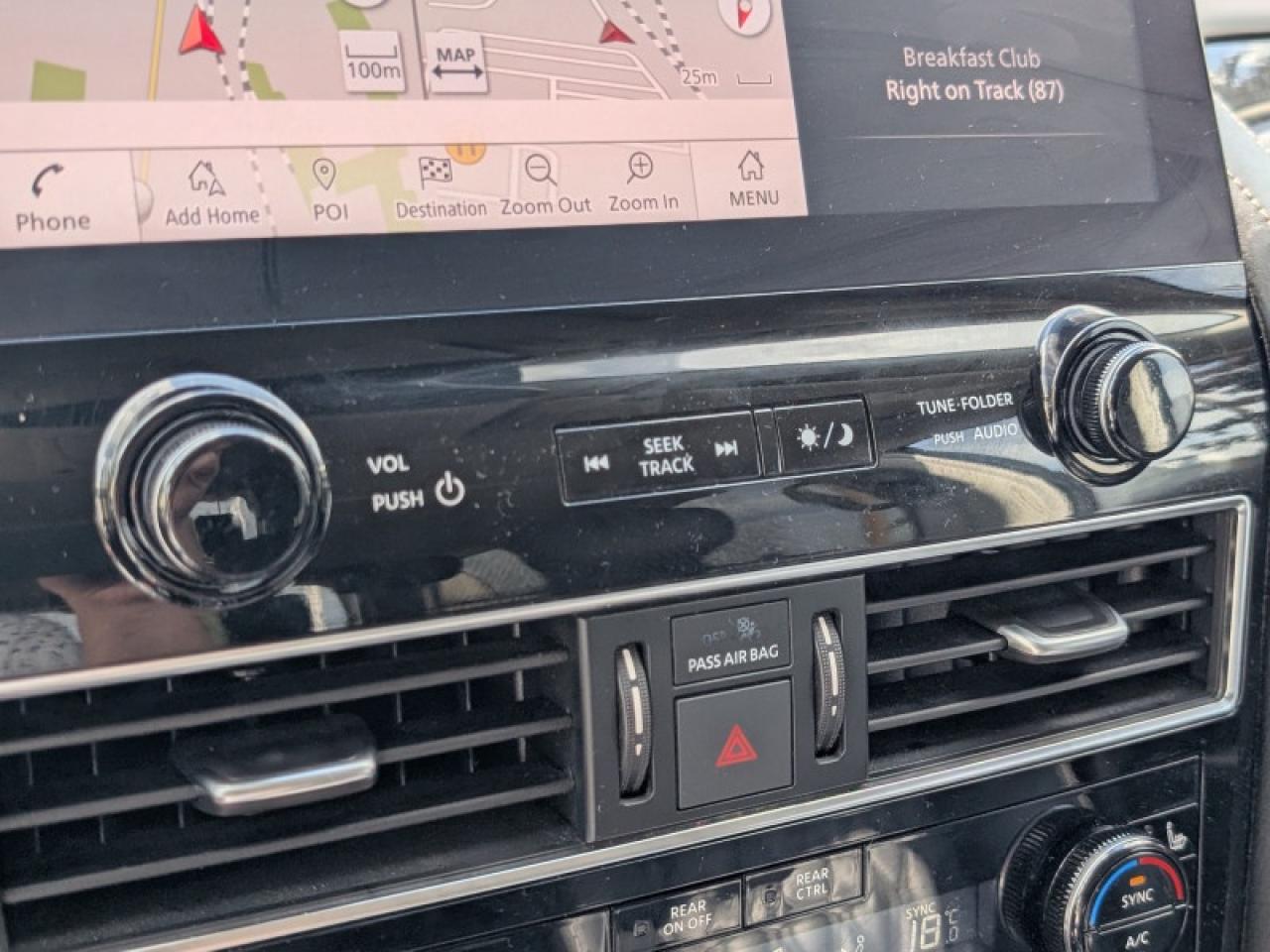Our Armada's trim level is Platinum. This Armada Platinum provides your family with even more comfort with added heated and cooled quilted leather trimmed seats, expanded leather throughout the interior, a digital media entertainment system with 2 wireless headphones, and rain sensing wipers. Whether in the city or on the highway, stay connected with NissanConnect with touchscreen, navigation, and voice activation, Bose Premium Audio System, touchscreen, wireless Apple CarPlay, Android Auto, wi-fi, and wireless device charging. Other great features include a heated leather steering wheel, driver memory settings, a sunroof, collision mitigation, blind spot intervention, lane keep assist, proximity key, remote cargo access, a skid plate, and perimeter and approach lights.