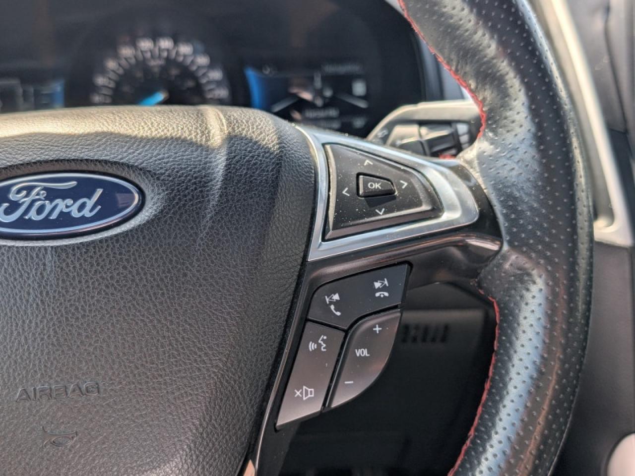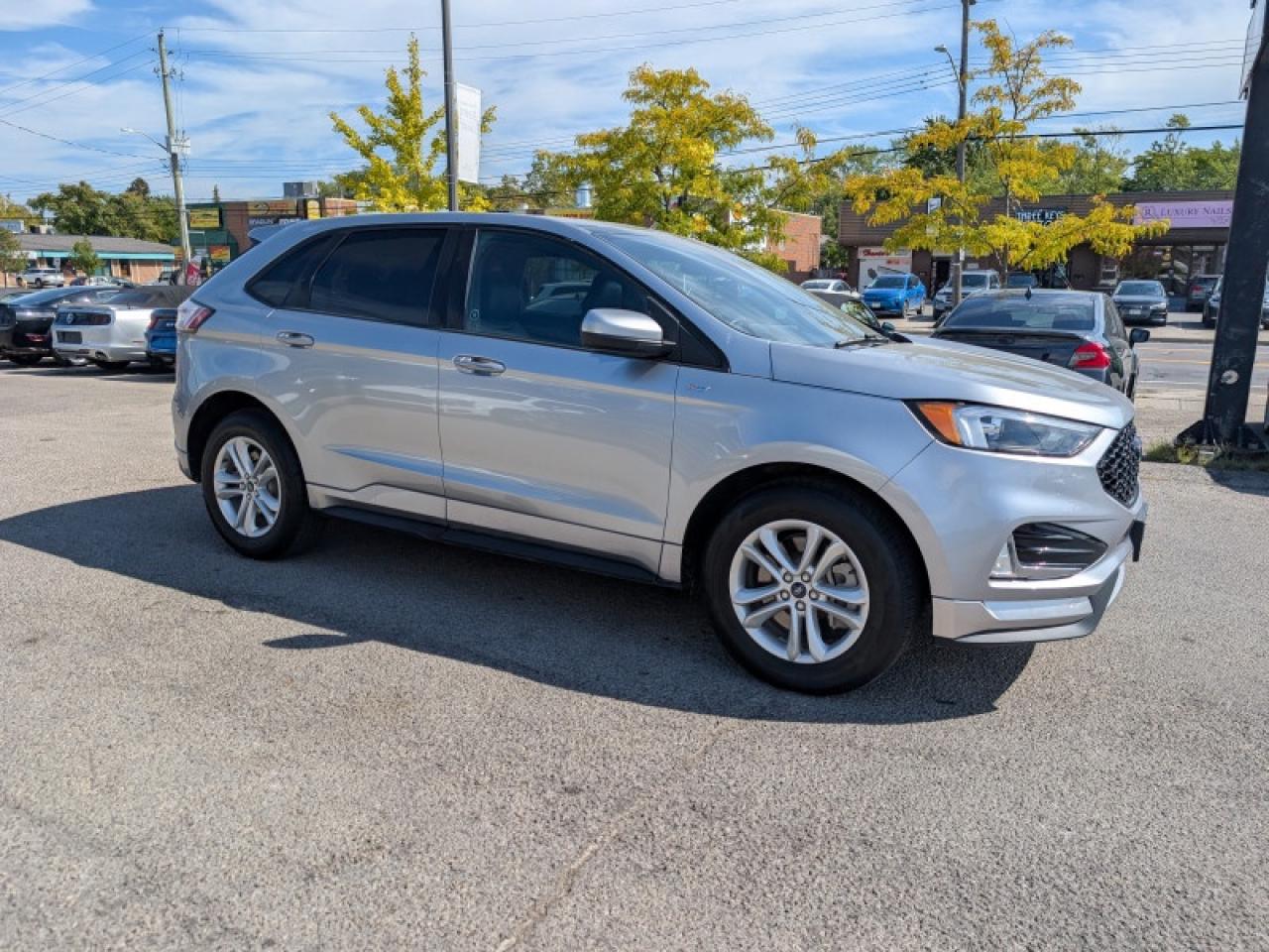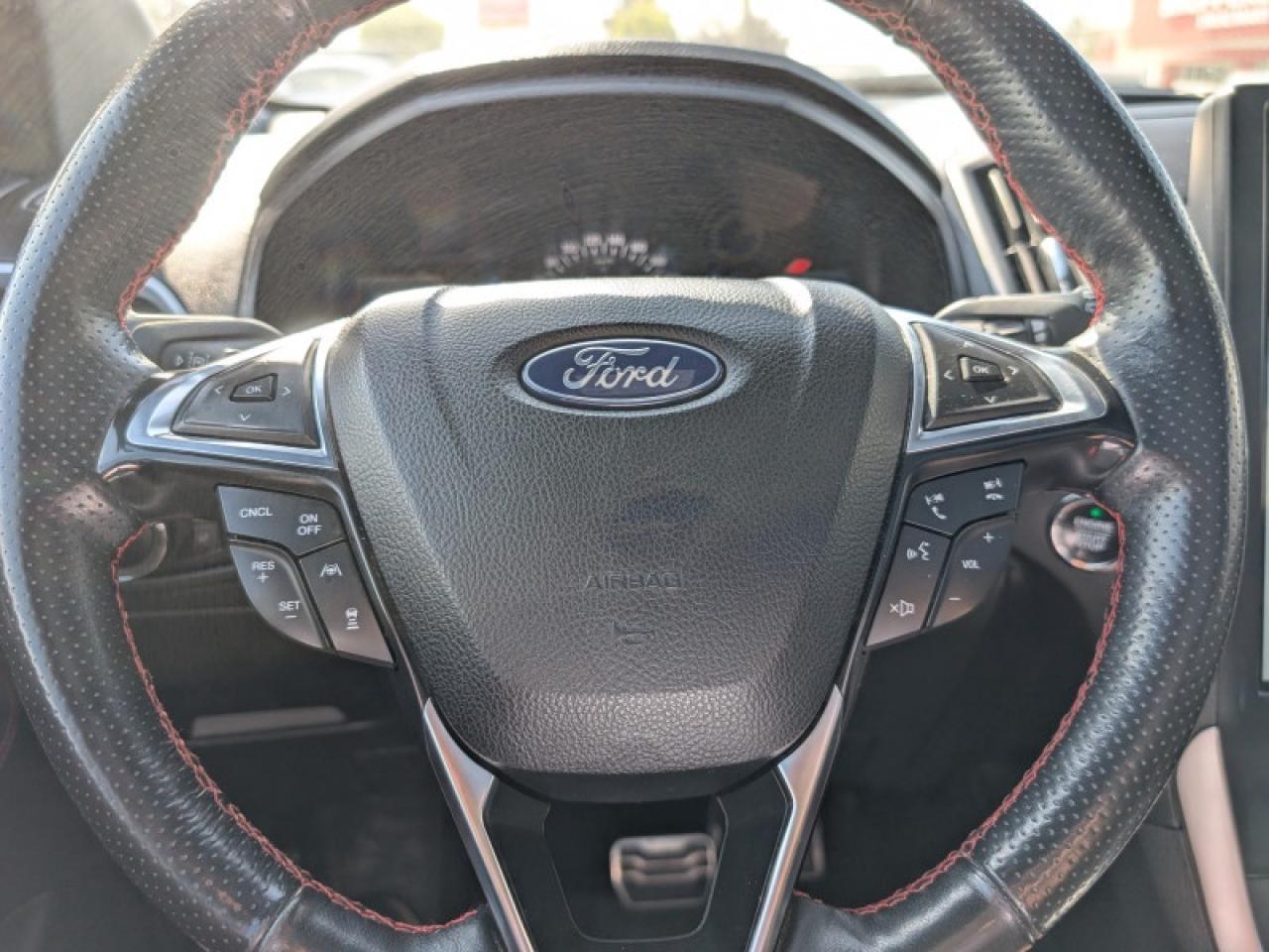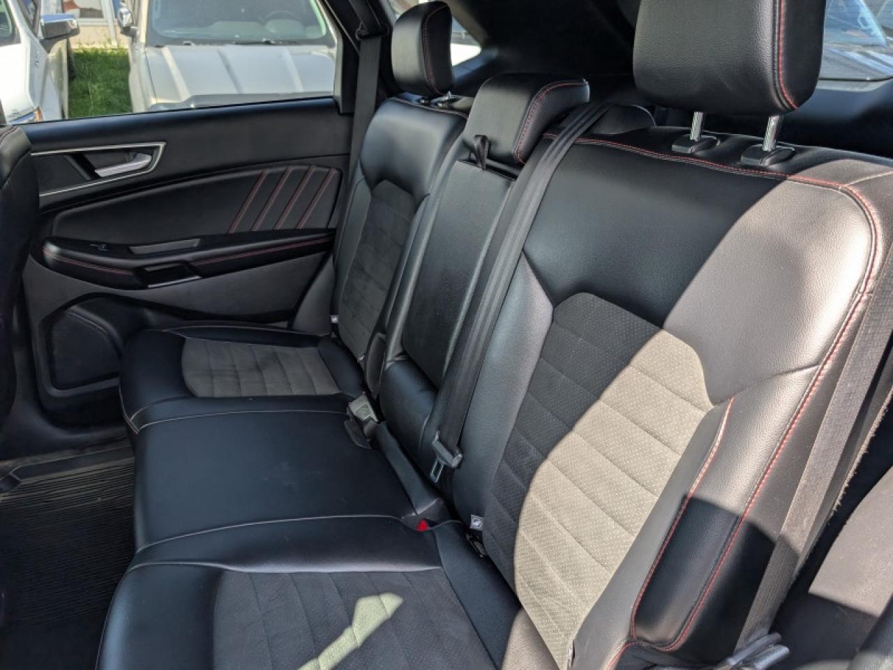 Our Edge's trim level is ST Line. Taking things to the edge with this ST Line trim, featuring unique gloss-black wheels, a blacked-out grille with trim-specific exterior styling, aggressive exhaust tips, front fog lamps, a numeric keypad for extra security, and supportive ActiveX heated front bucket seats, with power-adjustment and lumbar support. This trim also features a power liftgate for rear cargo access, a key fob with remote engine start and rear parking sensors, a 12-inch capacitive infotainment screen bundled with wireless Apple CarPlay and Android Auto, SiriusXM satellite radio, a 6-speaker audio setup, and 4G mobile hotspot internet connectivity. You and yours are assured of optimum road safety, with blind spot detection, rear cross traffic alert, pre-collision assist with automatic emergency braking, lane keeping assist, lane departure warning, forward collision alert, driver monitoring alert, and a rearview camera with an inbuilt washer. Also standard include proximity keyless entry, dual-zone climate control, 60-40 split front folding rear seats, LED headlights with automatic high beams, and even more.