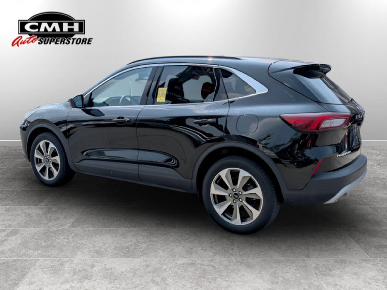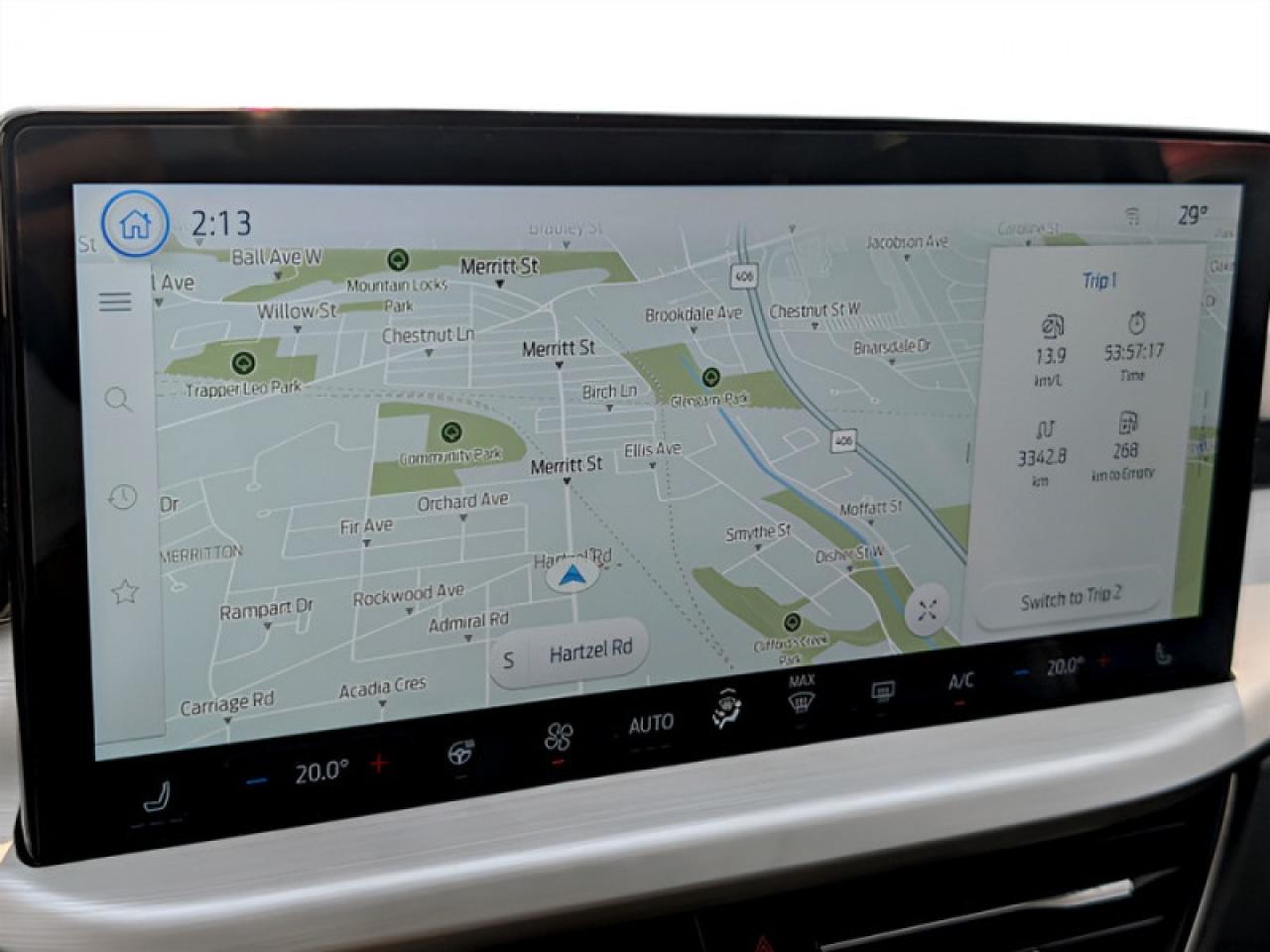 Our Escape's trim level is Platinum. This Escape Platinum is a significant step up, with upgrades such as inbuilt navigation, adaptive cruise control, a surround camera system and evasive steering assist. The amazing standard features continue with heated ActiveX synthetic leather seats, a heated leatherette steering wheel, simulated wood interior trim, remote engine start, and an expansive 13.2-inch infotainment screen with wireless Apple CarPlay and Android Auto, SiriusXM satellite radio, and FordPass Connect 4G mobile hotspot internet access. Safety features include blind spot detection, lane keeping assist with lane departure warning, evasive steering assist, forward and rear collision mitigation, and front and rear parking sensors. Additional features include a power liftgate for rear cargo access, aluminum wheels, roof rack rails, LED headlights with automatic high beams, a keypad for extra security, and so much more.