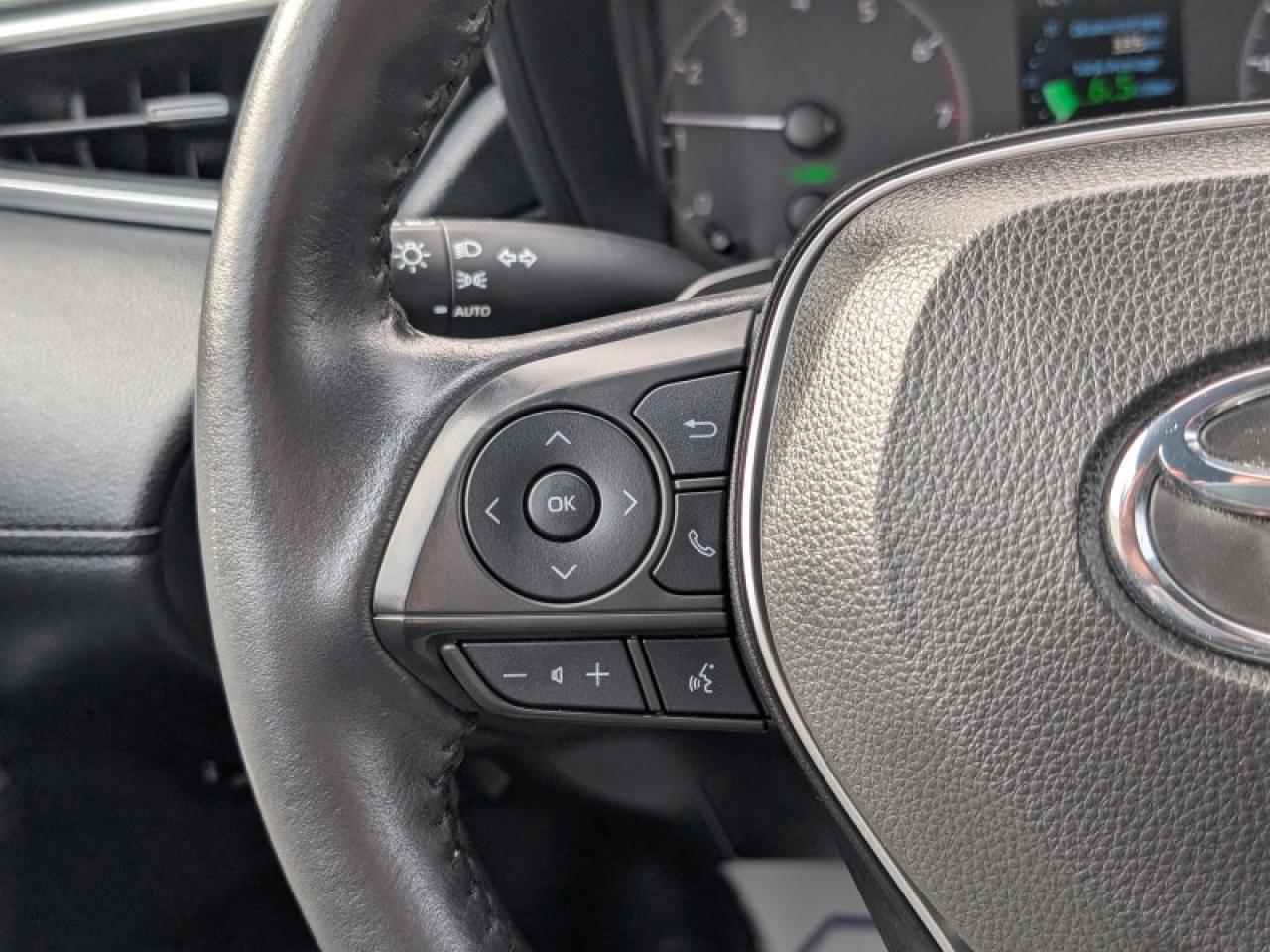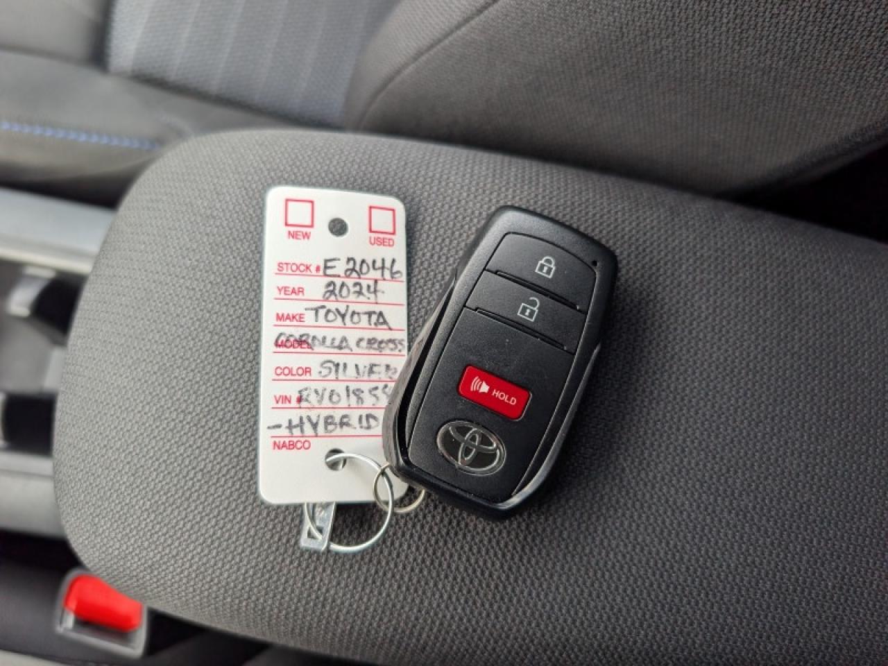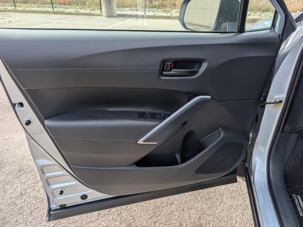 Our Corolla Cross's trim level is Hybrid SE AWD. This Corolla Cross SE Hybrid features a reliable and efficient hybrid powertrain for incredible fuel savings, and upgraded sport-tuned suspension for an exhilarating drive. Standard equipment include blind spot detection, rear cross traffic alert, a heated steering wheel and automatic air conditioning, along with heated front seats, 60/40 folding rear bench seats for more cargo space, adaptive cruise control, and an 8-inch Toyota multimedia infotainment system, with wireless Apple CarPlay and Android Auto. Safety features include pre-collision warning with intersection support, lane keeping assist with lane departure warning, forward collision mitigation, driver monitoring alert, and a rearview camera. Additional features include front and rear cupholders, remote keyless entry, LED headlights with automatic high beams, and even more!