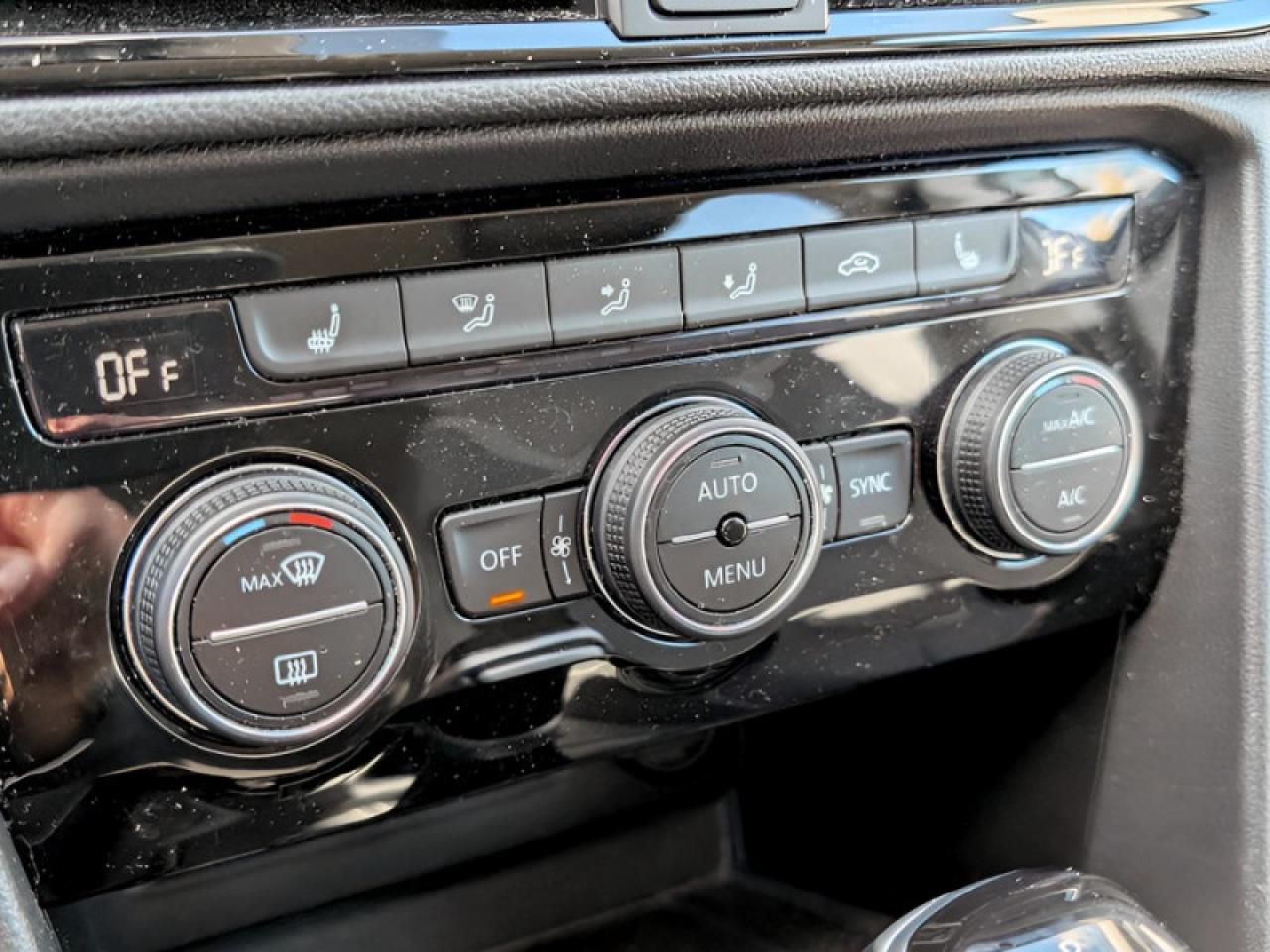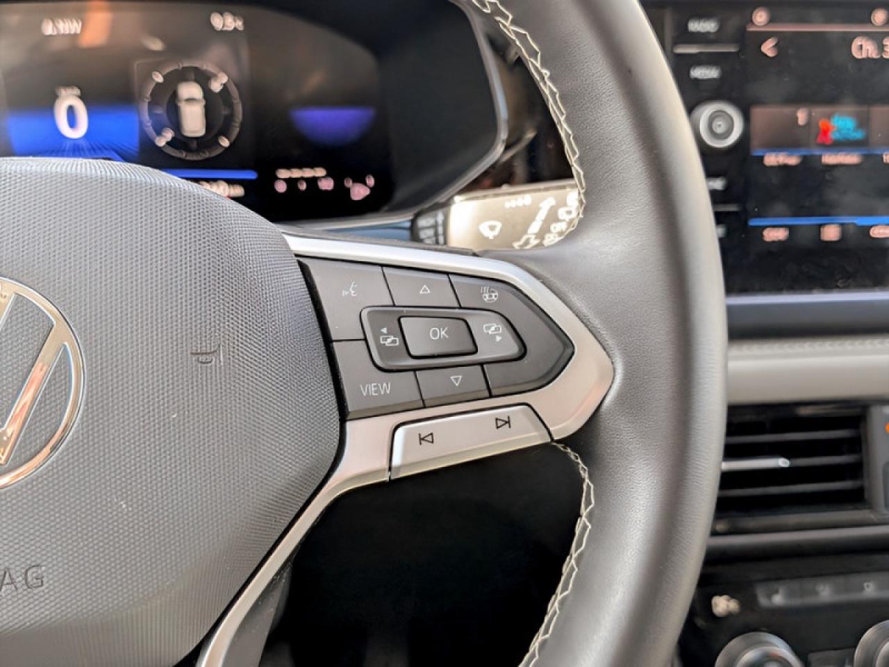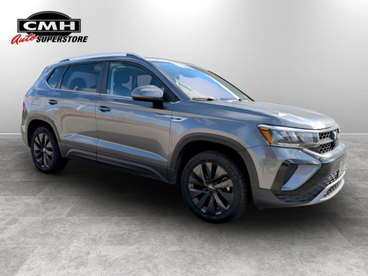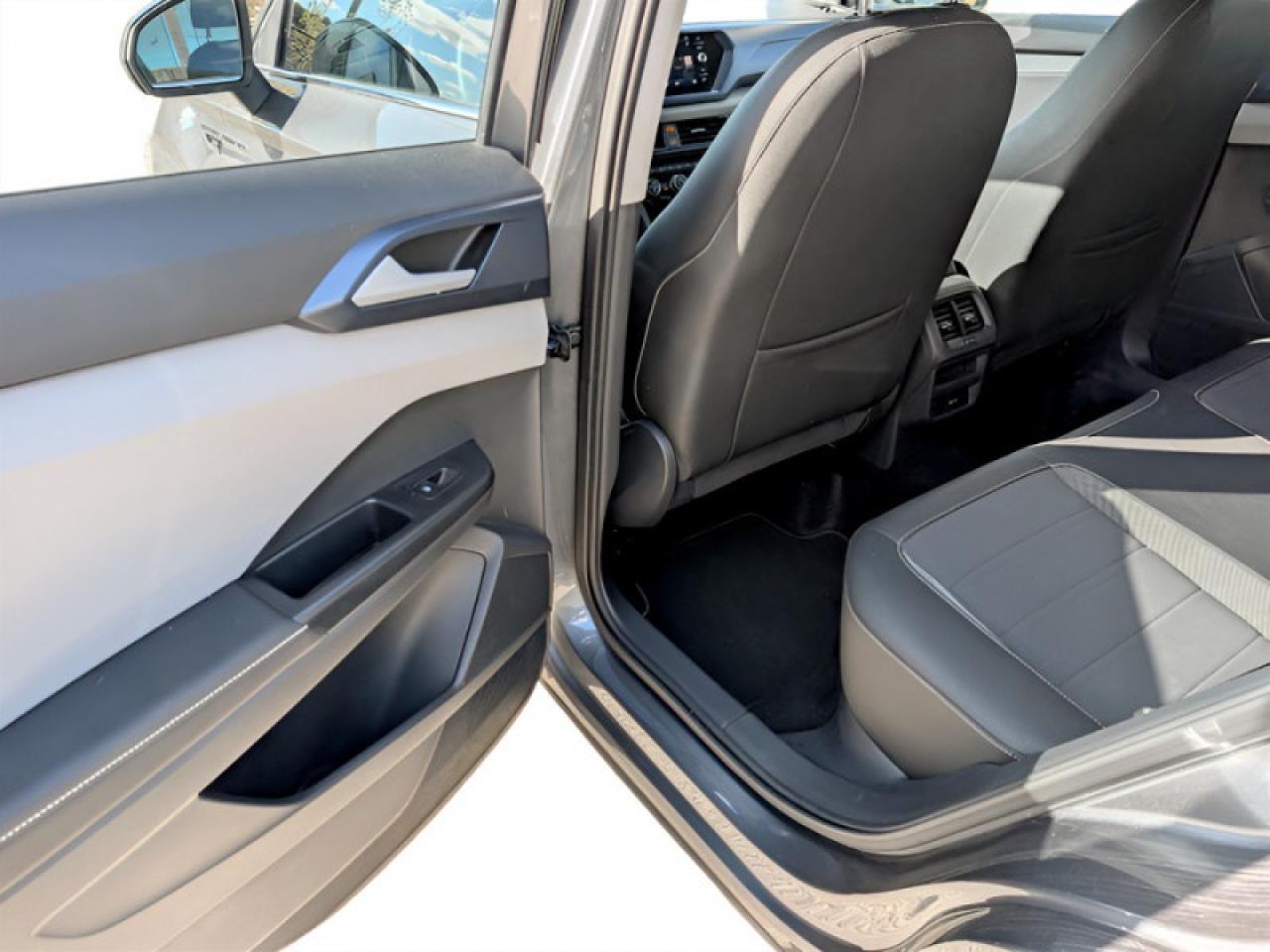 Our Taos's trim level is Comfortline. The Comfortline trim steps things up with adaptive cruise control, dual-zone climate control, remote engine start, lane keep assist with lane departure warning, and an upgraded 8-inch infotainment screen with VW Car-Net services. Additional features include heated front seats, a heated leatherette-wrapped steering wheel, remote keyless entry, and a wireless charging pad. Safety features include blind spot detection, front and rear collision mitigation, autonomous emergency braking, and a back-up camera.