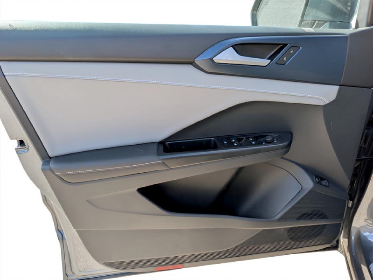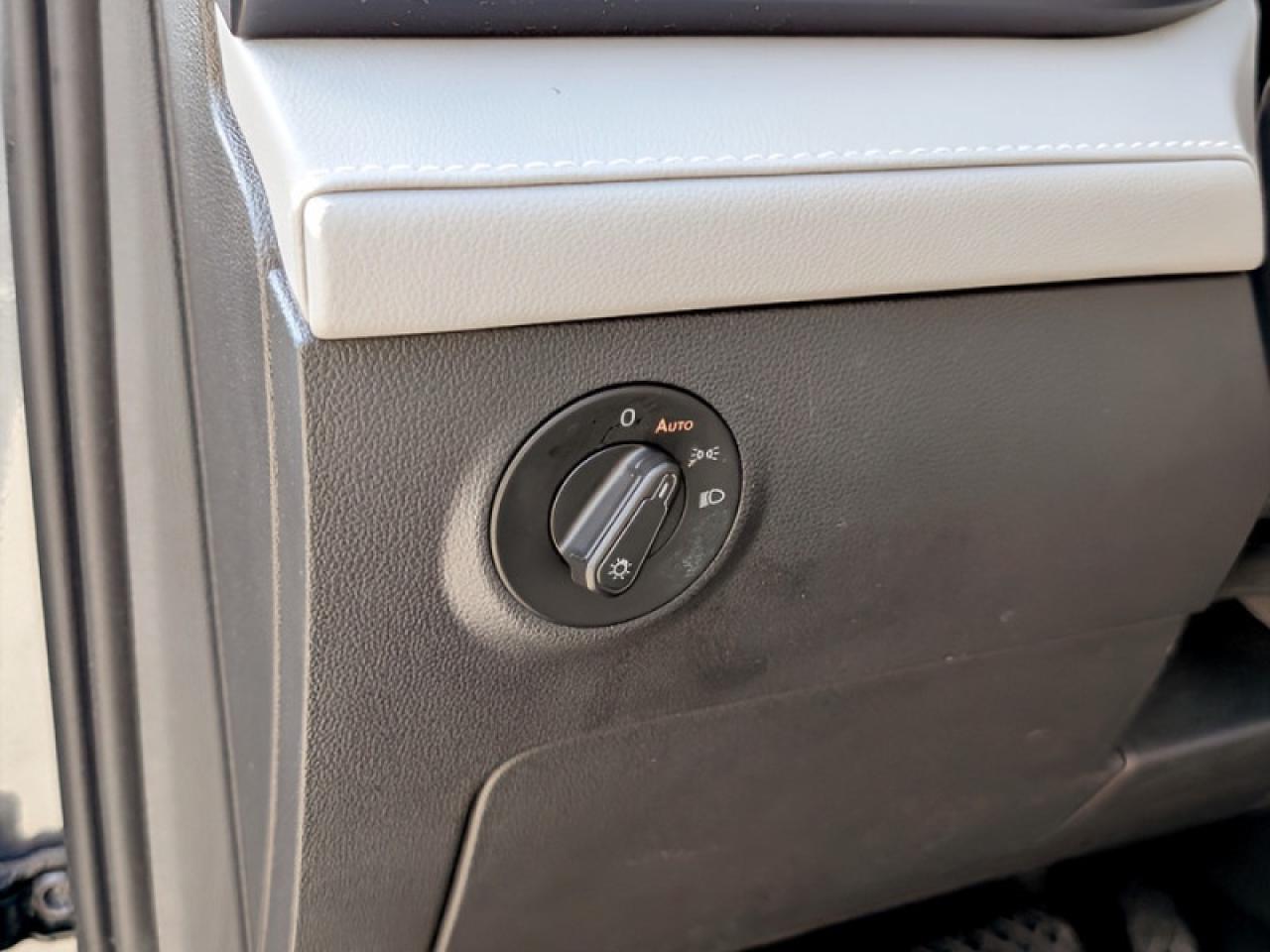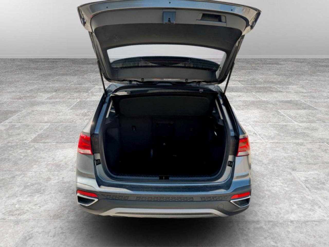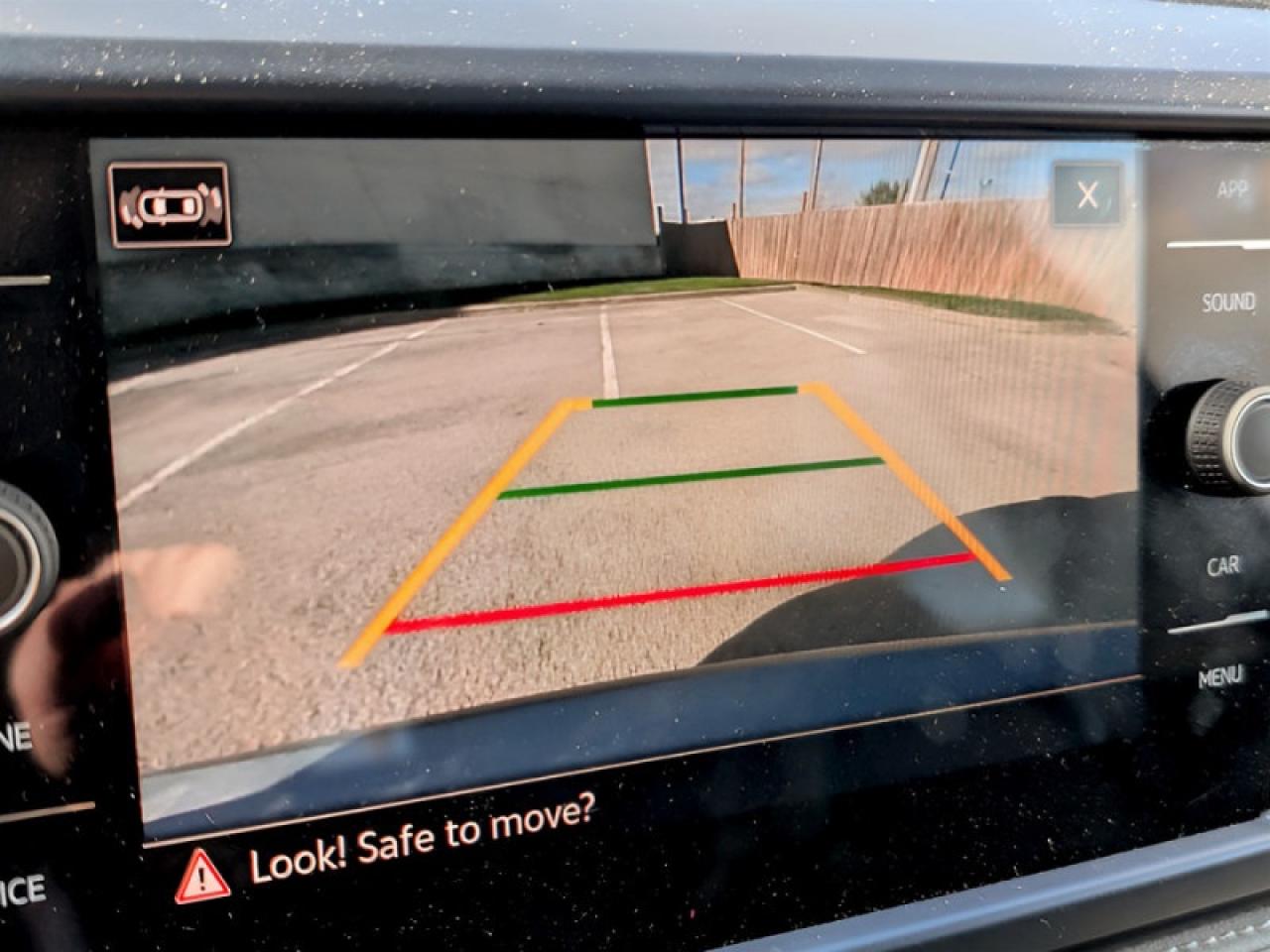 Our Taos's trim level is Comfortline. The Comfortline trim steps things up with adaptive cruise control, dual-zone climate control, remote engine start, lane keep assist with lane departure warning, and an upgraded 8-inch infotainment screen with VW Car-Net services. Additional features include heated front seats, a heated leatherette-wrapped steering wheel, remote keyless entry, and a wireless charging pad. Safety features include blind spot detection, front and rear collision mitigation, autonomous emergency braking, and a back-up camera.