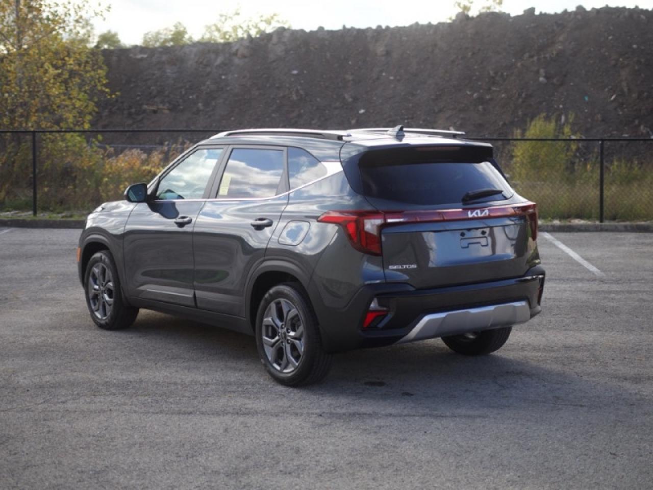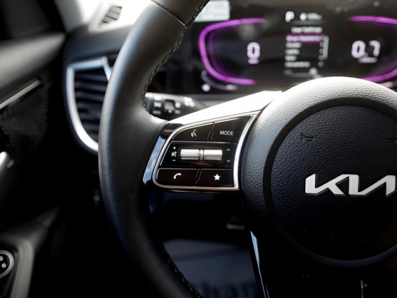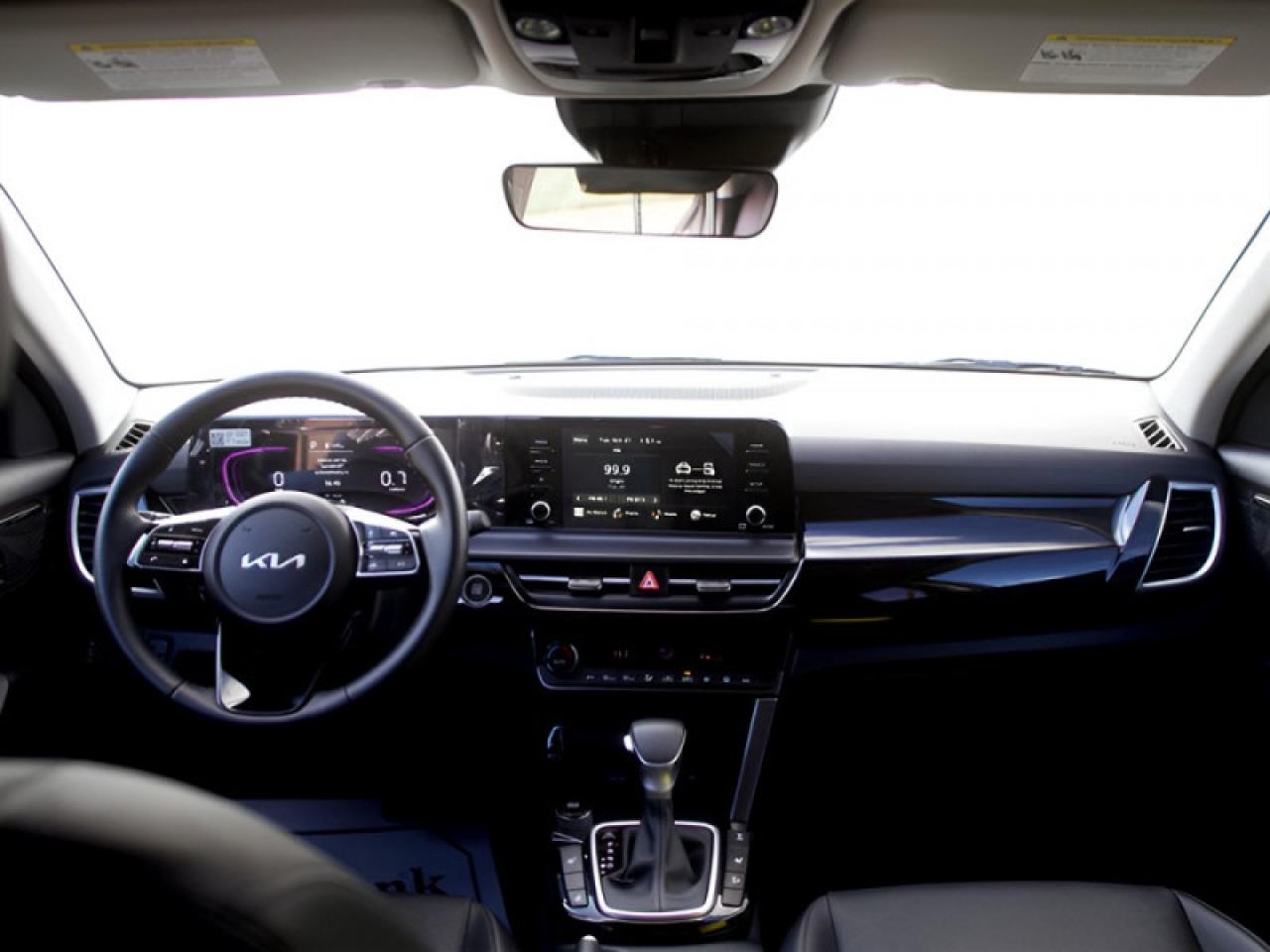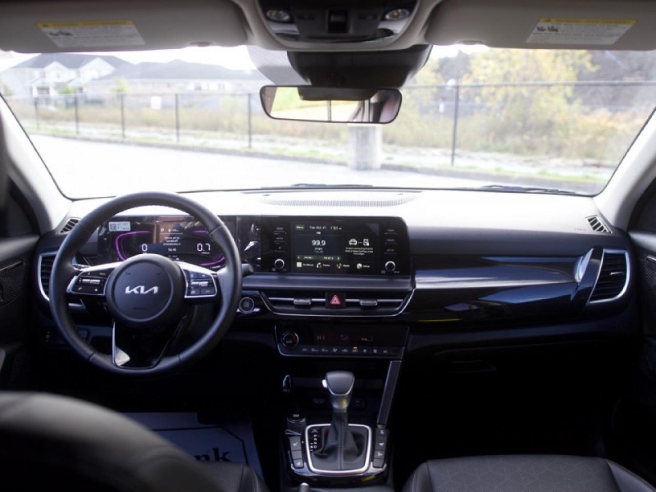 Our Seltos's trim level is EX. This Seltos EX steps things up with LED headlights, a heated steering wheel, and Sofino leather upholstery. Additional features include proximity keyless entry with push button start, remote start, climate control, heated front seats, cruise control, alloy wheels, and an 8-inch infotainment screen with Apple CarPlay and Android Auto. Safety features include blind spot detection, lane keeping assist with lane departure warning, front and rear collision mitigation, and a rearview camera.