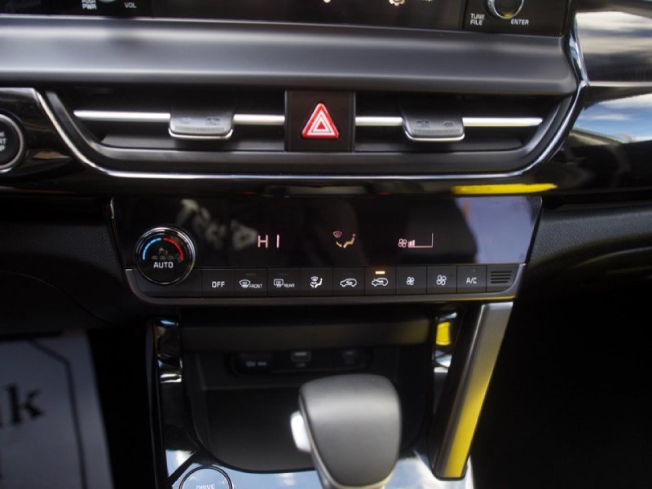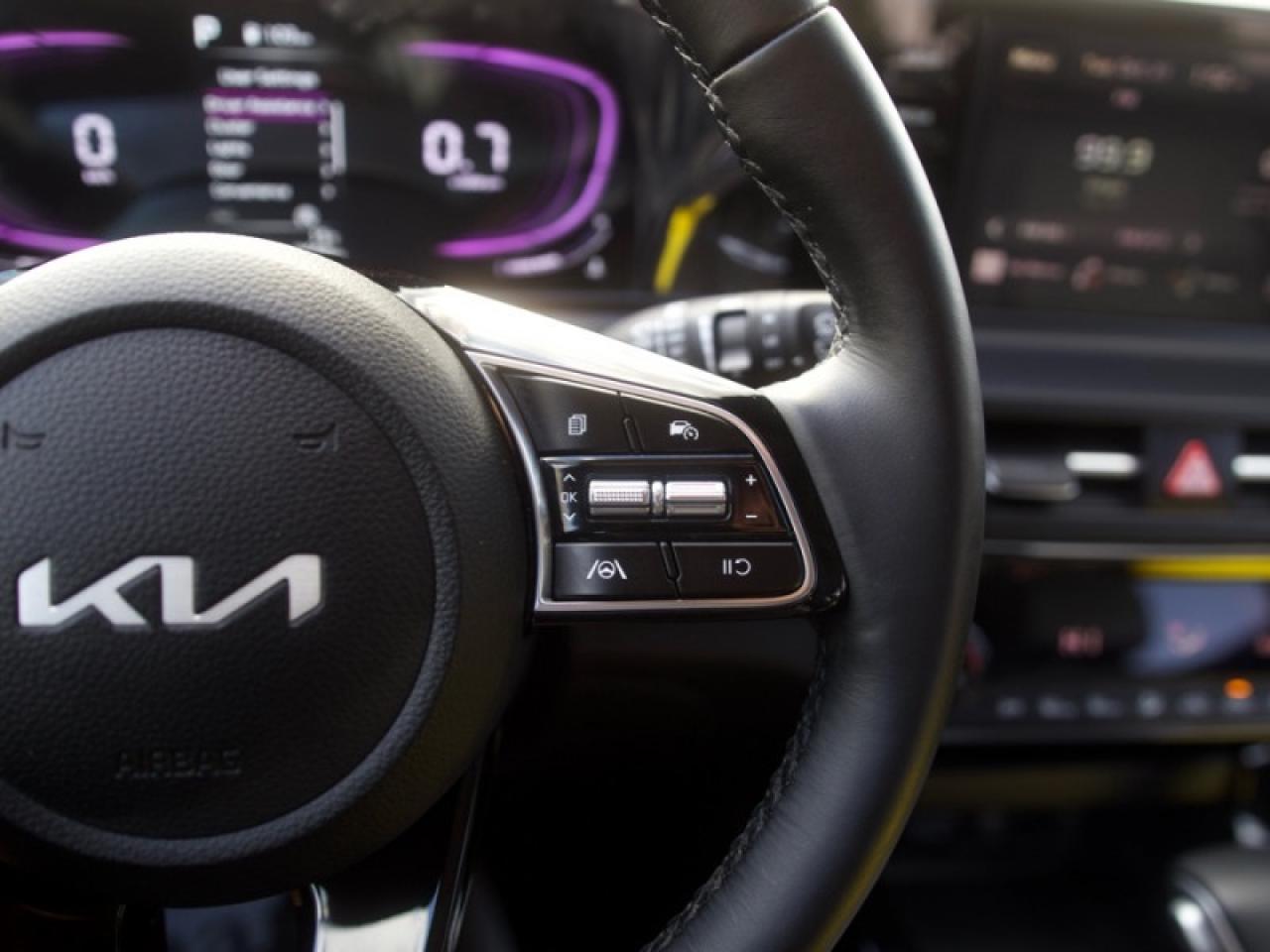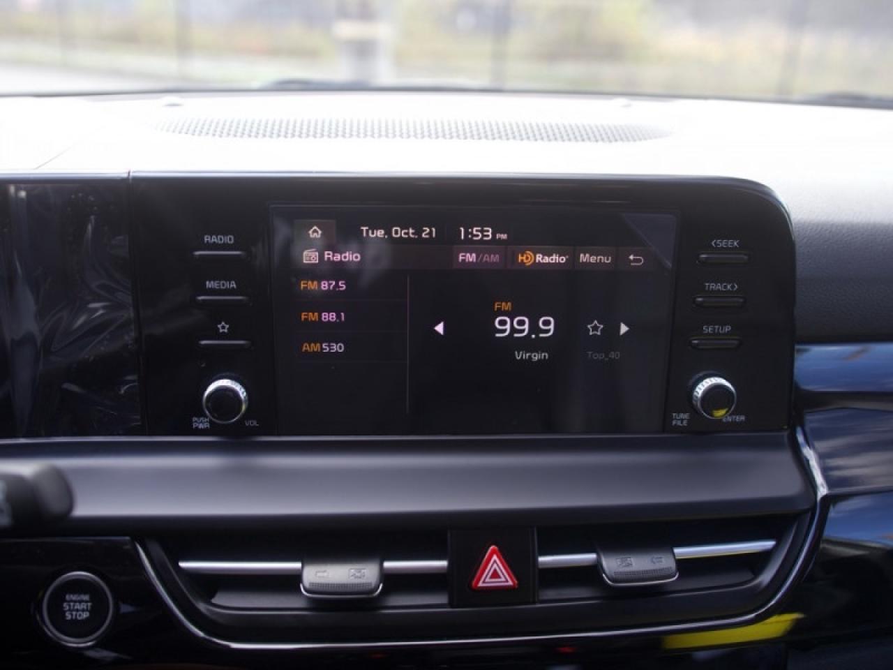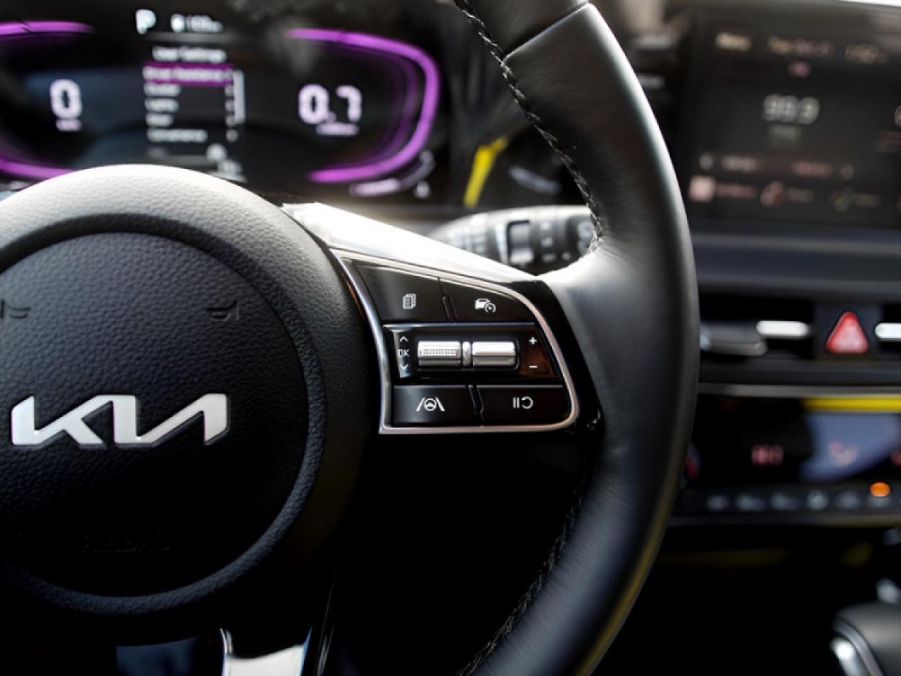 Our Seltos's trim level is EX. This Seltos EX steps things up with LED headlights, a heated steering wheel, and Sofino leather upholstery. Additional features include proximity keyless entry with push button start, remote start, climate control, heated front seats, cruise control, alloy wheels, and an 8-inch infotainment screen with Apple CarPlay and Android Auto. Safety features include blind spot detection, lane keeping assist with lane departure warning, front and rear collision mitigation, and a rearview camera.