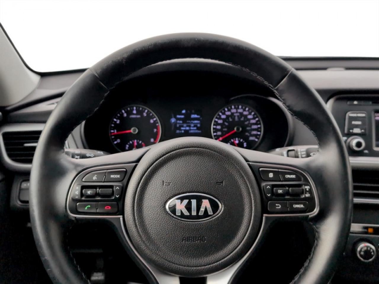 Our Optima's trim level is LX+. This Kia Optima LX is well equipped, comfortable sedan with an excellent value. It comes standard with desirable features like an AM/FM CD player with an aux jack and a USB port, SiriusXM, Bluetooth, a rearview camera, air conditioning, heated front seats, memory driver's seat and mirrors, a heated, leather-wrapped steering wheel, aluminum wheels, suspension, and more.