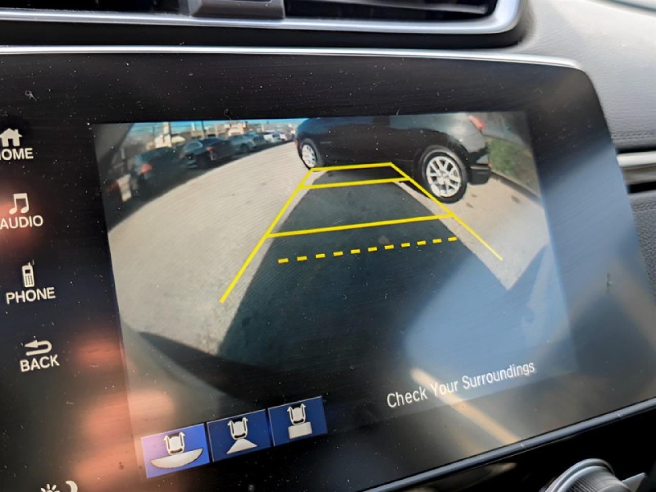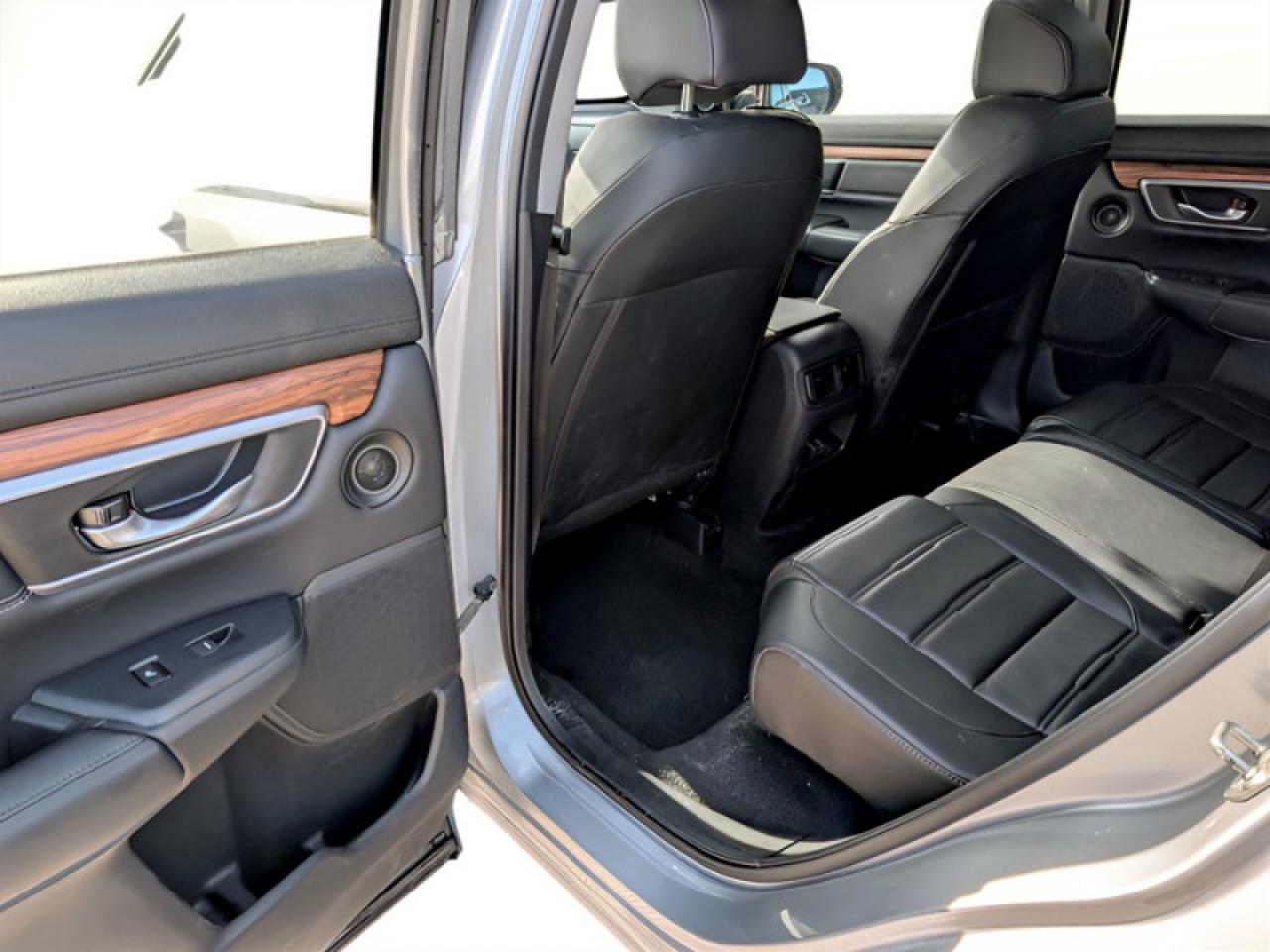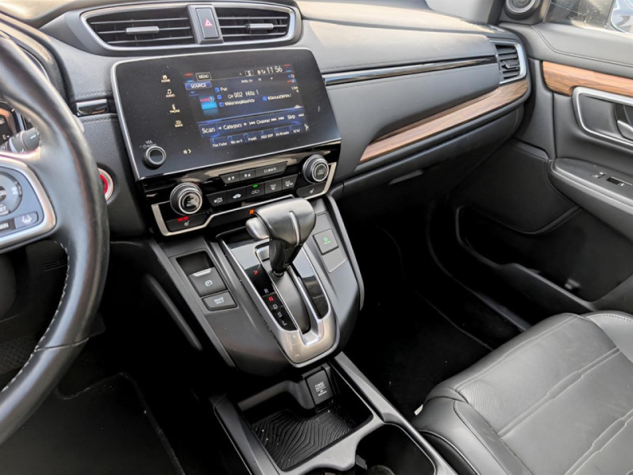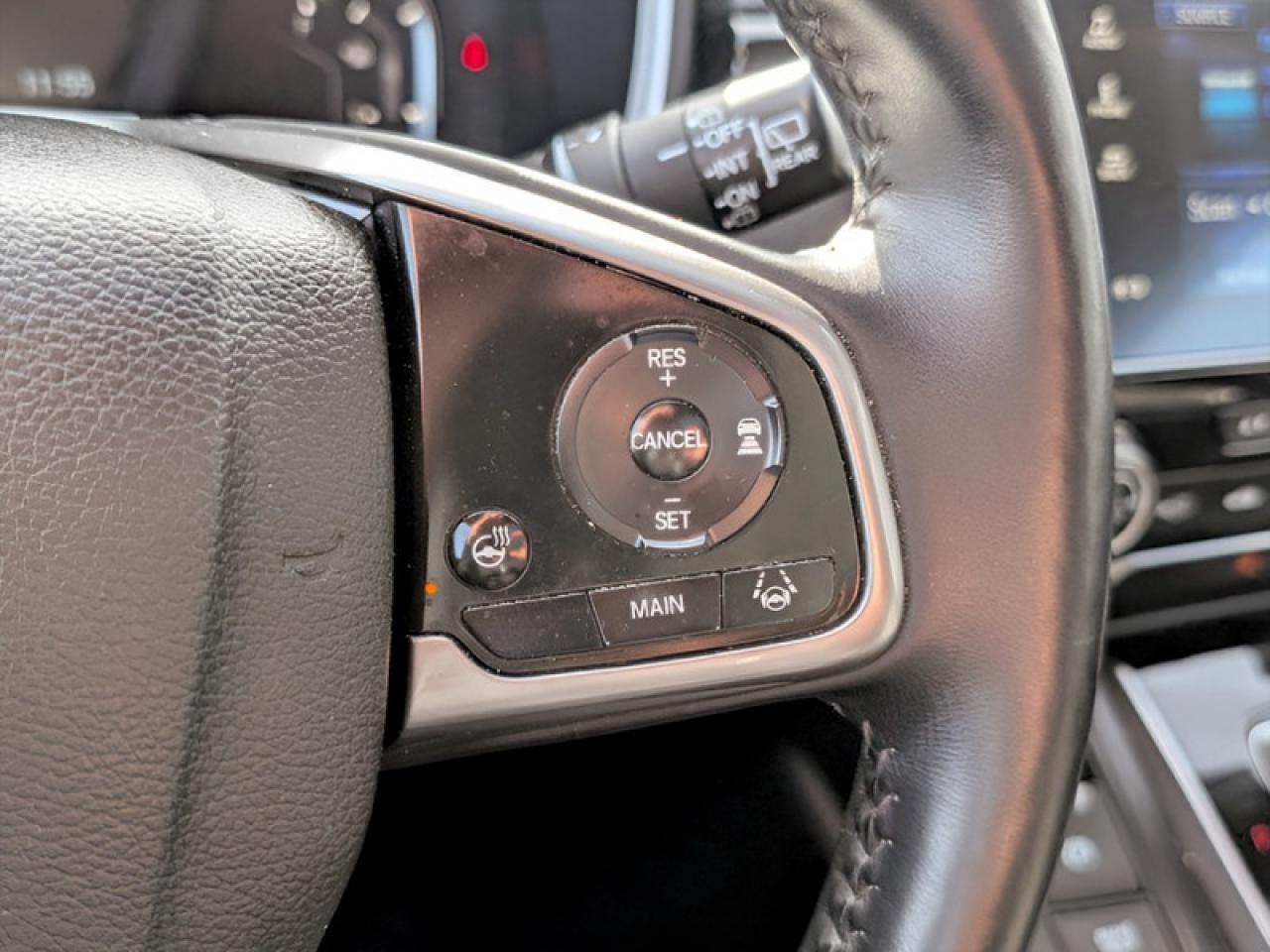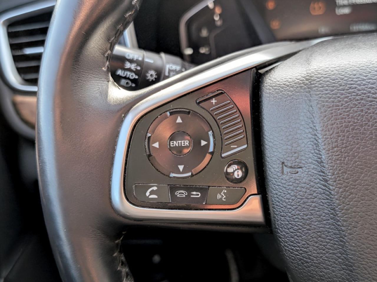 Our CR-V's trim level is EX-L. Upgrade to the EX-L trim and you'll be treated to some luxurious features. It comes with a 7 inch display audio system with Bluetooth, SiriusXM, eight speaker audio, a rearview camera, heated leather seats, a memory driver's seat, a power tailgate, a power moonroof, a heated, leather wrapped steering wheel, LaneWatch blind spot detection, adaptive cruise control, forward collision warning, remote start, and much more!