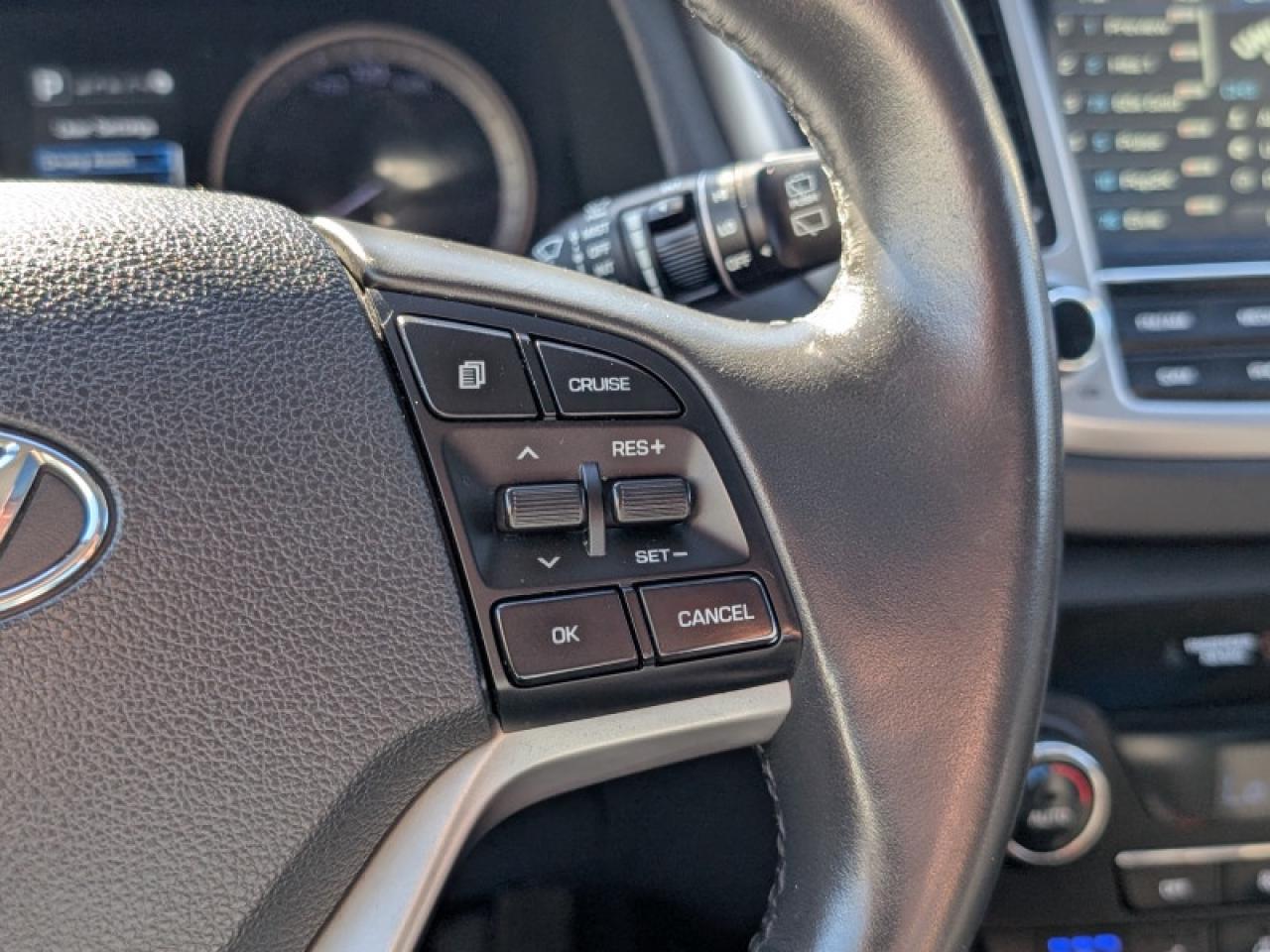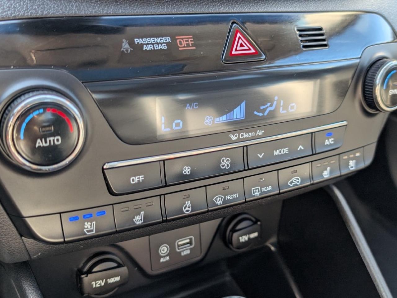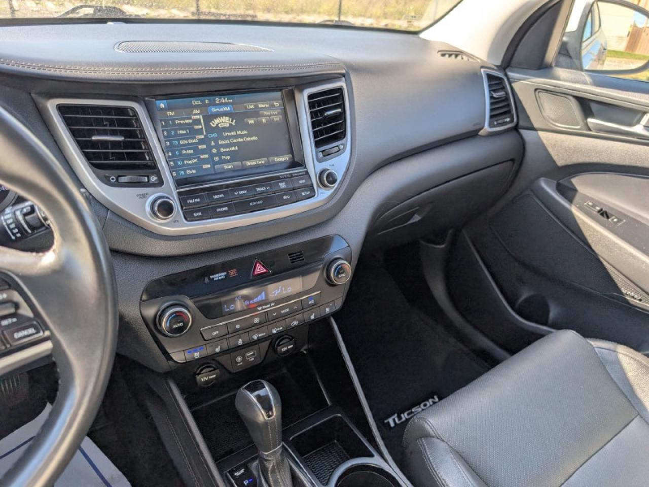 Our Tucson's trim level is Ultimate. Get luxury and versatility at a good value in the Ultimate Package. It comes with leather seats which are heated and cooled in front, heated rear seats, an eight-inch touchscreen navigation system, Bluetooth, SiriusXM, Infinity 8-speaker premium audio, dual-zone automatic climate control, a rear view camera, blind spot detection, lane change assist, a hands-free power tailgate, and more.