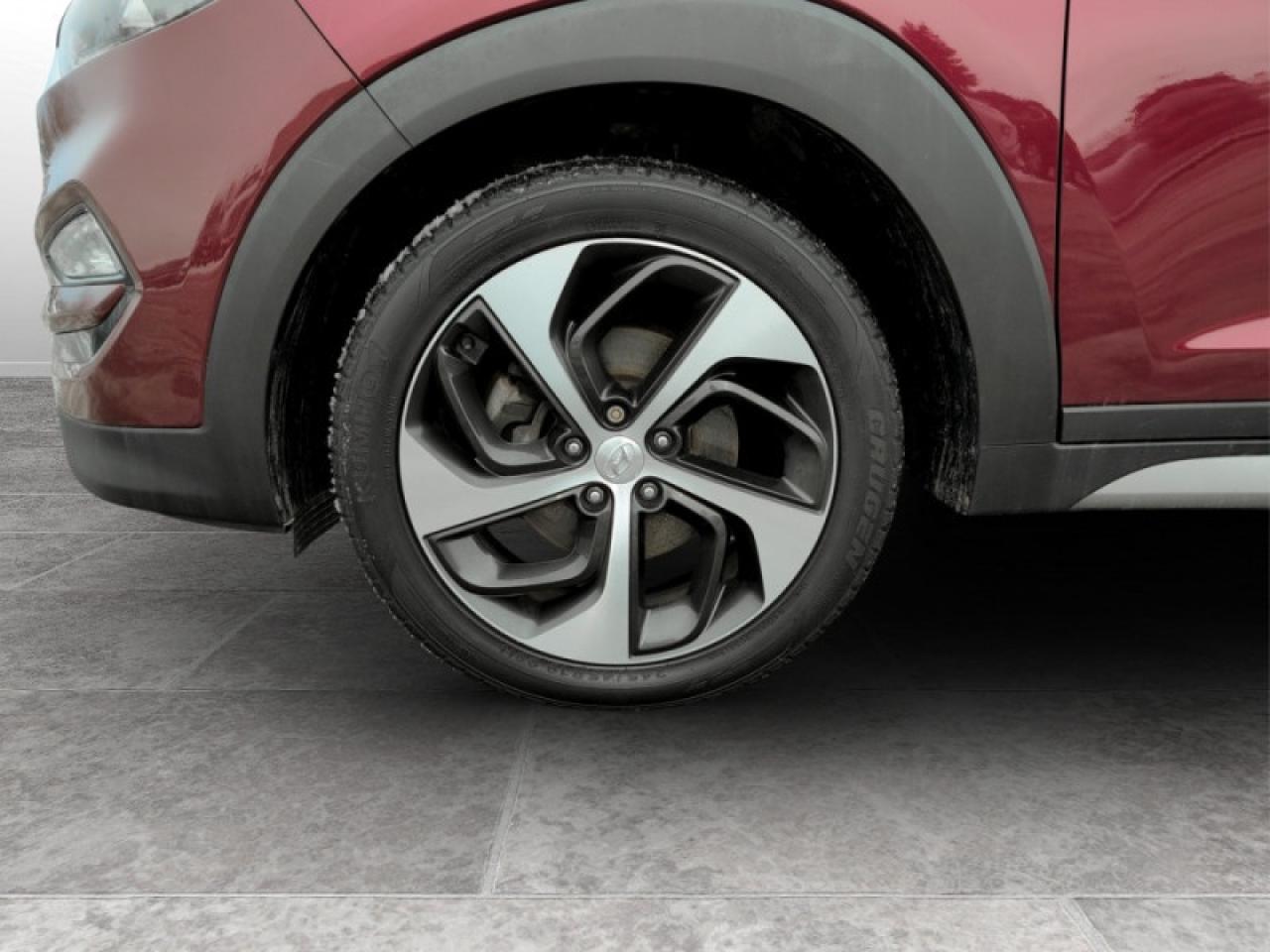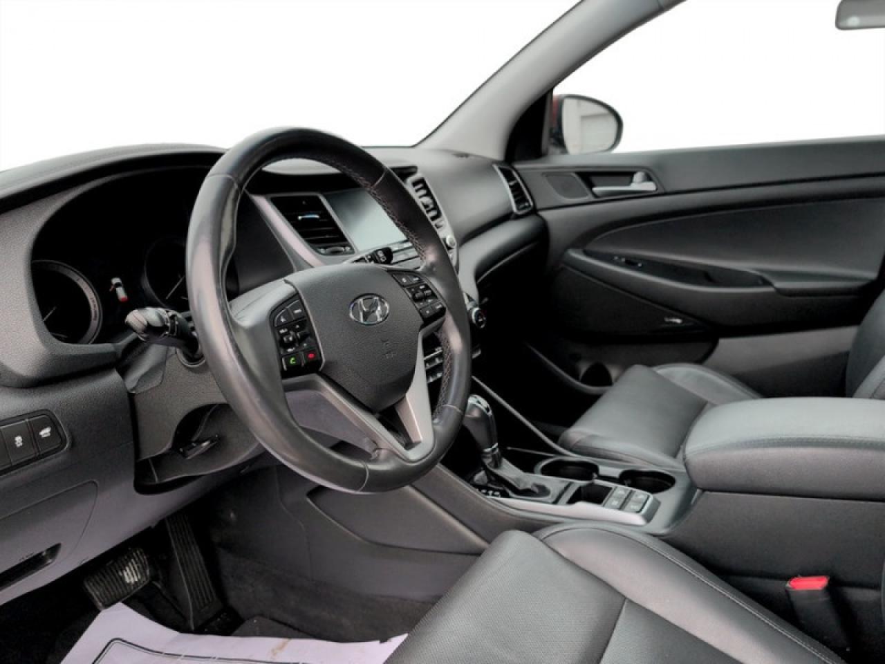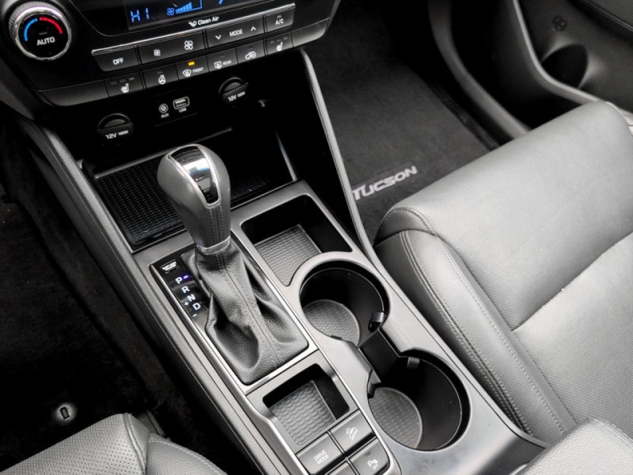 Our Tucson's trim level is Limited. Get luxury and versatility at a good value in this Tucson Limited. It comes with leather seats which are heated in front, an eight-inch touchscreen navigation system, Bluetooth, SiriusXM, Infinity 8-speaker premium audio, dual-zone automatic climate control, a rear view camera, blind spot detection, lane change assist, a hands-free power tailgate, and more.