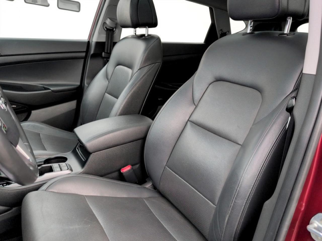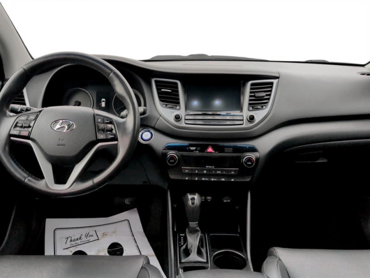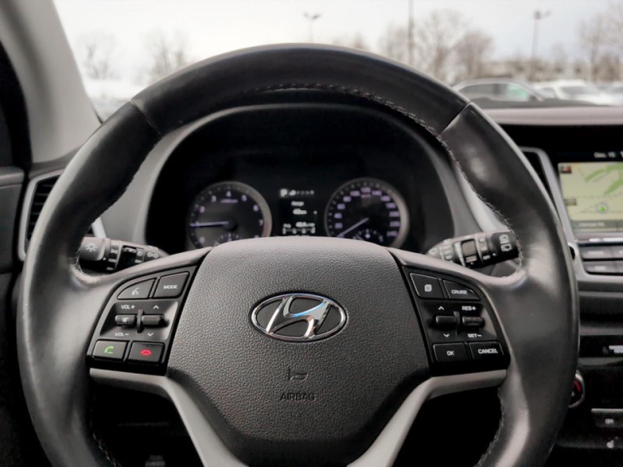 Our Tucson's trim level is Limited. Get luxury and versatility at a good value in this Tucson Limited. It comes with leather seats which are heated in front, an eight-inch touchscreen navigation system, Bluetooth, SiriusXM, Infinity 8-speaker premium audio, dual-zone automatic climate control, a rear view camera, blind spot detection, lane change assist, a hands-free power tailgate, and more.