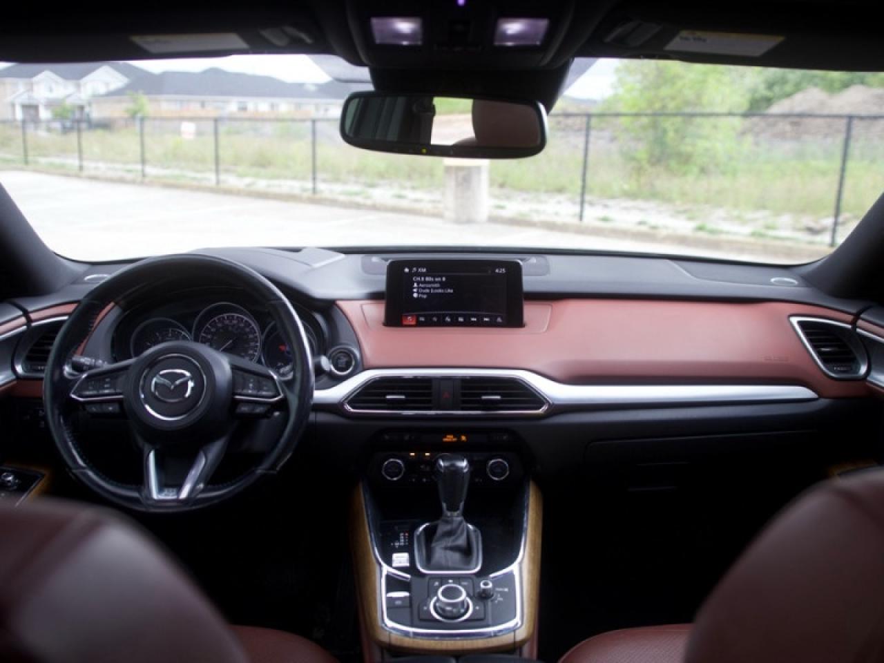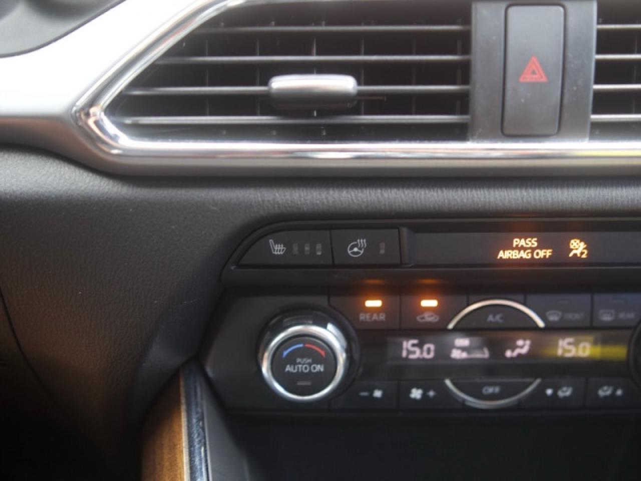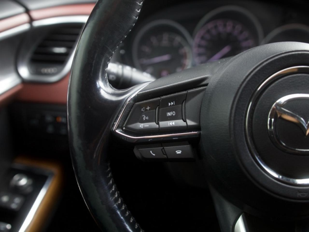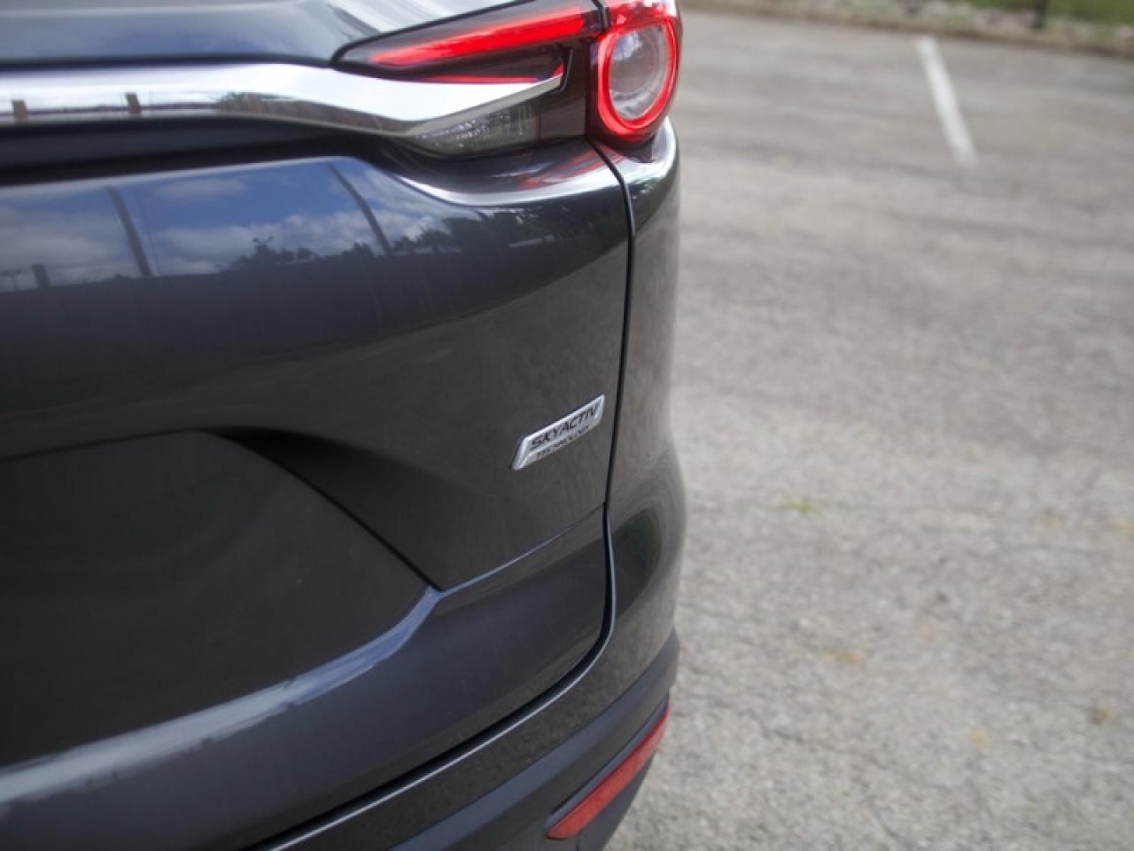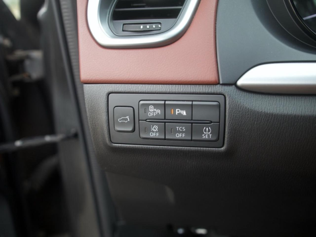 Our CX-9's trim level is Signature. This Signature CX-9 adds a lot of chrome and style. Standard features include a seven-inch touchscreen with MAZDA CONNECT is standard along with Bluetooth connectivity, steering-wheel audio control, automatic climate control, a tilt and telescoping steering wheel, heated seats, aluminum wheels, heated power side mirrors with turn signals, rain sensing wipers, automatic dual zone climate control, blind spot monitoring, and smart city brake support. This trim takes it up a notch with a sunroof, a power liftgate, a metal look and chrome grille, fog lamps, heated leather steering wheel, premium Nappa leather seats with stitching detail, aluminum and wood interior trim, chrome cladding, fully automatic and directionally adaptive headlamps, a Bose premium audio system, navigation, SiriusXM, hands free proximity key, head-up display, adaptive cruise with stop and go, and lane keep assist.