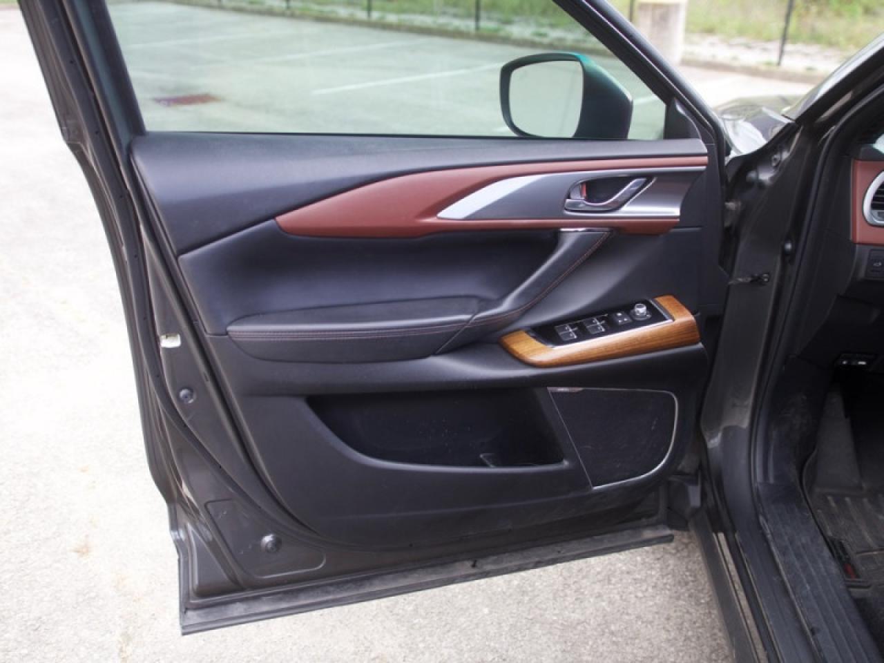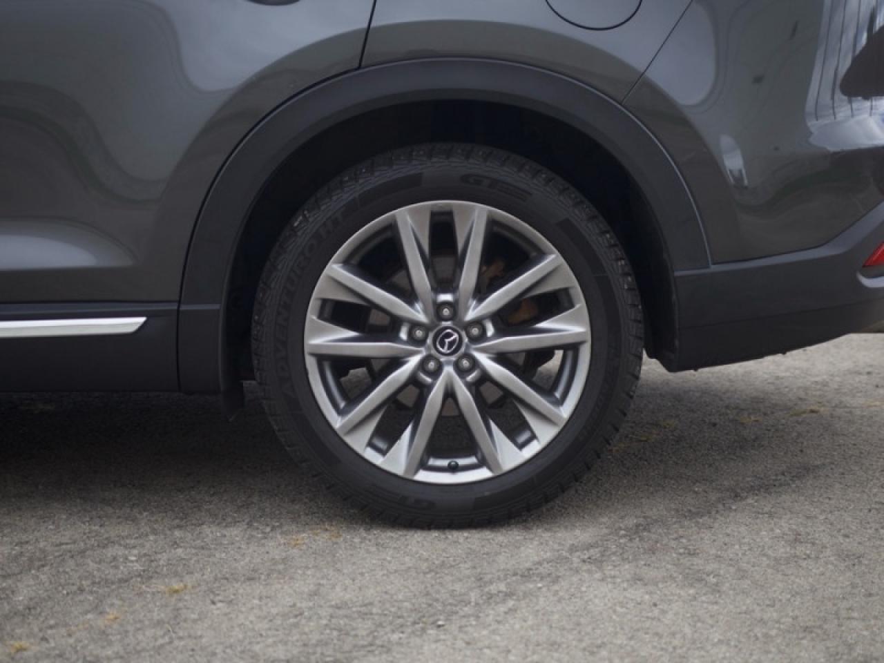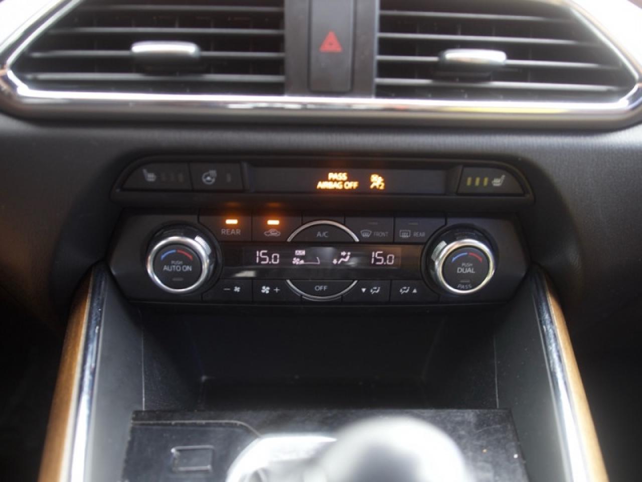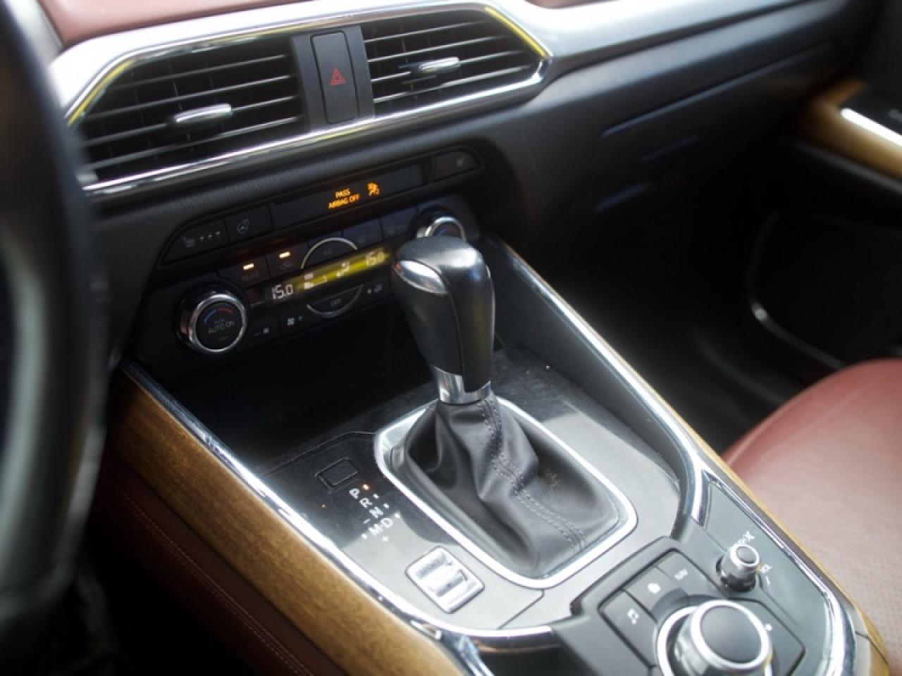 Our CX-9's trim level is Signature. This Signature CX-9 adds a lot of chrome and style. Standard features include a seven-inch touchscreen with MAZDA CONNECT is standard along with Bluetooth connectivity, steering-wheel audio control, automatic climate control, a tilt and telescoping steering wheel, heated seats, aluminum wheels, heated power side mirrors with turn signals, rain sensing wipers, automatic dual zone climate control, blind spot monitoring, and smart city brake support. This trim takes it up a notch with a sunroof, a power liftgate, a metal look and chrome grille, fog lamps, heated leather steering wheel, premium Nappa leather seats with stitching detail, aluminum and wood interior trim, chrome cladding, fully automatic and directionally adaptive headlamps, a Bose premium audio system, navigation, SiriusXM, hands free proximity key, head-up display, adaptive cruise with stop and go, and lane keep assist.