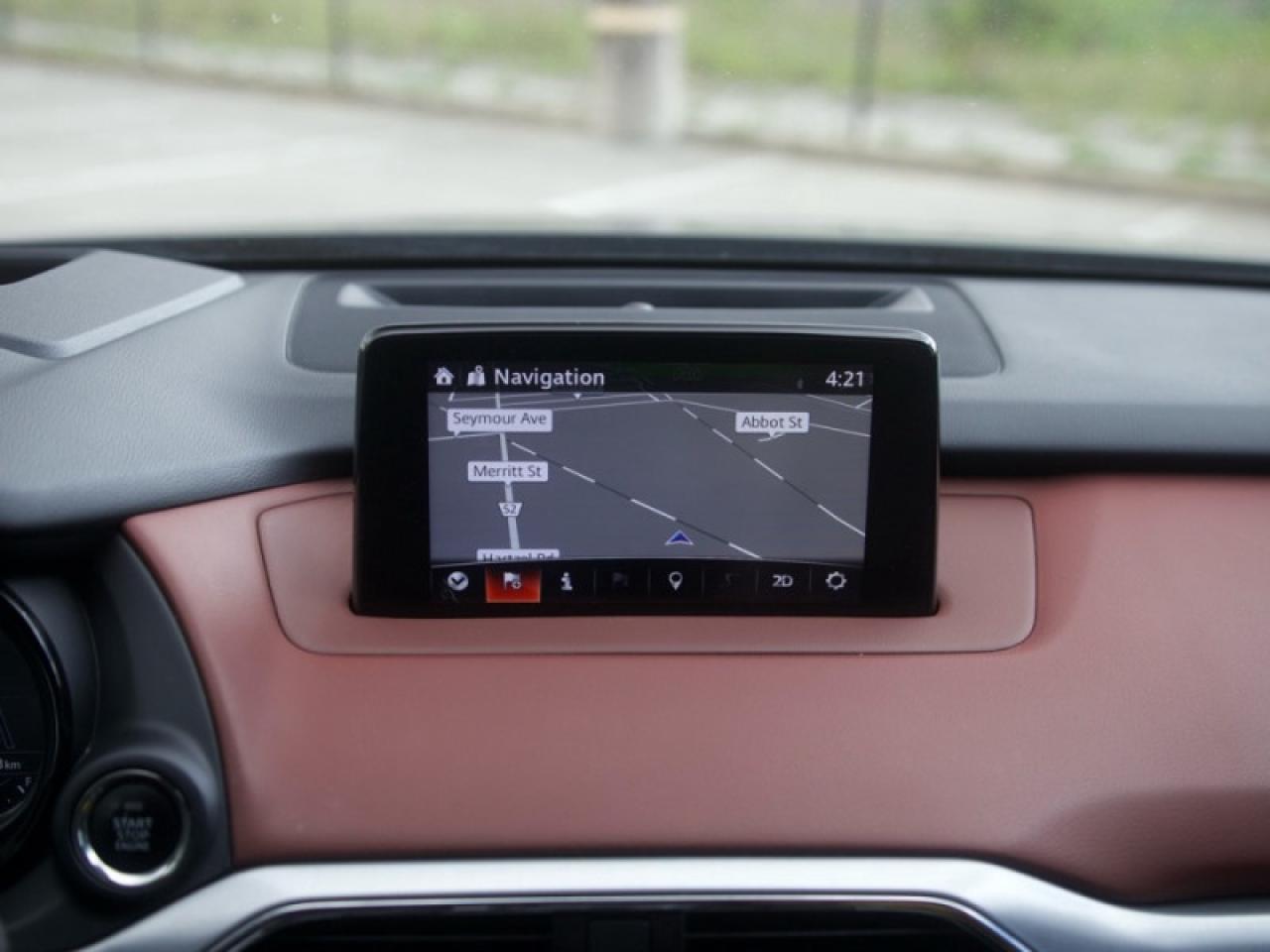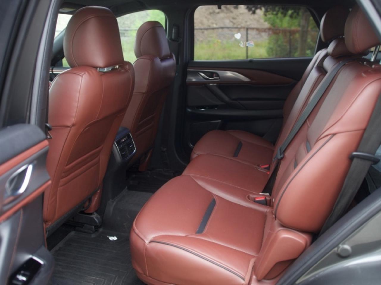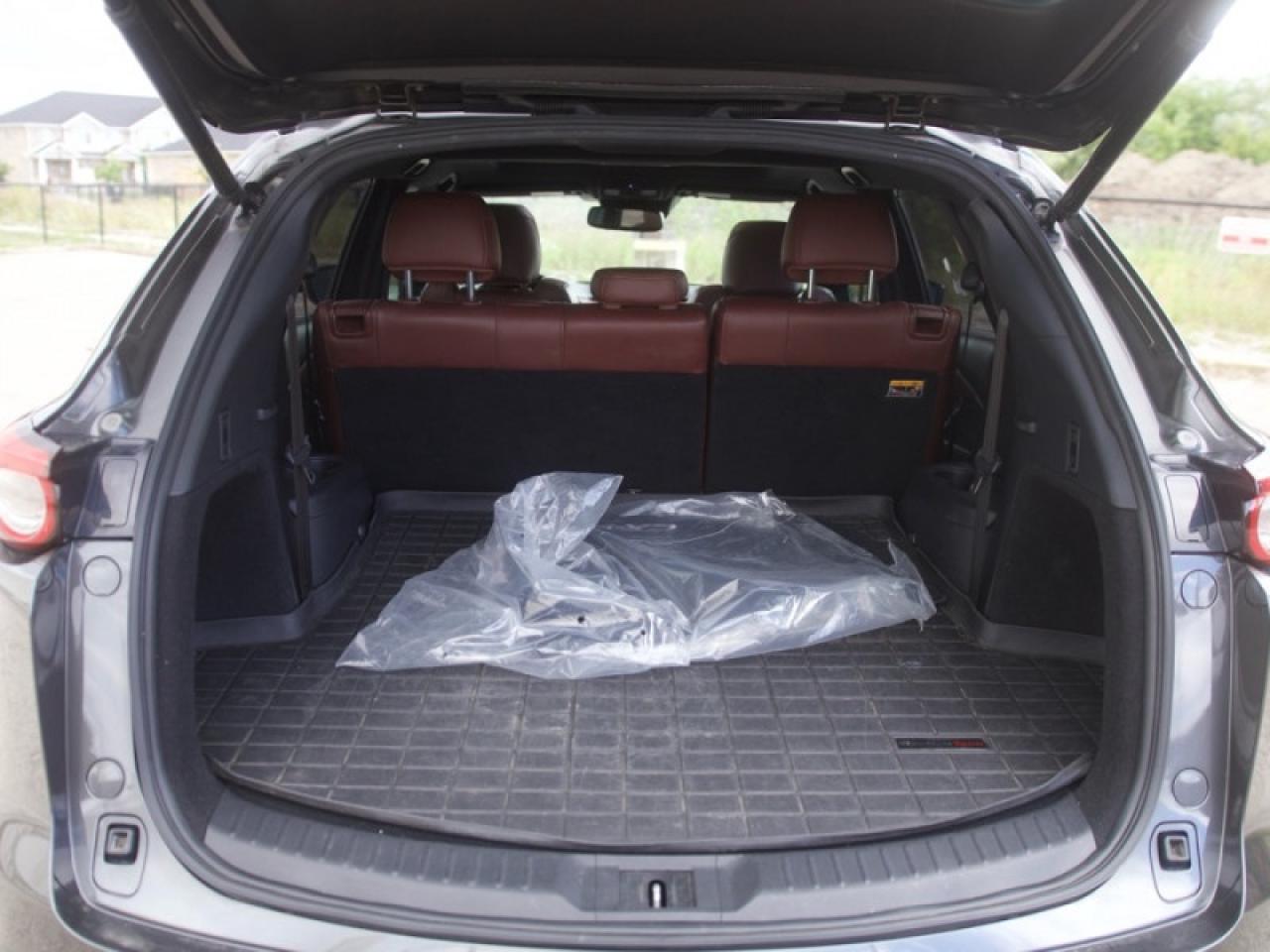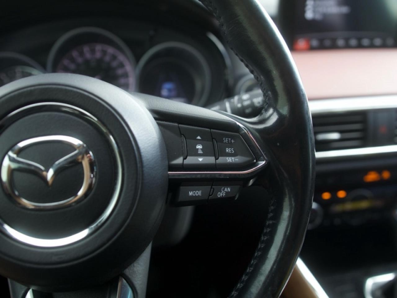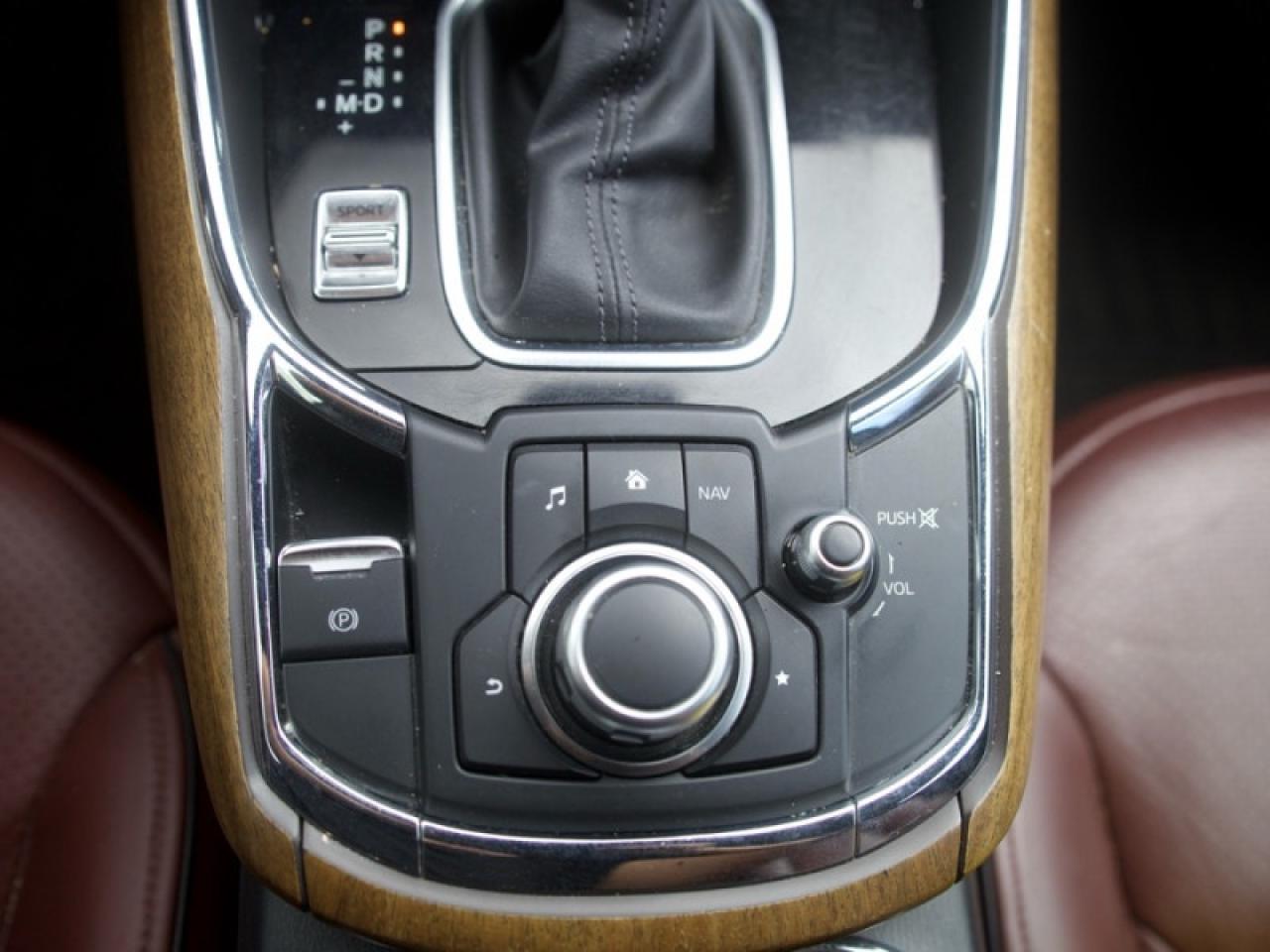 Our CX-9's trim level is Signature. This Signature CX-9 adds a lot of chrome and style. Standard features include a seven-inch touchscreen with MAZDA CONNECT is standard along with Bluetooth connectivity, steering-wheel audio control, automatic climate control, a tilt and telescoping steering wheel, heated seats, aluminum wheels, heated power side mirrors with turn signals, rain sensing wipers, automatic dual zone climate control, blind spot monitoring, and smart city brake support. This trim takes it up a notch with a sunroof, a power liftgate, a metal look and chrome grille, fog lamps, heated leather steering wheel, premium Nappa leather seats with stitching detail, aluminum and wood interior trim, chrome cladding, fully automatic and directionally adaptive headlamps, a Bose premium audio system, navigation, SiriusXM, hands free proximity key, head-up display, adaptive cruise with stop and go, and lane keep assist.