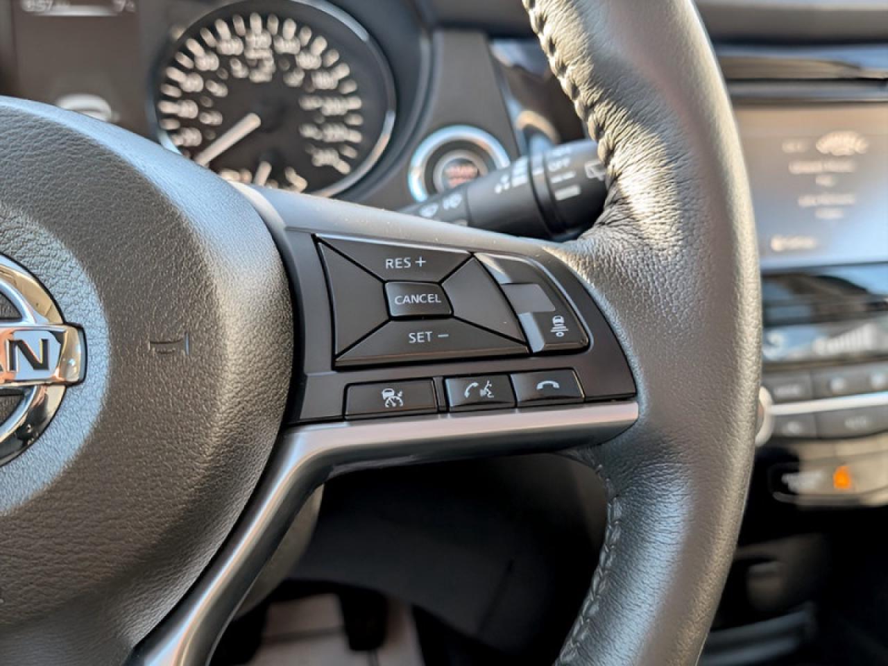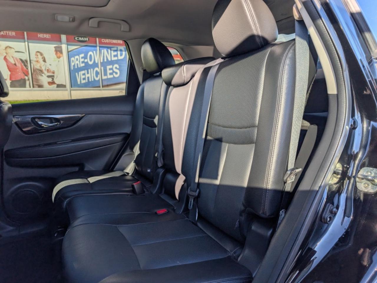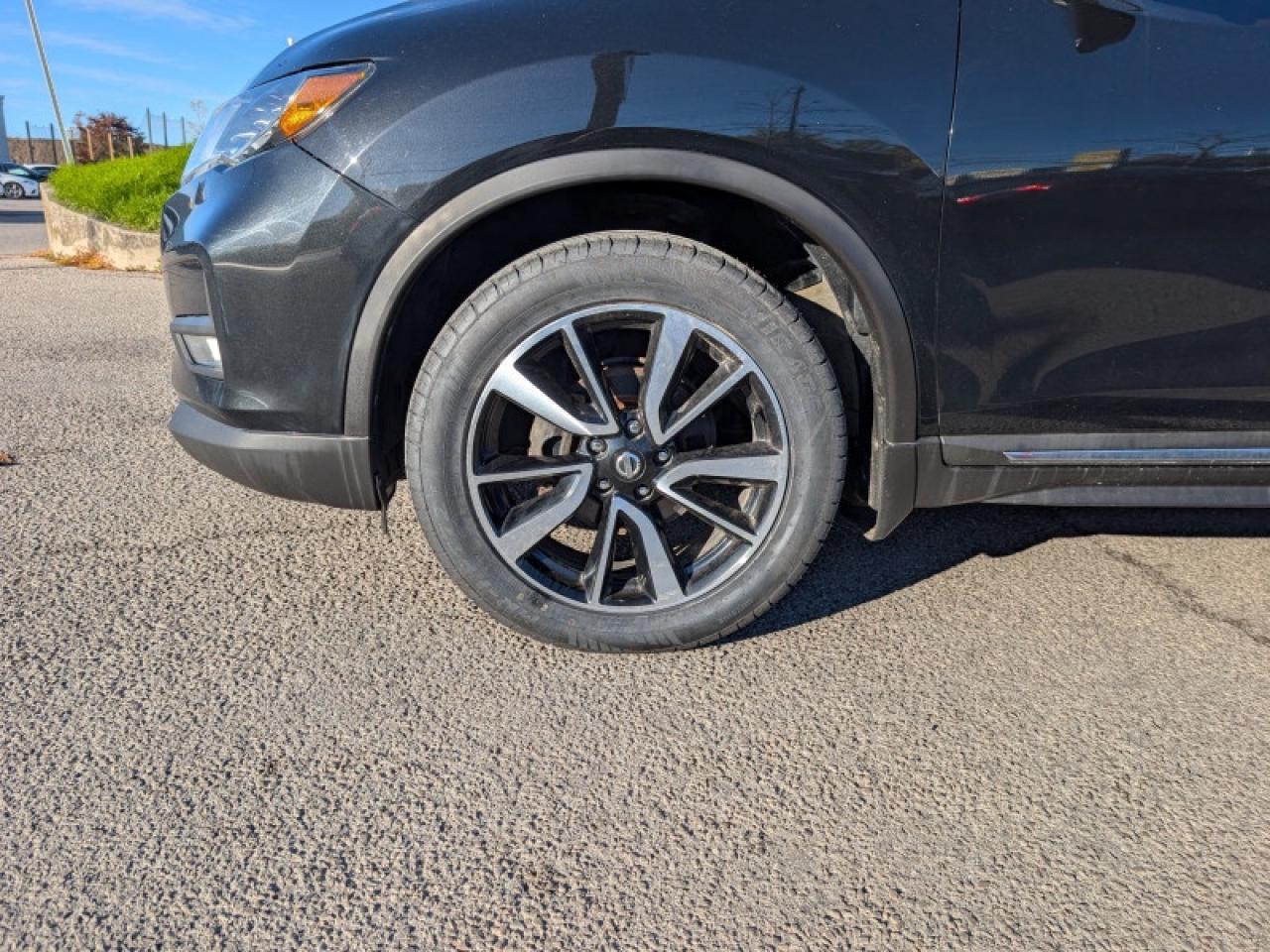 Our Rogue's trim level is SL Platinum. Upgrade to a new level of comfort and technology with this Rogue SL Platinum. It comes with all-wheel drive, a power manoramic moonroof, navigation, Bluetooth, SiriusXM, Bose nine-speaker premium audio, leather seats which are heated in front, a heated steering wheel, an around view monitor, remote start, intelligent cruise control, blind spot warning, forward emergency braking with pedestrian detection, and much more.