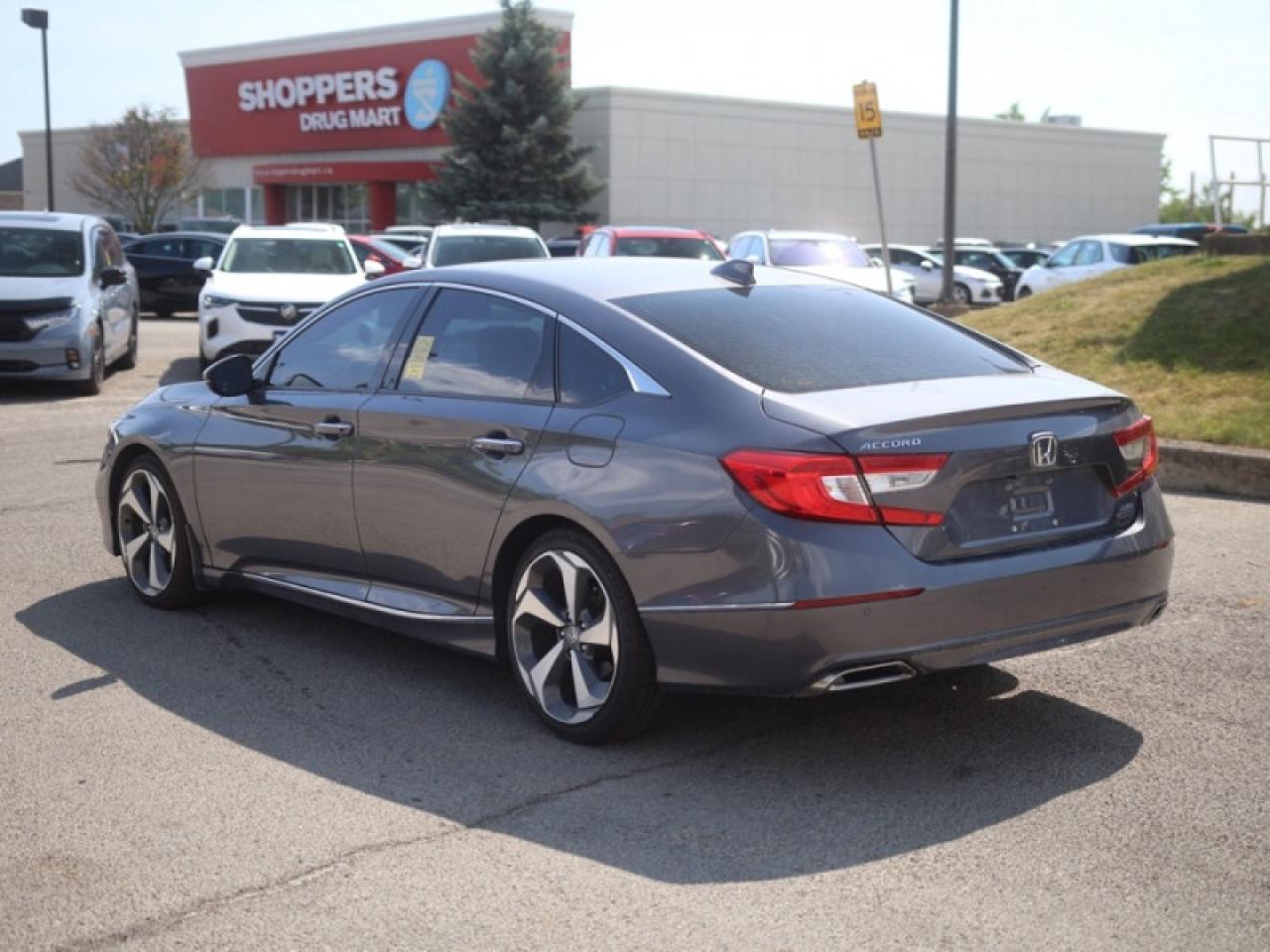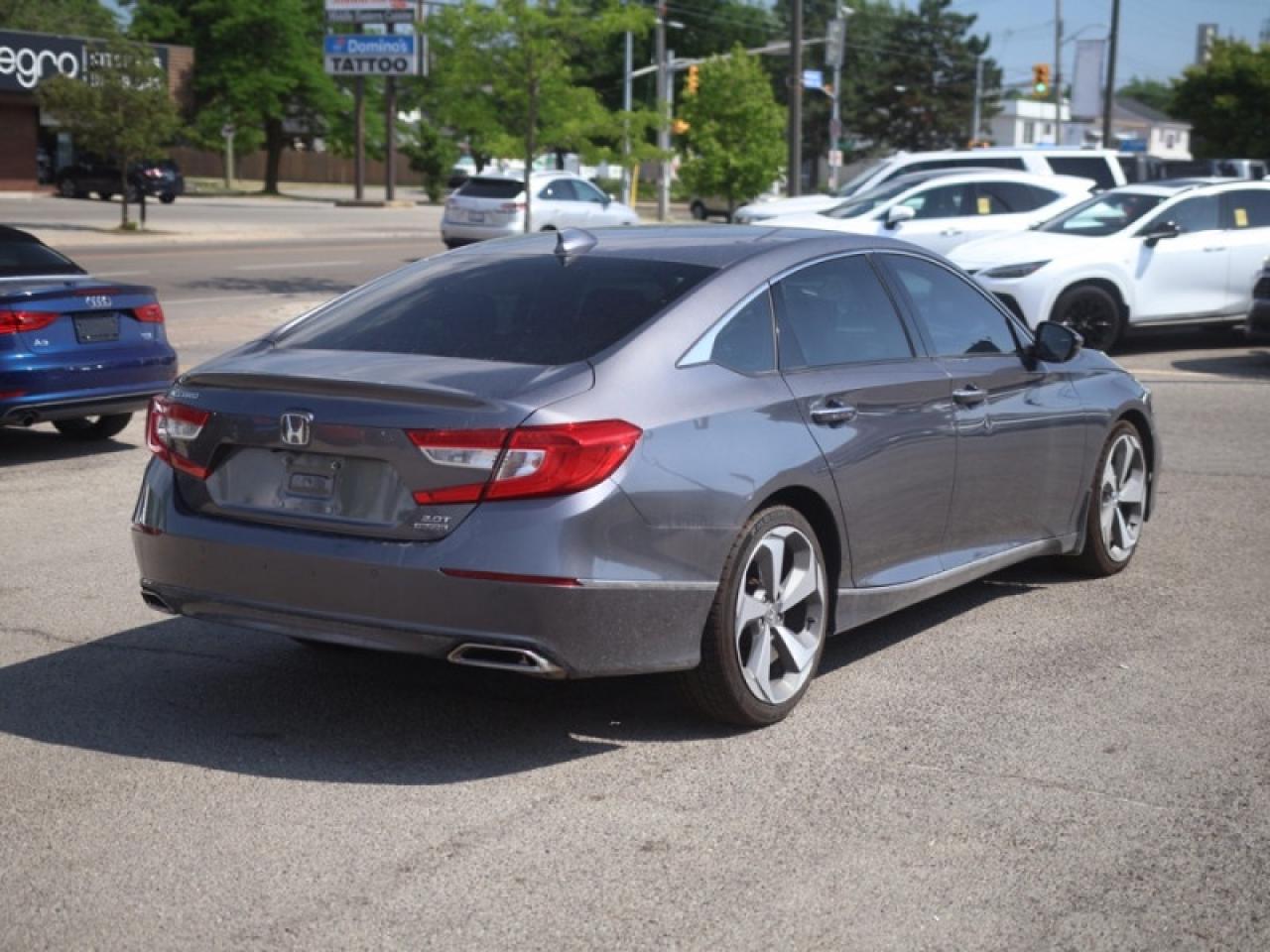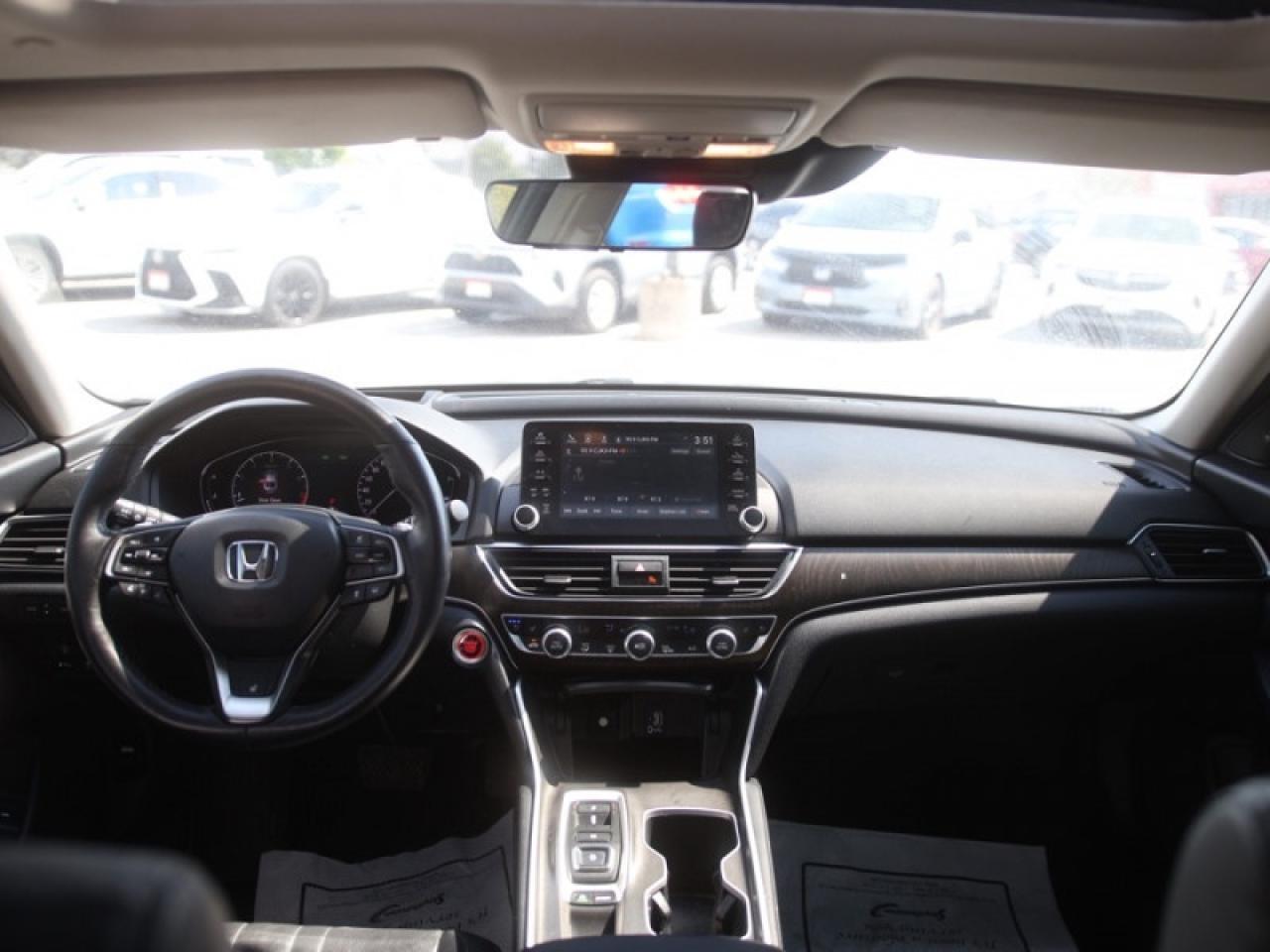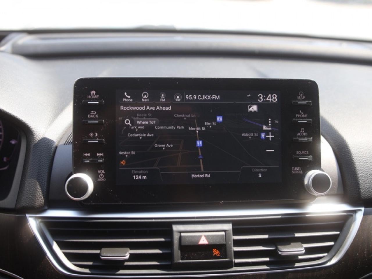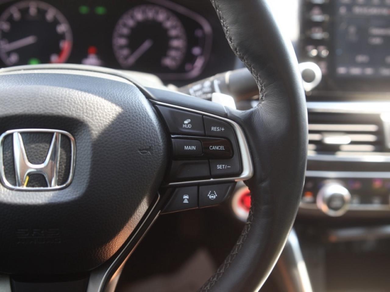 Our Accord Sedan's trim level is Touring 2.0. The Touring trim pushes this Accord into luxury territory without a luxury car price tag. It comes loaded with perforated leather seats which are heated and ventilated in front, a memory drivers seat, a heated leather steering wheel, navigation, Android Auto, Apple CarPlay, Bluetooth, 10-speaker premium audio, a power sunroof, chrome exterior trim, a rearview camera, remote start, collision mitigation braking, lane keeping assist, and more.