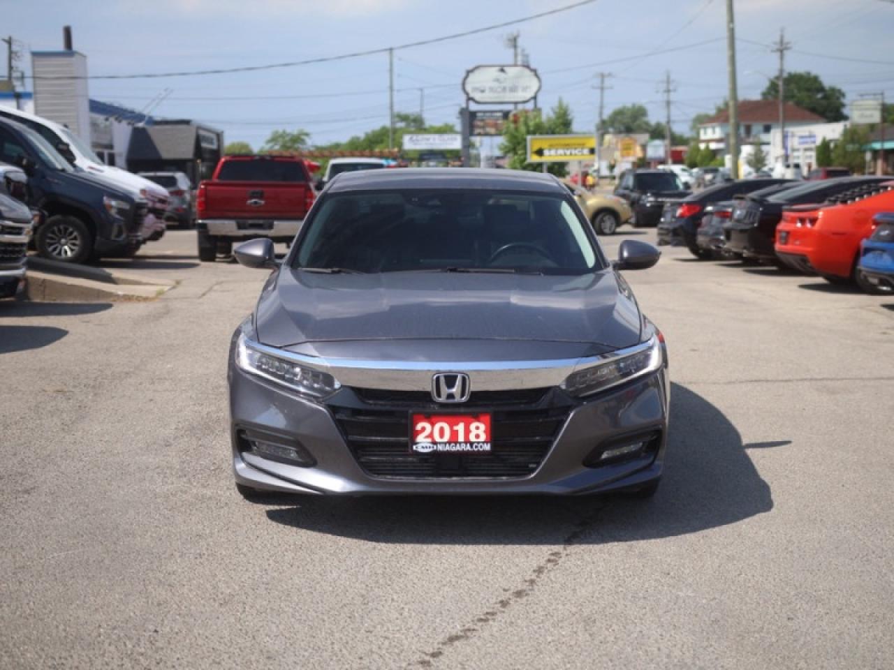 The Honda Accord has a reputation for outperforming expectations. This all-new 2018 model continues that reputation by leading the mid-size sedan segment in comfort, technology, and style. Well-crafted inside and out, this Accord sets you apart from the crowd with its sharp exterior and comfortable interior youd expect in a more expensive car. The latest tech takes safety and entertainment to the next level giving you more confidence and peace of mind on the road. This sedan has 89,892 kms. It's gray in colour . It has an automatic transmission and is powered by a 252HP 2.0L 4 Cylinder Engine.