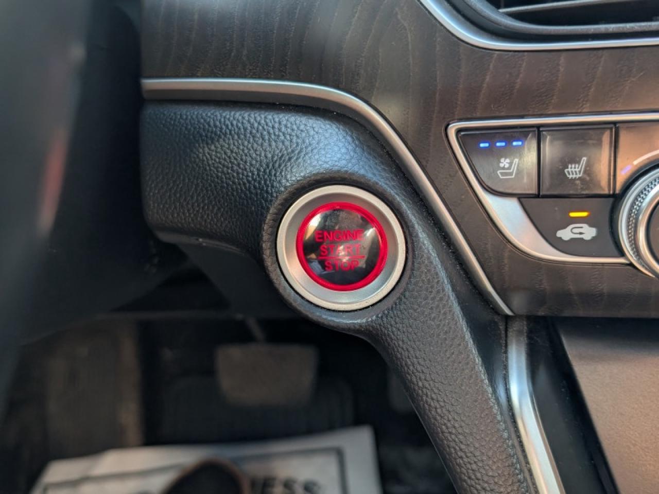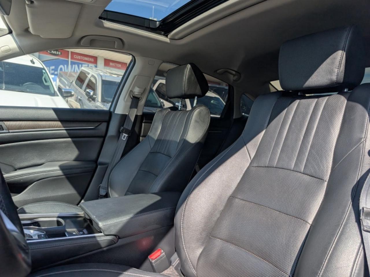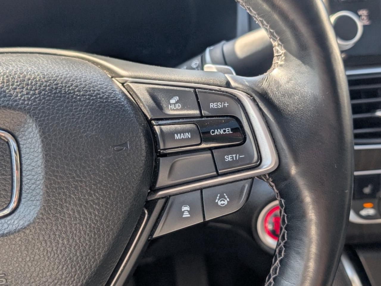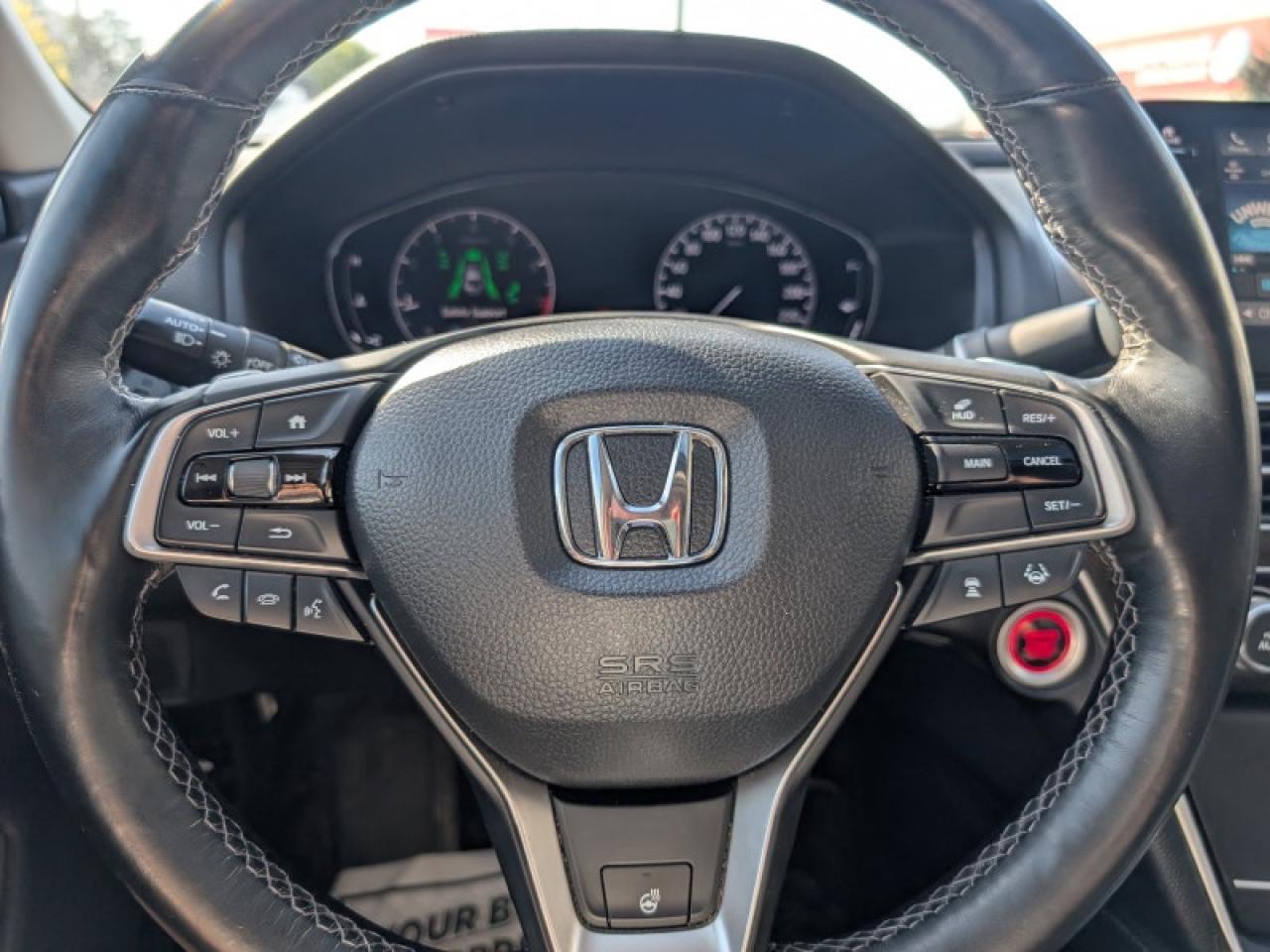 Our Accord Sedan's trim level is Touring 2.0 Auto. This premium Accord with an upgraded motor is loaded with luxury, ventilated and heated front seats with leather trim, a heated leather steering wheel, a moonroof, a Heads-Up-Display, wireless charging, and remote keyless entry and starting. It also has HondaLink touchscreen display infotainment complete with navigation, Hands Free Link bluetooth, Wifi, rear view camera, Apple CarPlay, Android Auto, SiriusXM, and steering wheel audio controls. You also get a sport mode and paddle shifters, aluminum wheels, heated power mirrors with reverse tilt down and integrated turn signals, automatic dimming rear view mirror, full LED lighting with automatic on/off, automatic high beams, fog lights, rain sensing wipers, adaptive cruise control, brake assistance, lane keep assistance, a blind spot information system, and traffic sign recognition.