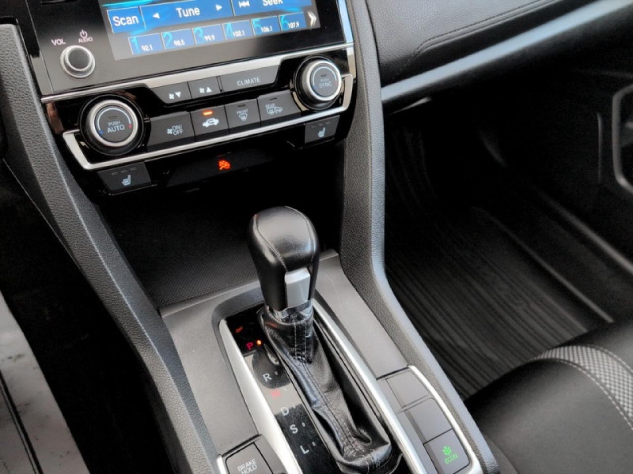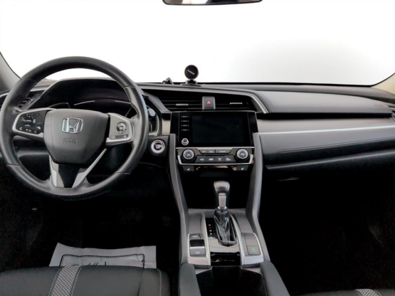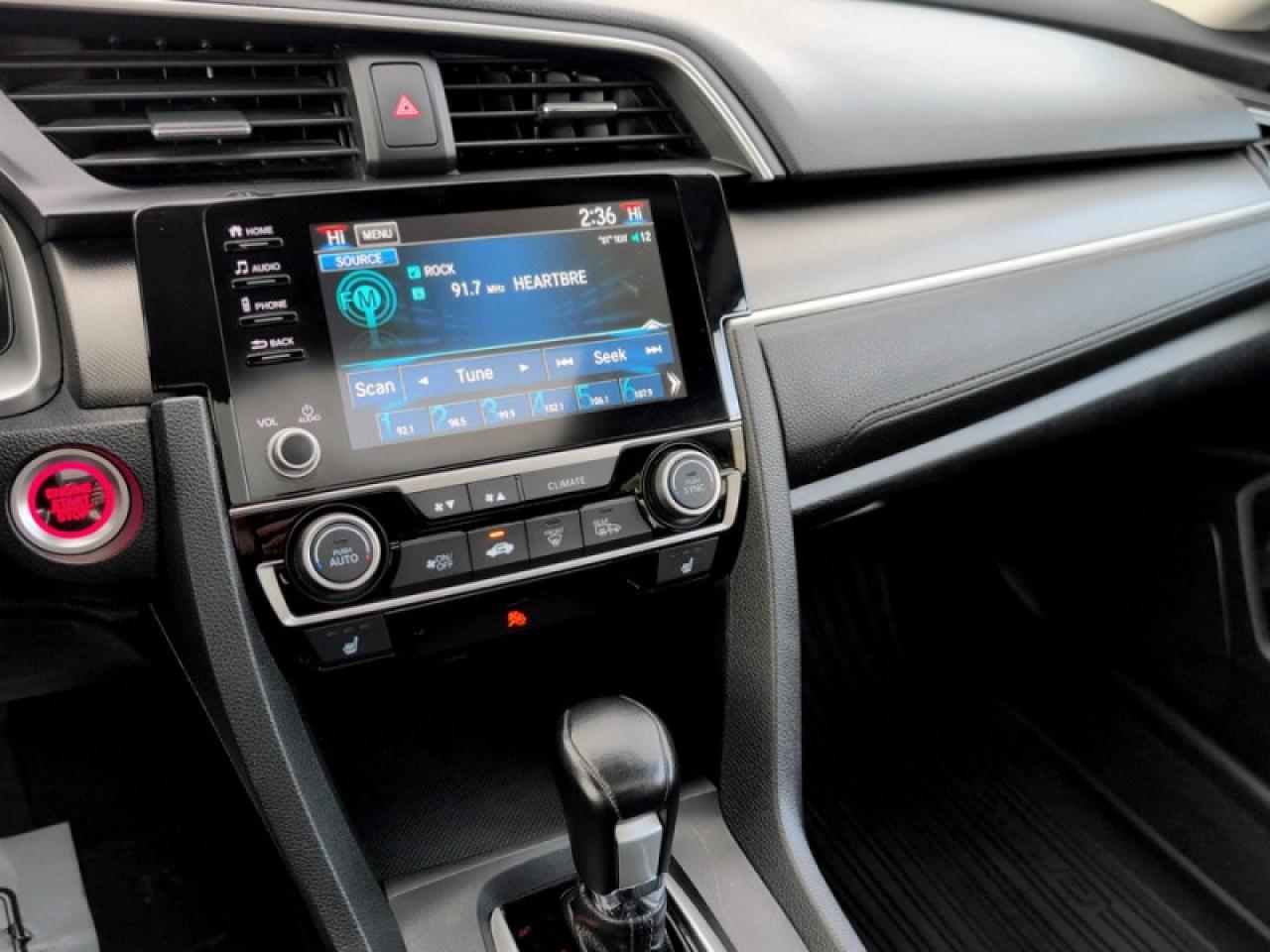 Our Civic Sedan's trim level is EX CVT. This EX Civic adds a power moonroof, proximity key, aluminum wheels, blind spot display, and remote start to the LX features like collision mitigation with forward collision warning, lane keep assist with road departure mitigation, adaptive cruise control, straight driving assist for slopes, and automatic highbeams you normally only expect with a higher price. The interior is as comfy and advanced as you need with heated front seats, remote start, Apple CarPlay, Android Auto, Bluetooth, Siri EyesFree, WiFi tethering, steering wheel with cruise and audio controls, multi-angle rearview camera, 7 inch driver information display, and automatic climate control. The exterior has some great style with a refreshed grille, independent suspension, heated power side mirrors, and LED taillamps.