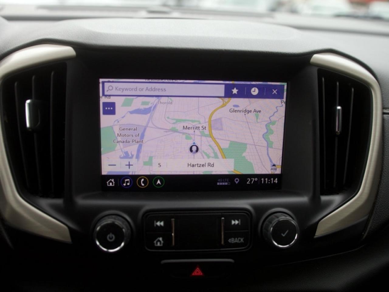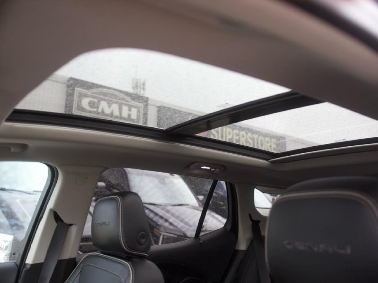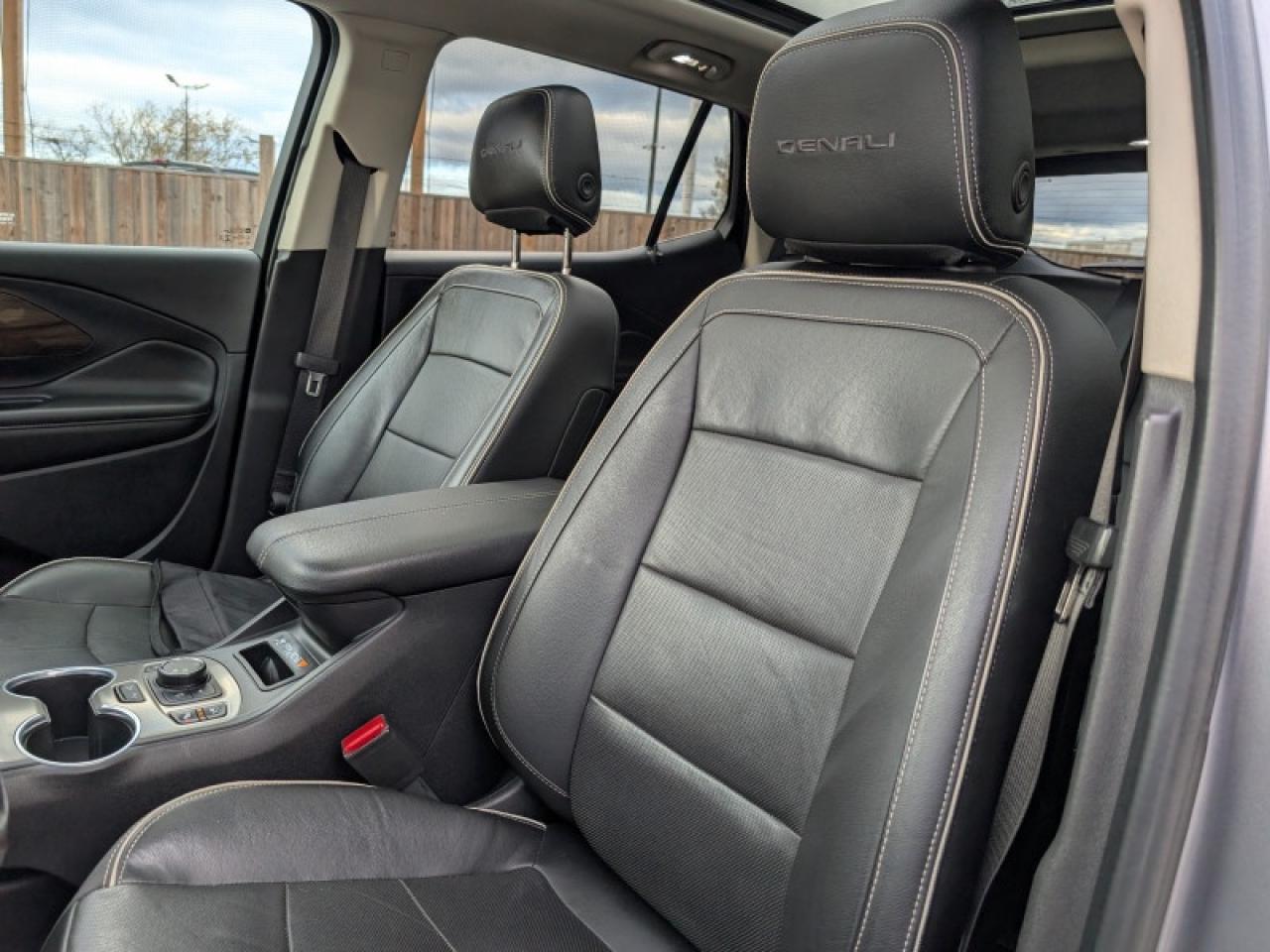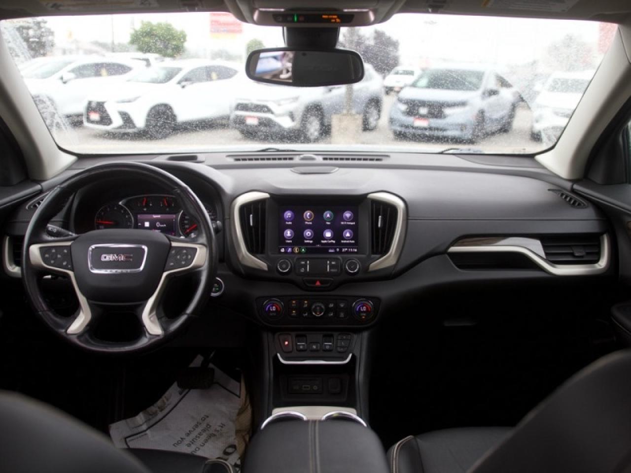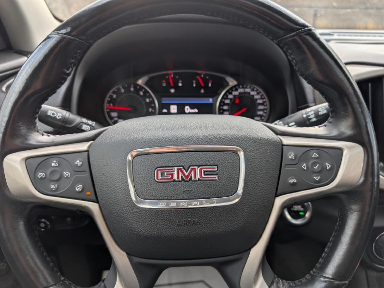 Our Terrain's trim level is Denali. This premium Terrain comes fully loaded with leather heated and cooled seats with memory settings, a larger colour touchscreen infotainment system featuring navigation, Apple CarPlay, Android Auto, SiriusXM, Bose premium audio, wireless charging plus it's also 4G LTE hotspot capable. This Terrain Denali also comes with a power rear liftgate, rear park assist, lane change alert with blind spot detection, exclusive aluminum wheels and exterior accents, a leather-wrapped heated steering wheel, lane keep assist with lane departure warning, forward collision alert, Teen Driver technology, a remote engine starter, an HD rear vision camera, LED signature lighting, power driver and passenger seats and a 60/40 split-folding rear seat to make hauling larger items a breeze.